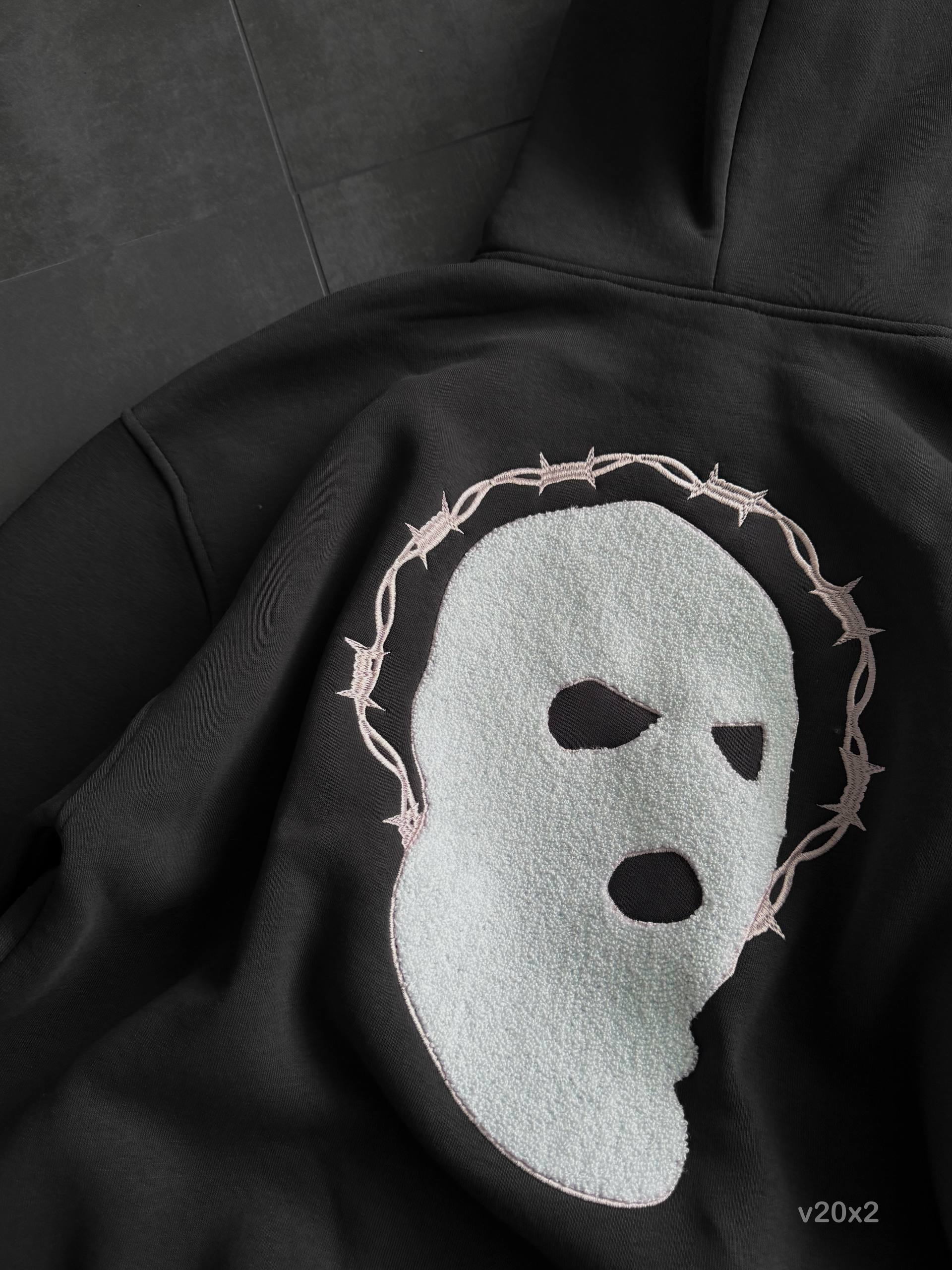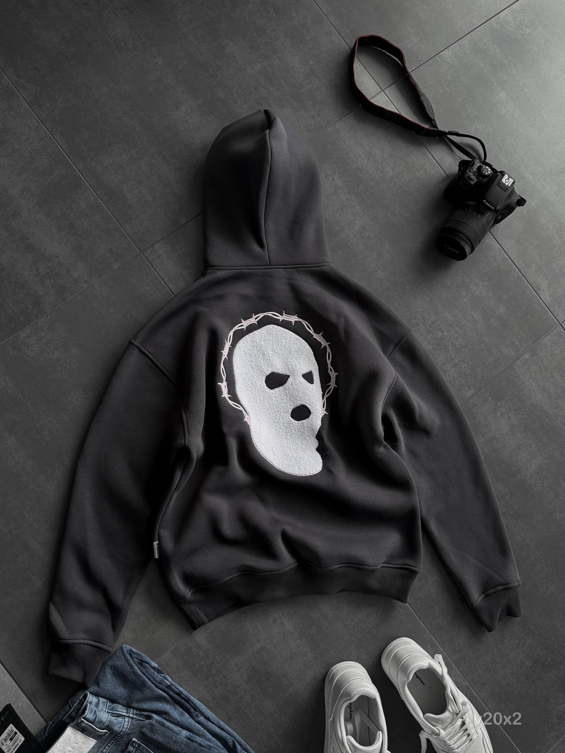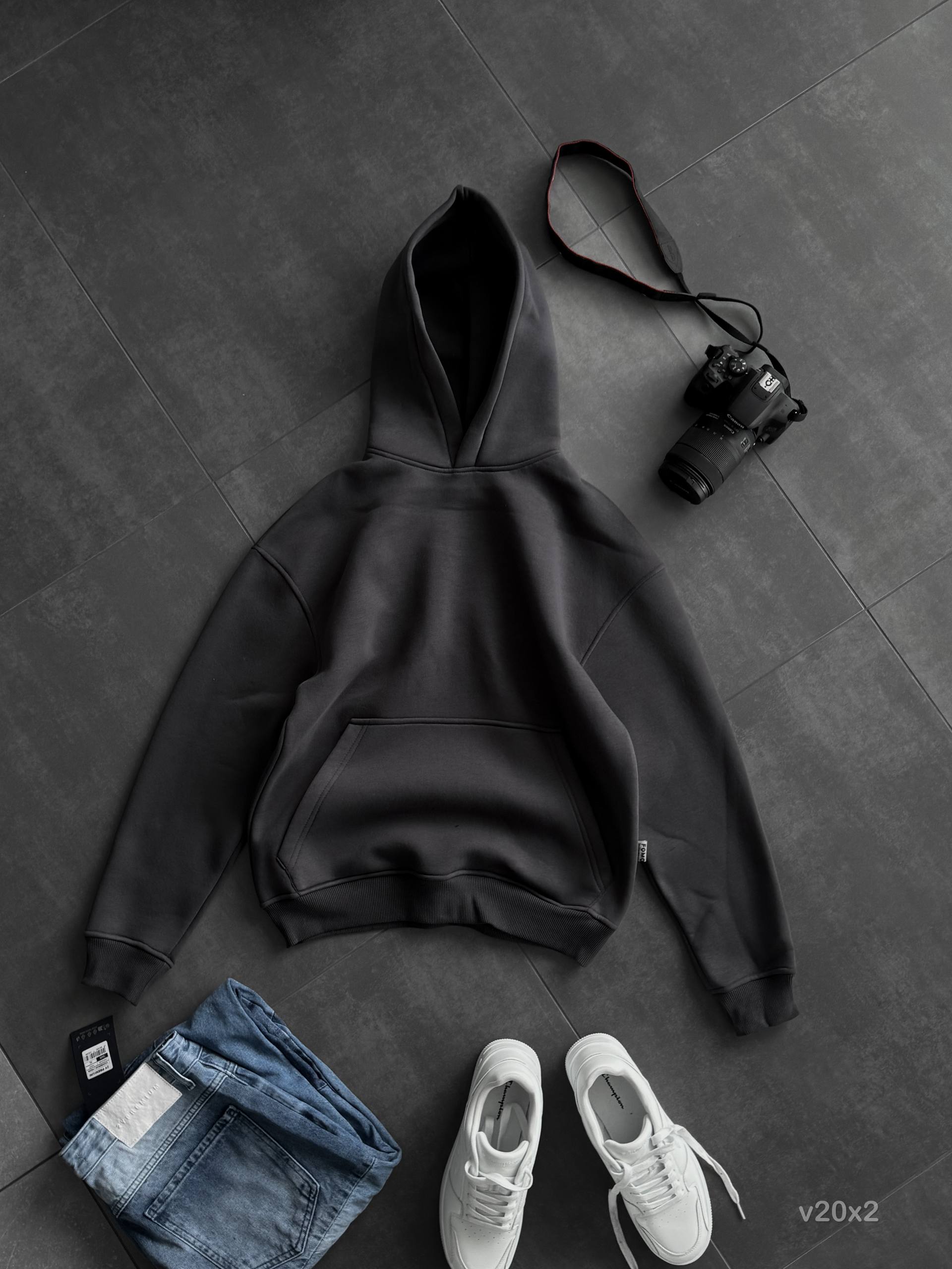 Чоловіче Графітове Худі Утеплене на Флісі – Оверсайз з Вишивкою на Спині