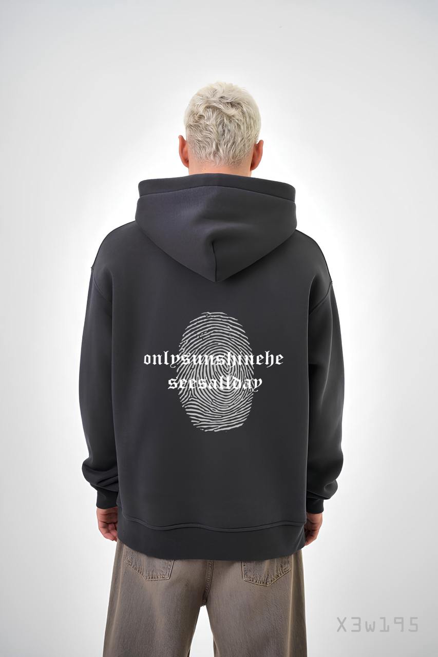 Чоловіче Графітове Худі Вільного Крою Трихнитка на Флісі з Принтом Відбиток Пальця