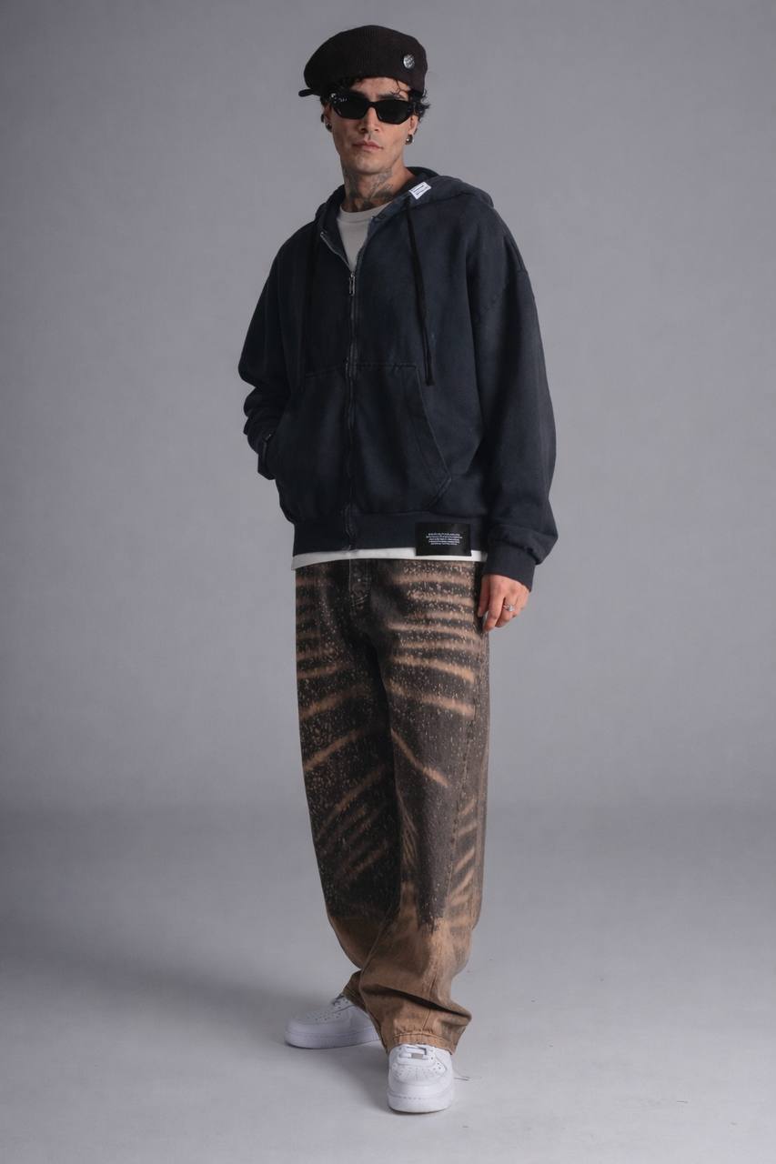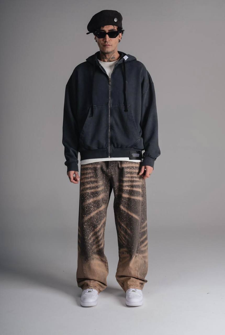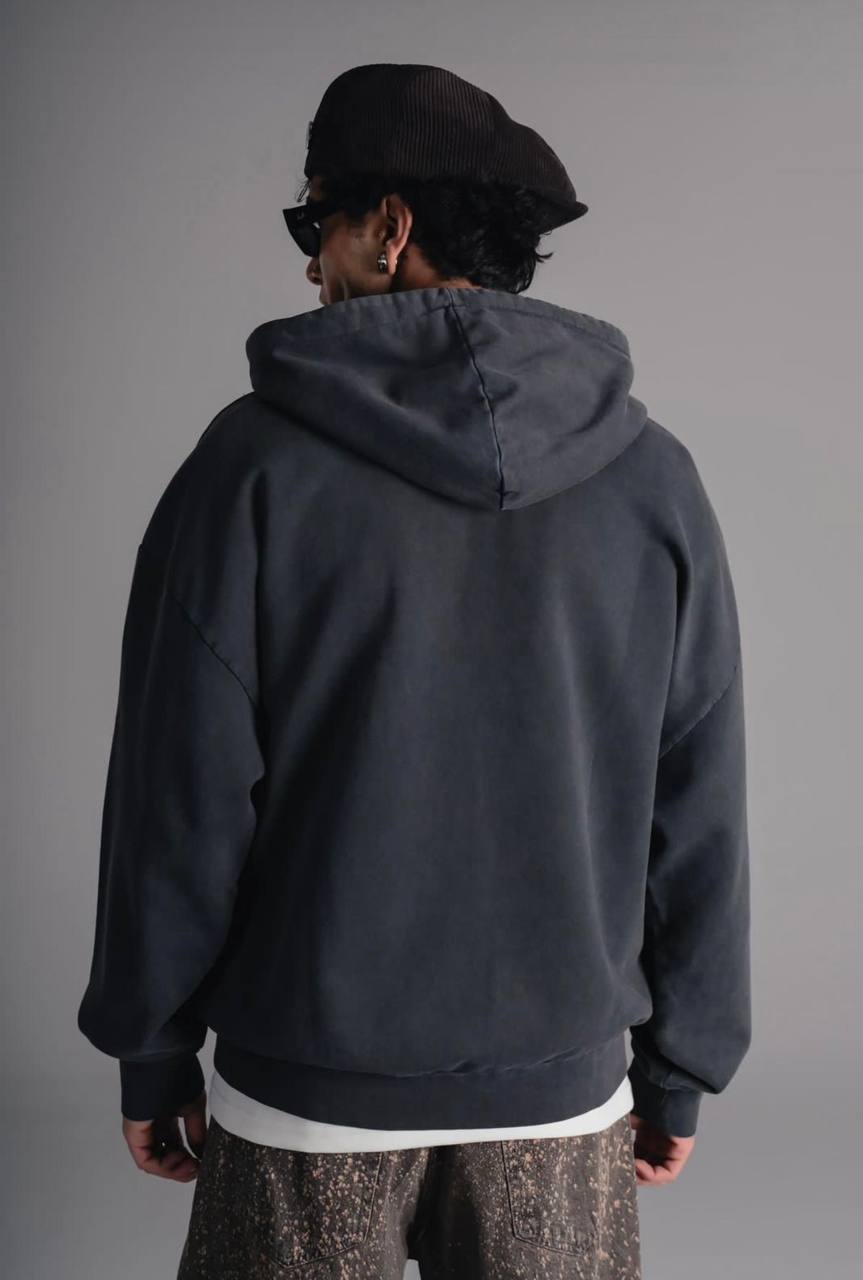 Чоловіче Графітове Зіп Худі Оверсайз – Кофта Зіпка Варена на Блискавці Вільного Крою