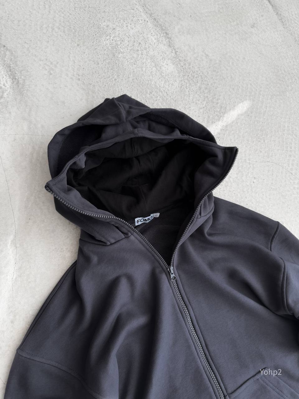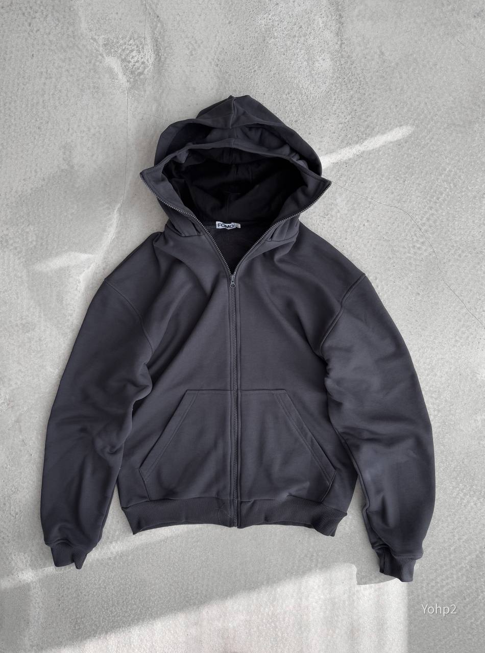 Чоловіче Графітове Зіп Худі Оверсайз на Блискавці – Кофта Зіпка з Вшитою Балаклавою