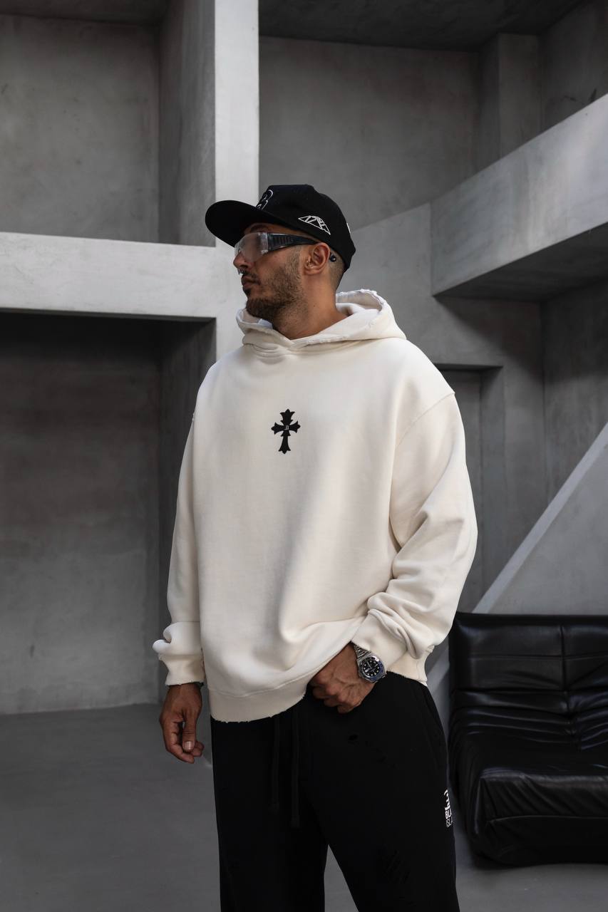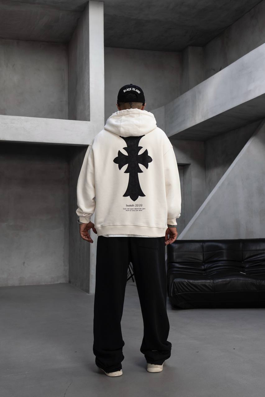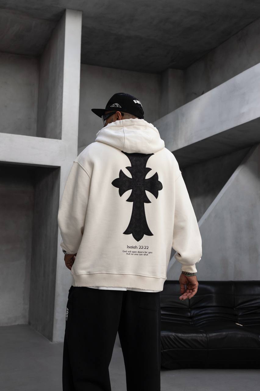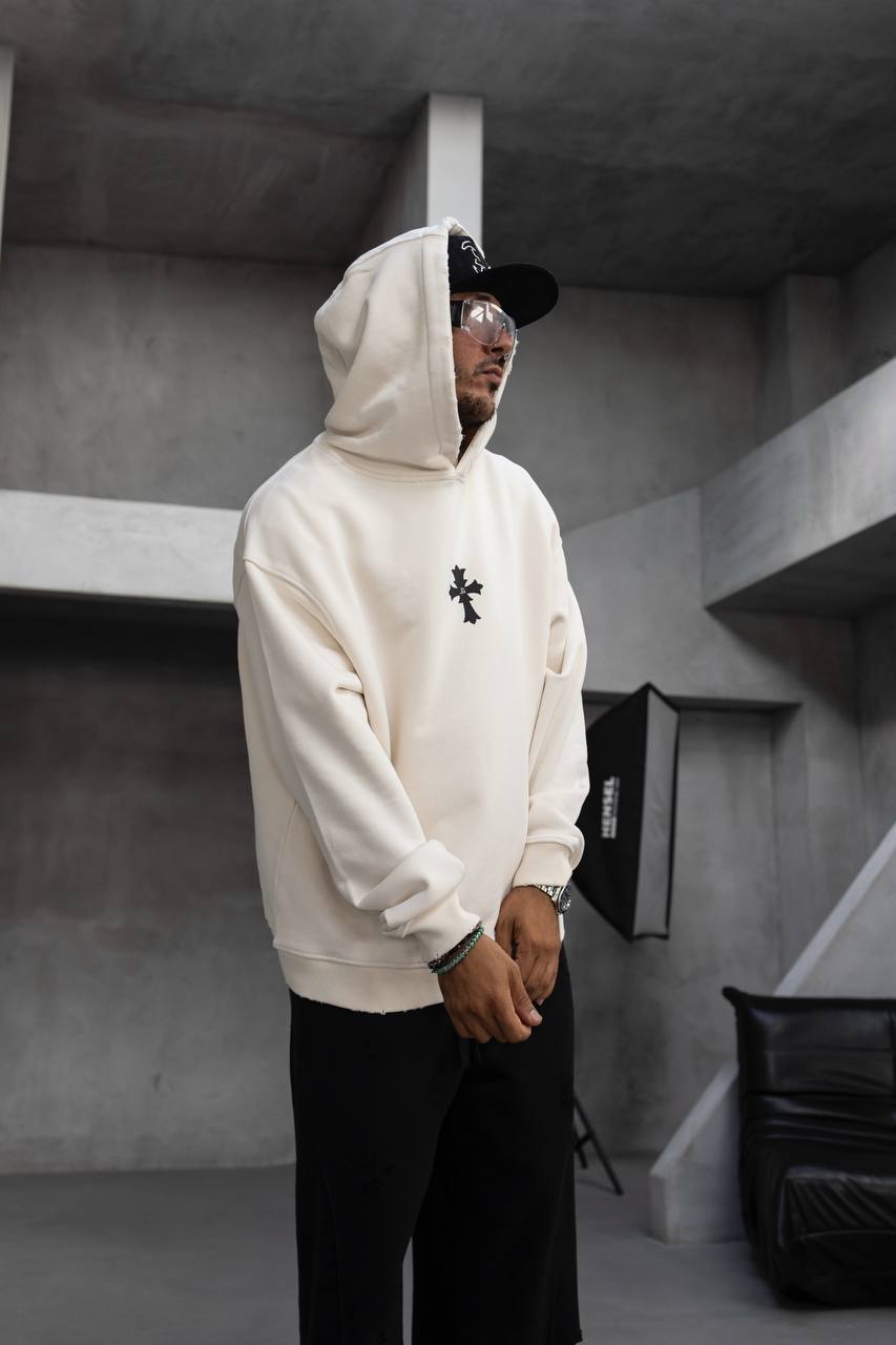 Чоловіче Молочне Варене Худі Оверсаз з Принтом Хрестом на Спині