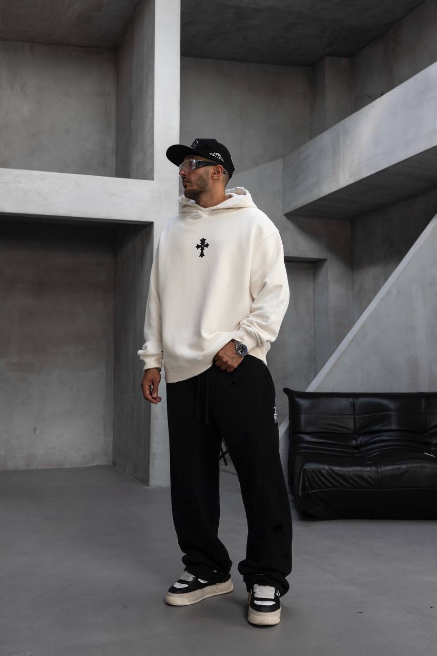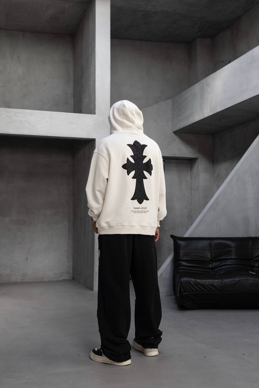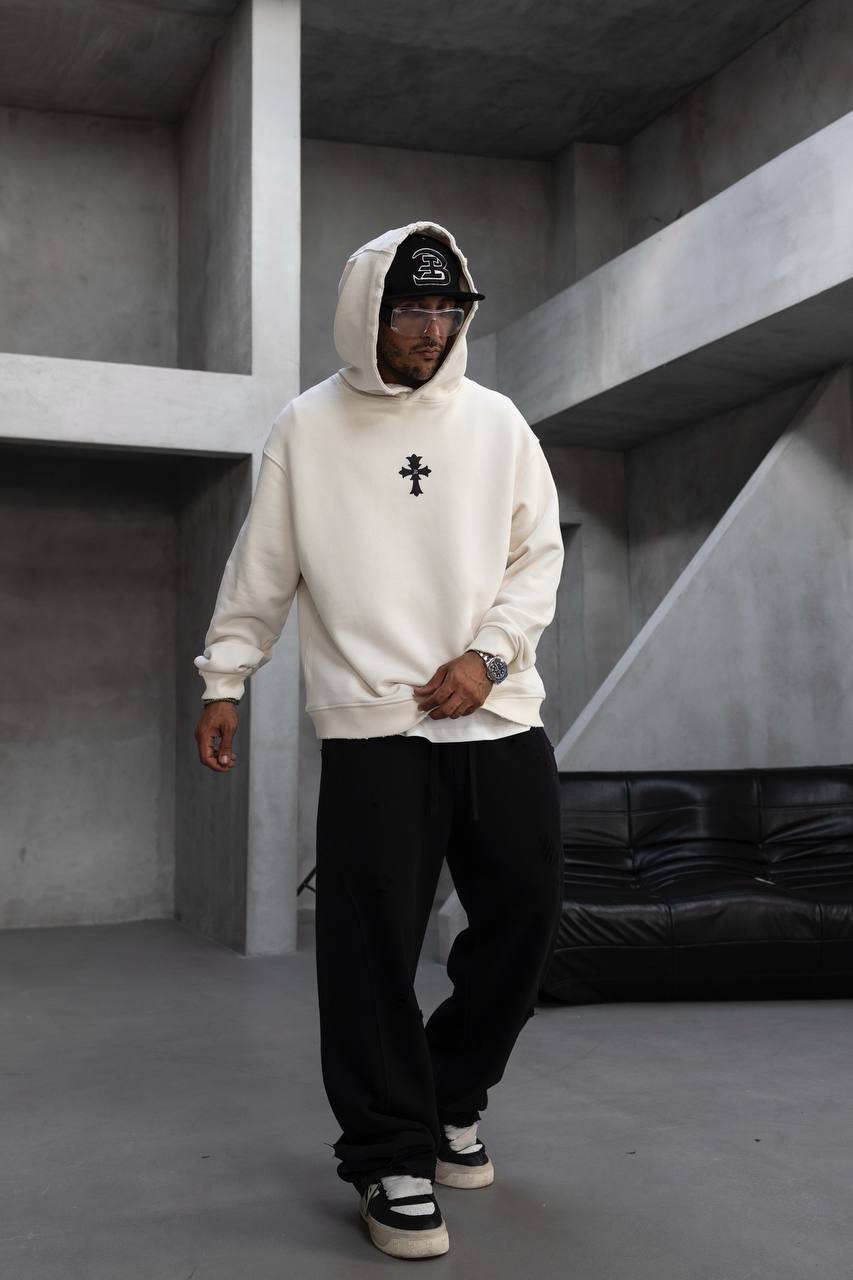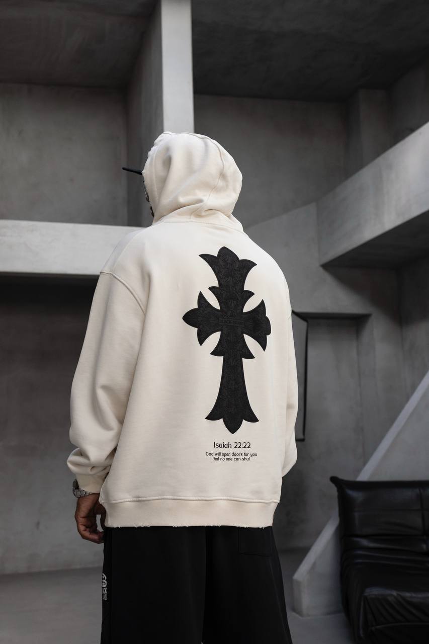 Чоловіче Молочне Варене Худі Оверсаз з Принтом Хрестом на Спині