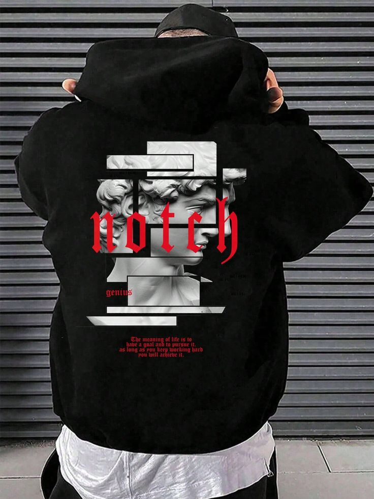 Чоловіче Об’ємне Чорне Худі з Принтом Позаду – Утеплене на Флісі