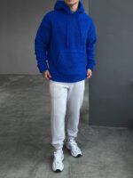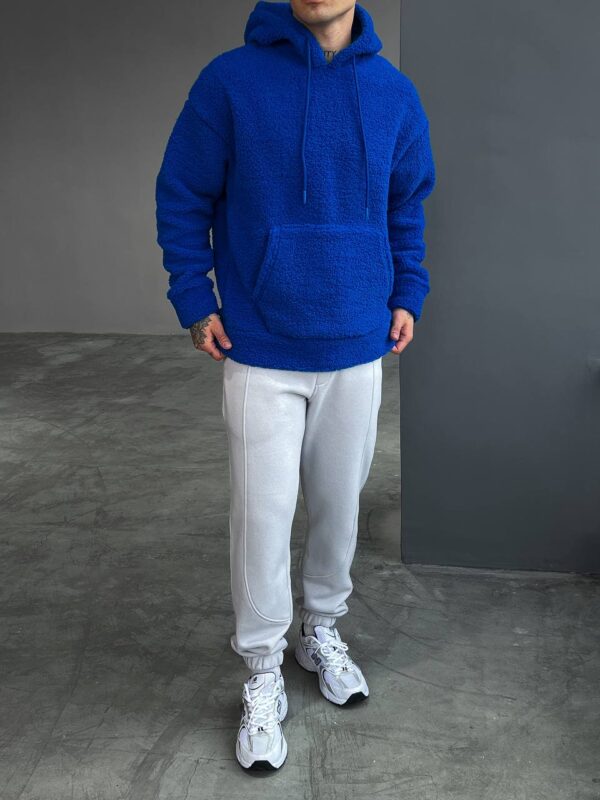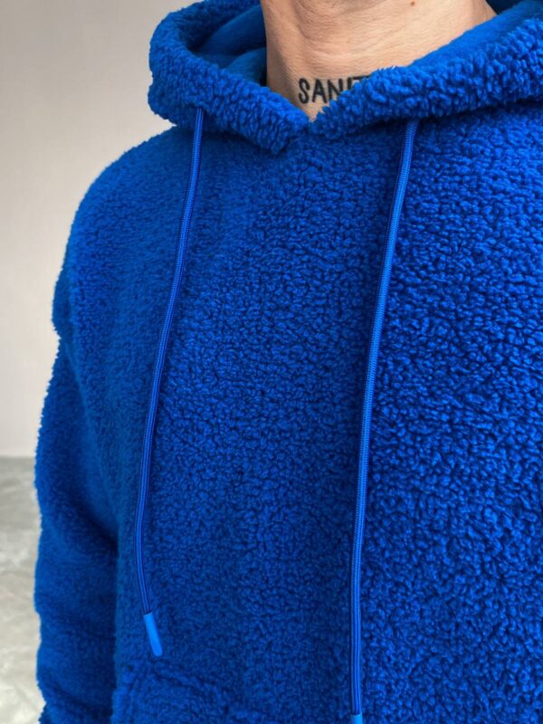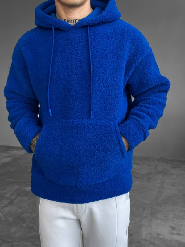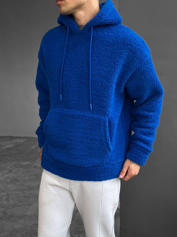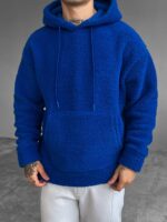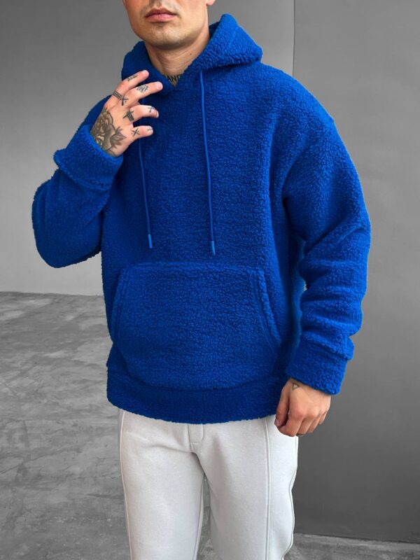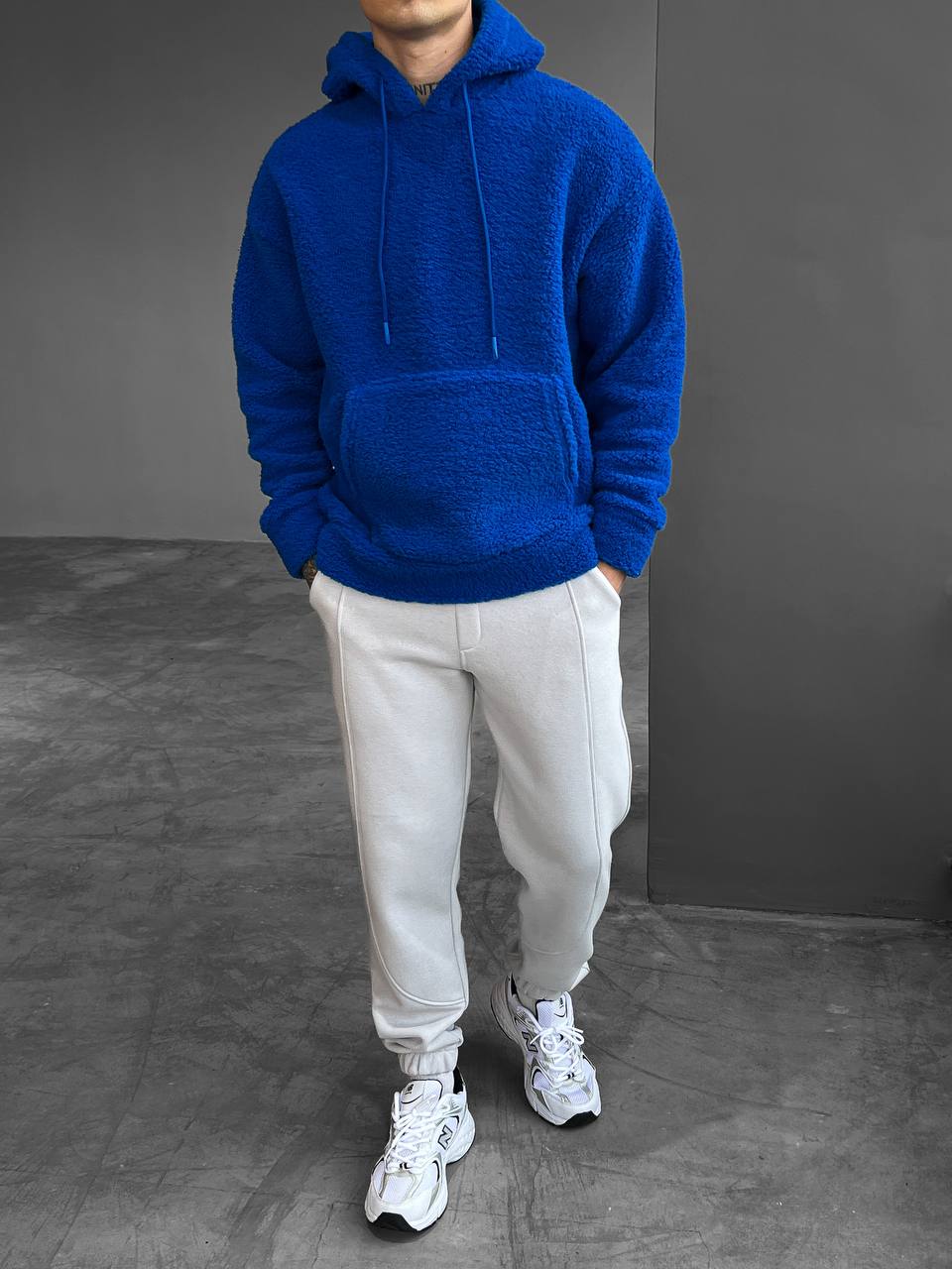 Чоловіче Плюшеве Синє Худі Кенгуру Оверсайз