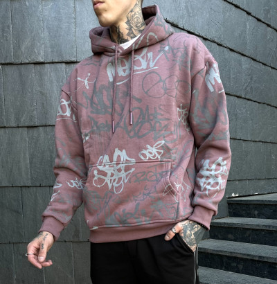 Чоловіче Пудрове Худі Оверсайз у Принт Графіті