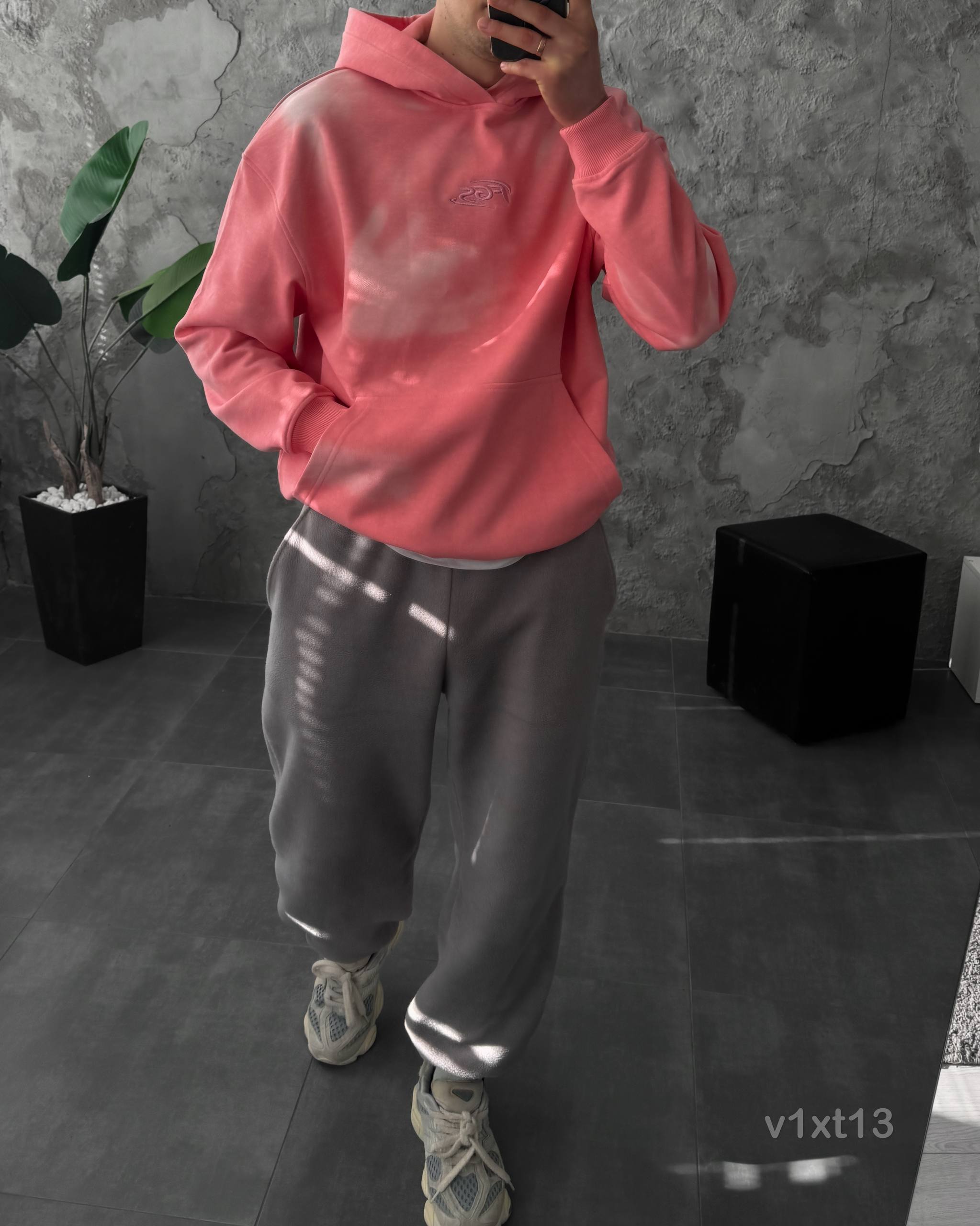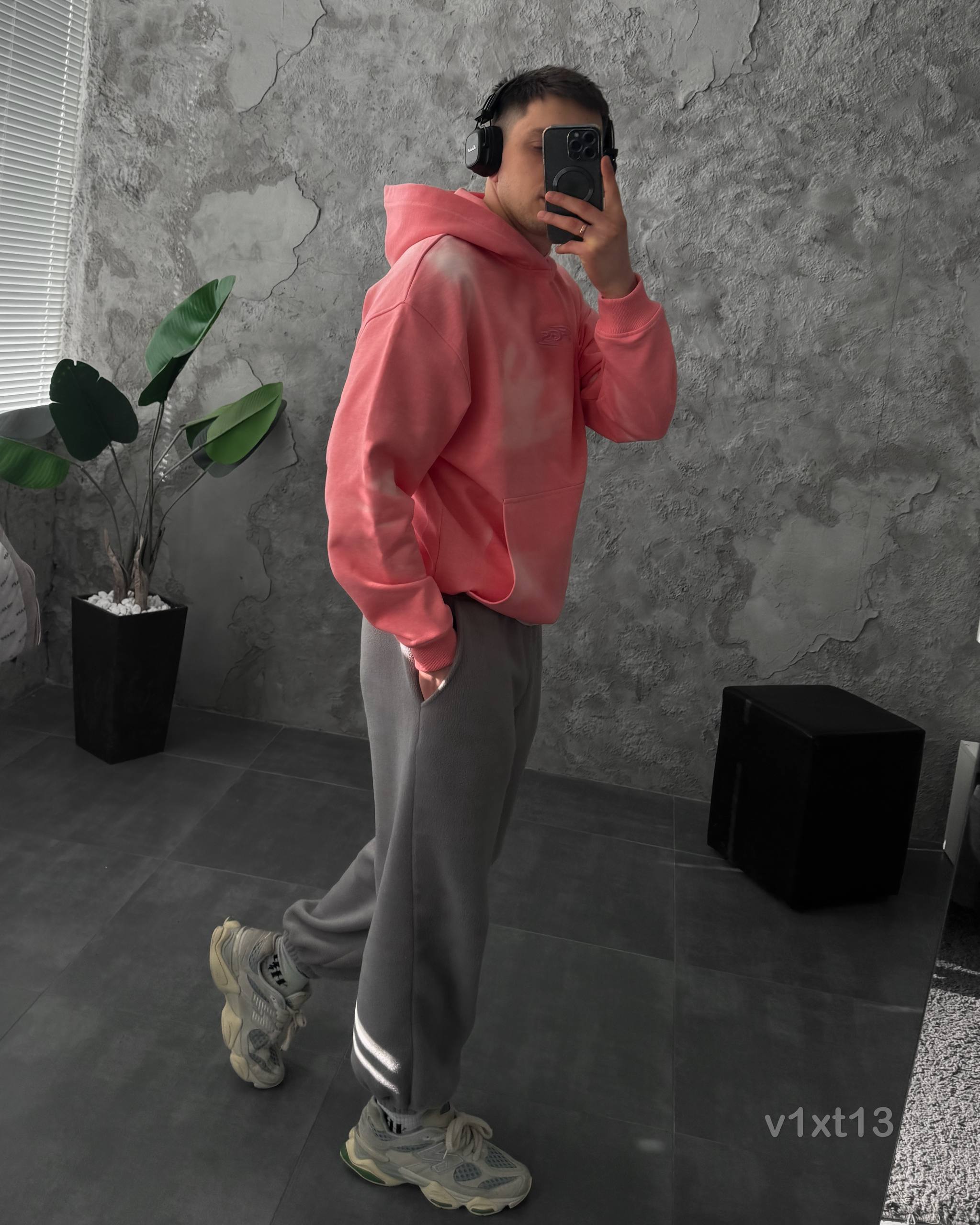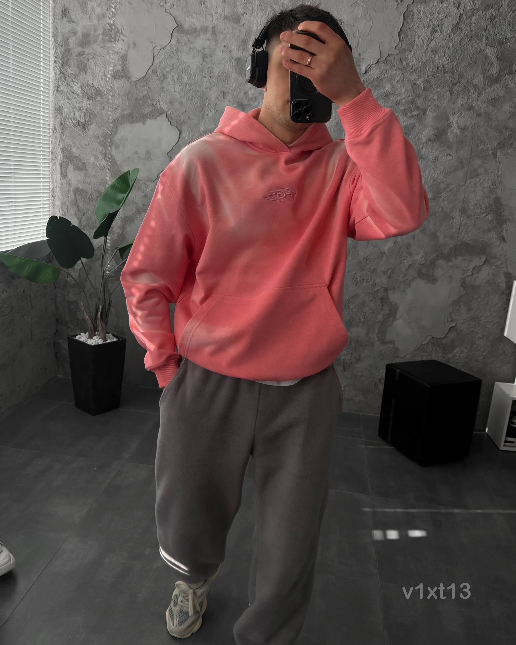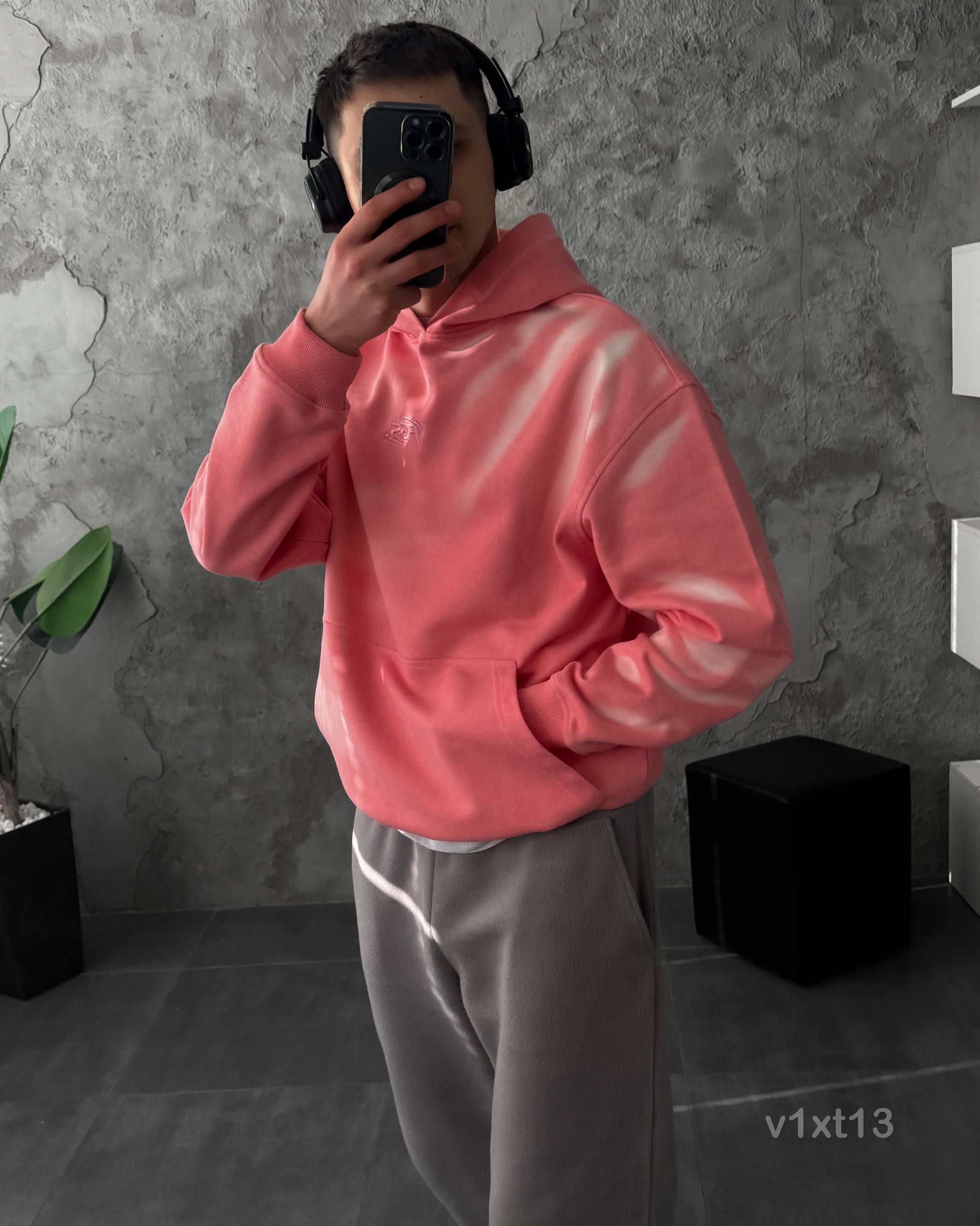 Чоловіче Рожеве Худі Оверсайз з Маленькою Вишивкою – Тринитка ТЕРМОХРОМ