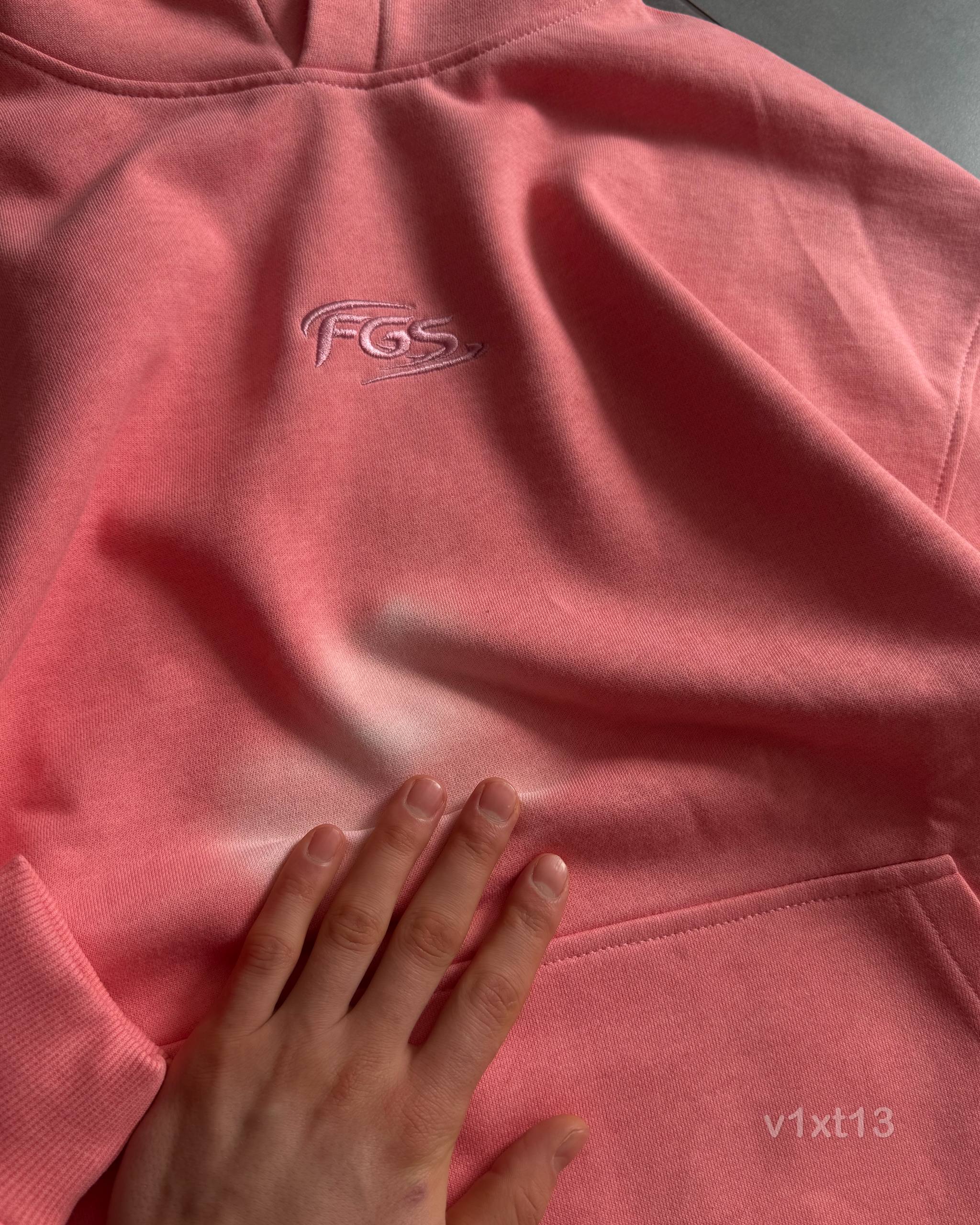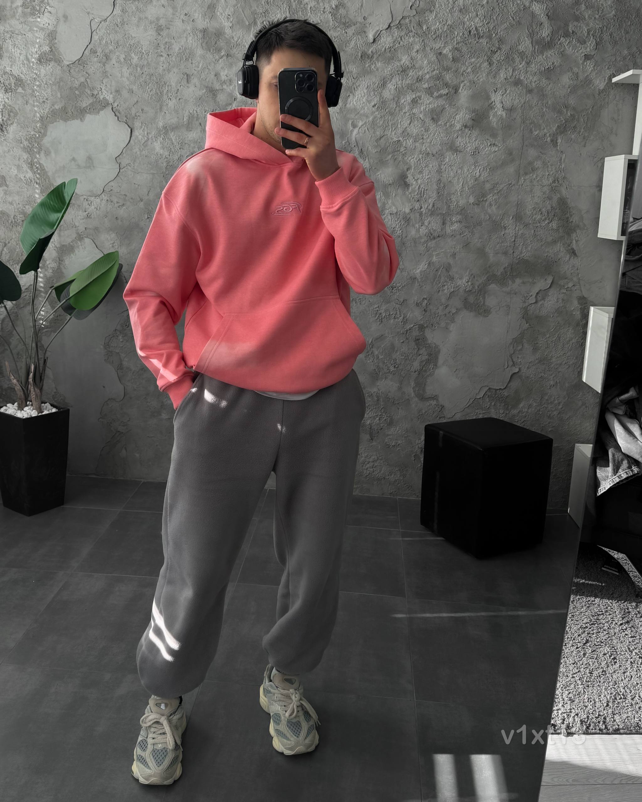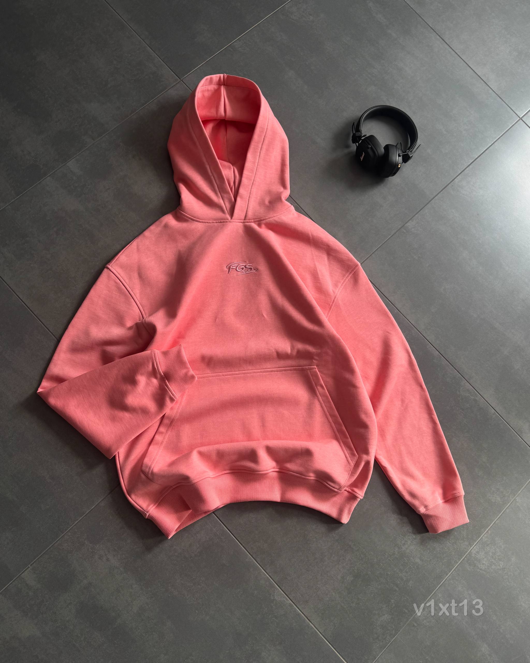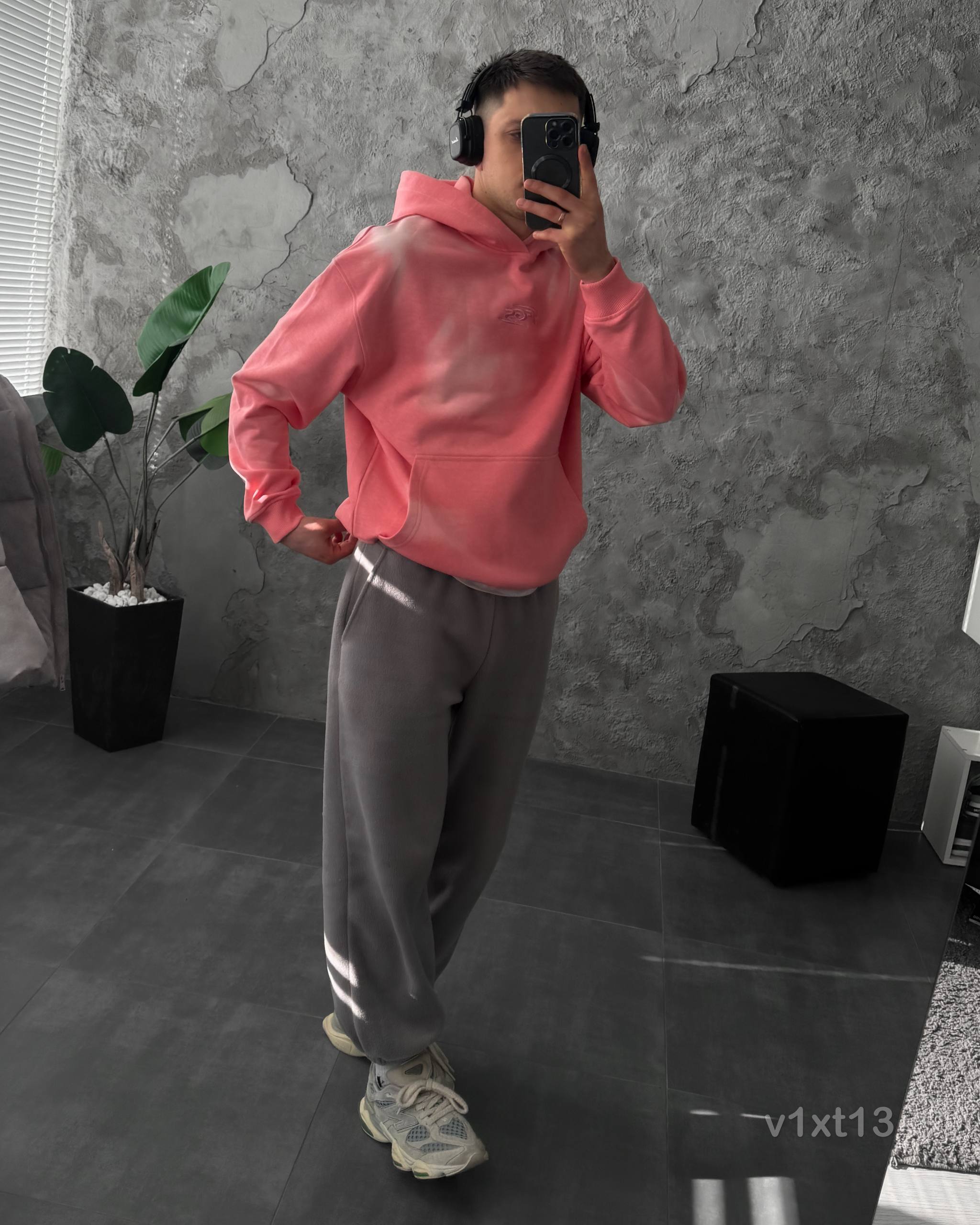 Чоловіче Рожеве Худі Оверсайз з Маленькою Вишивкою – Тринитка ТЕРМОХРОМ
