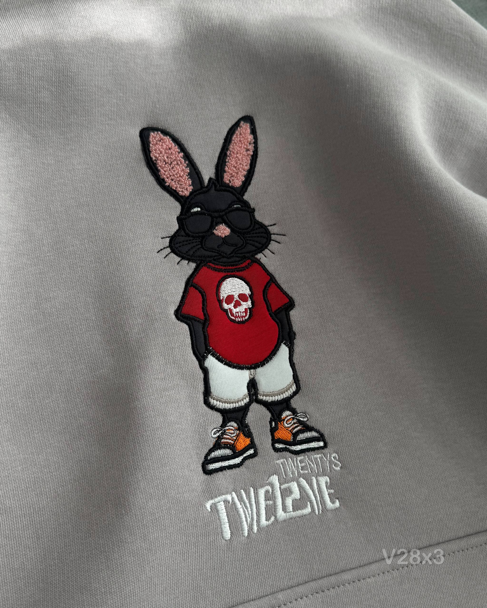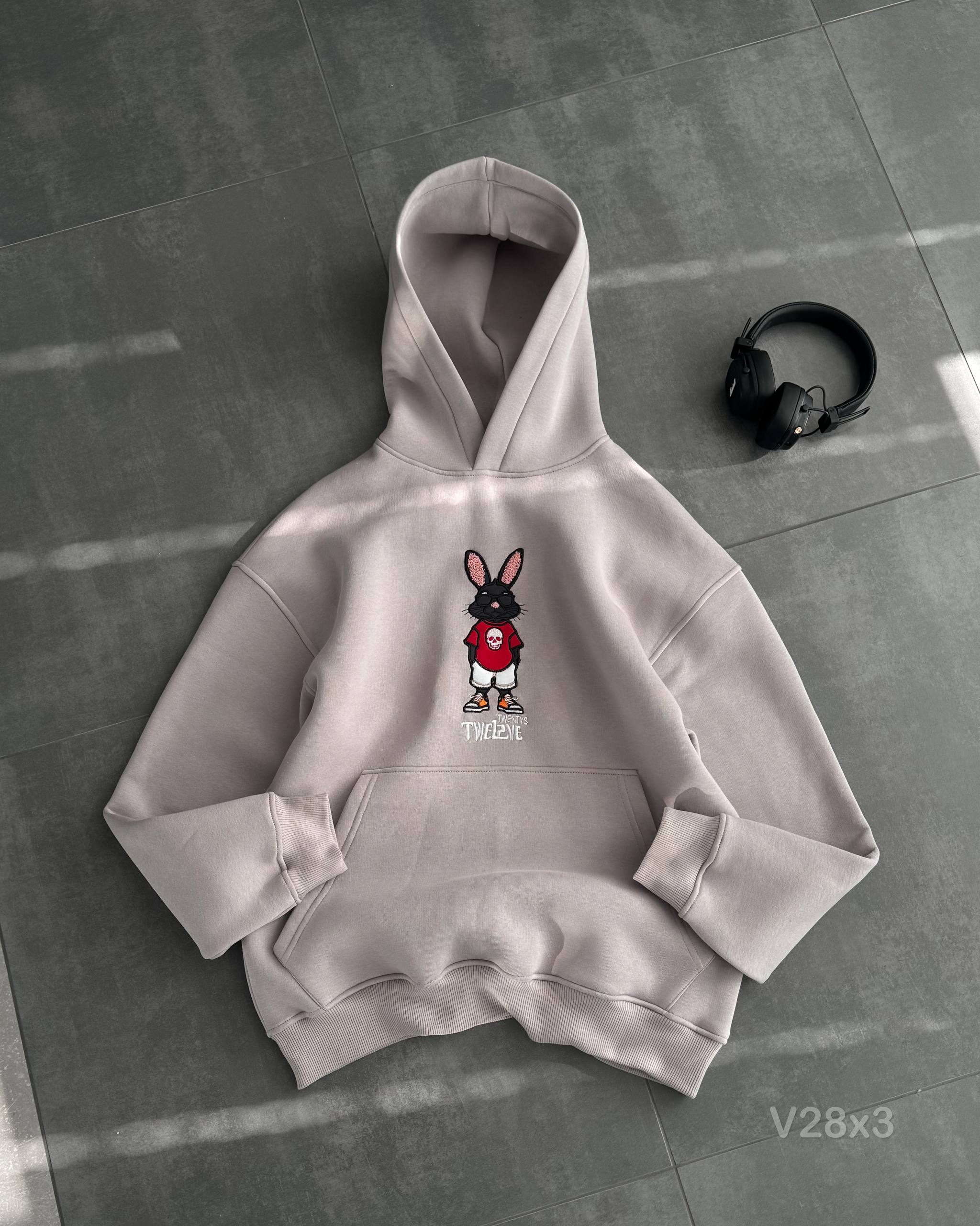 Чоловіче Сіре Худі на Флісі – Вільного Крою з Вишивкою Заєць