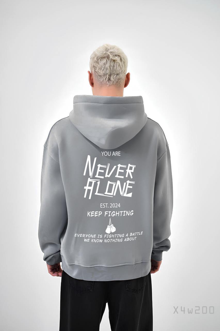 Чоловіче Сіре Худі “Never Alone” – Вільного Крою на Флісі