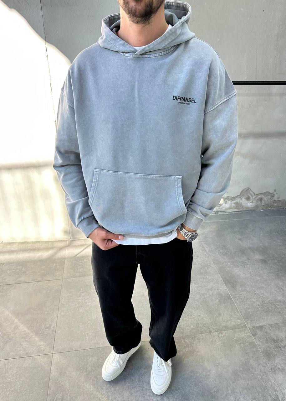 Чоловіче Сіре Худі Оверсайз – Бавовняне Варене