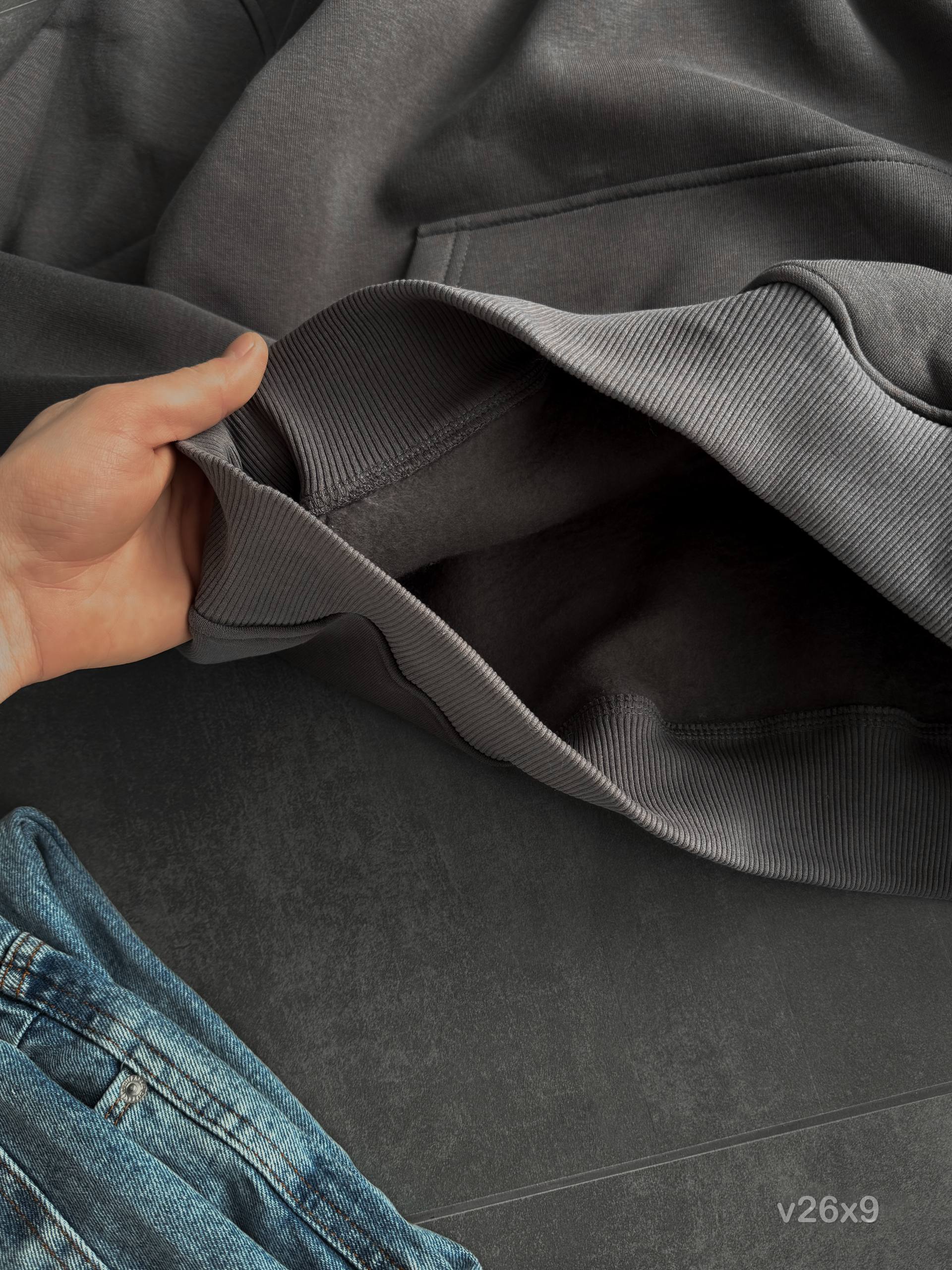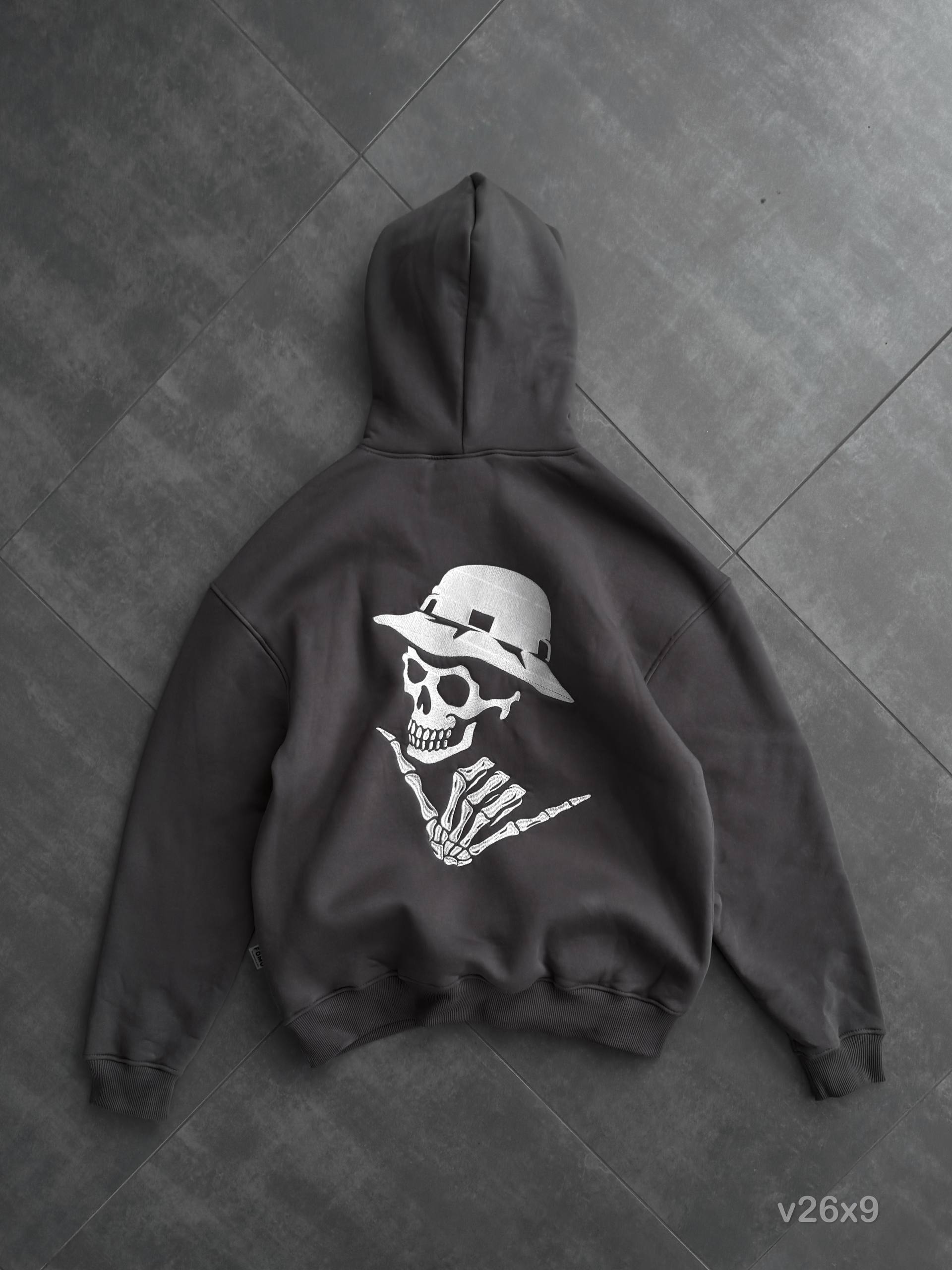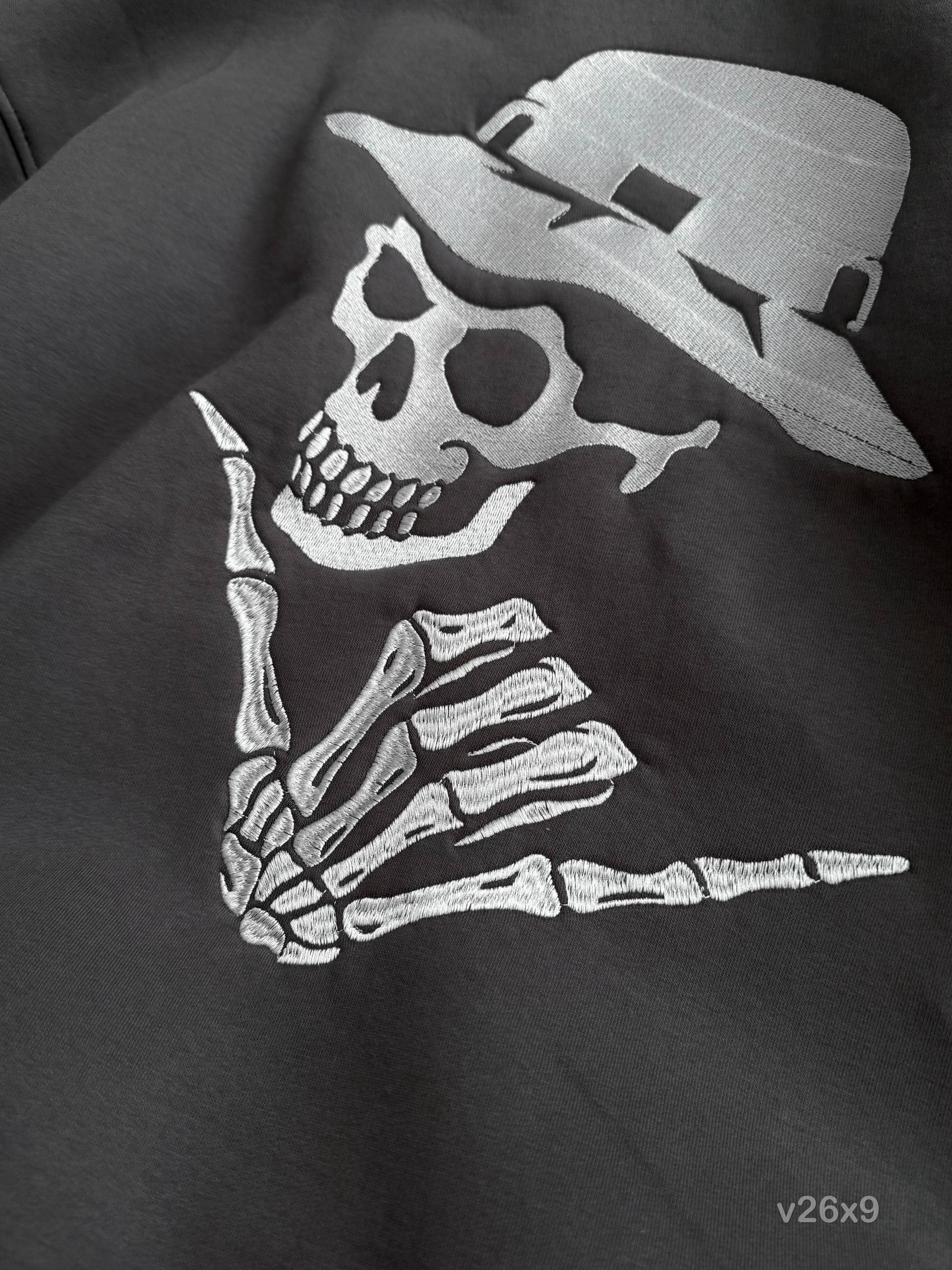 Чоловіче Темно-Сіре Худі Оверсайз з Вишивкою Скелет (На Флісі)