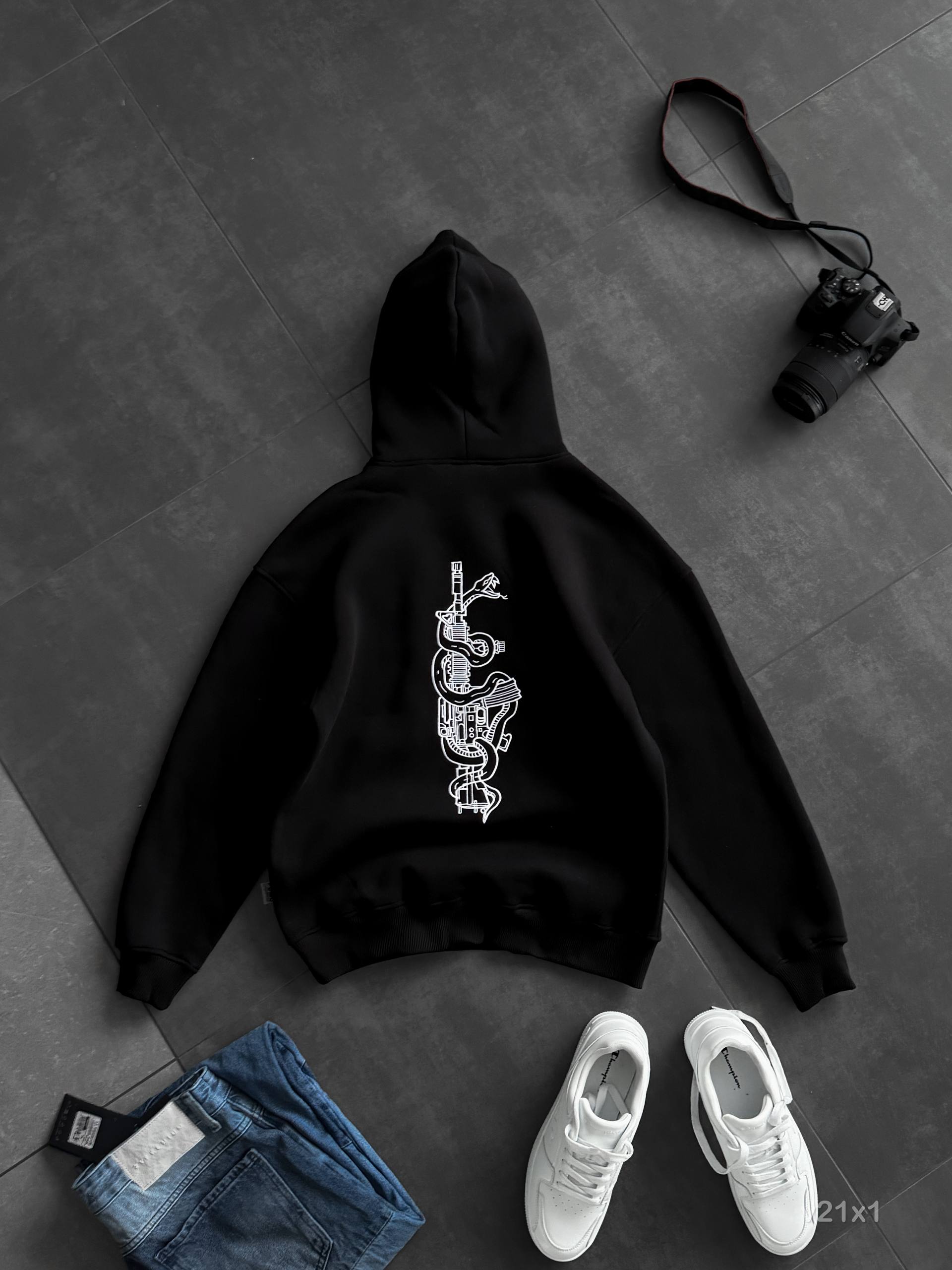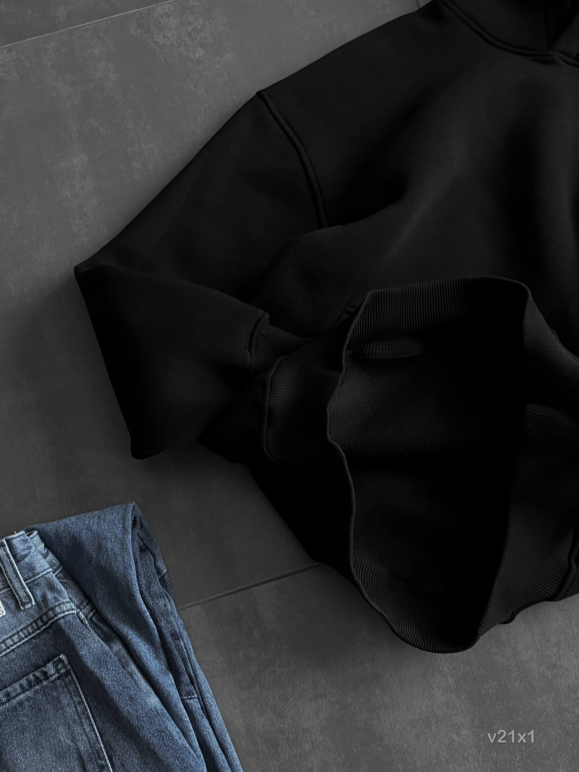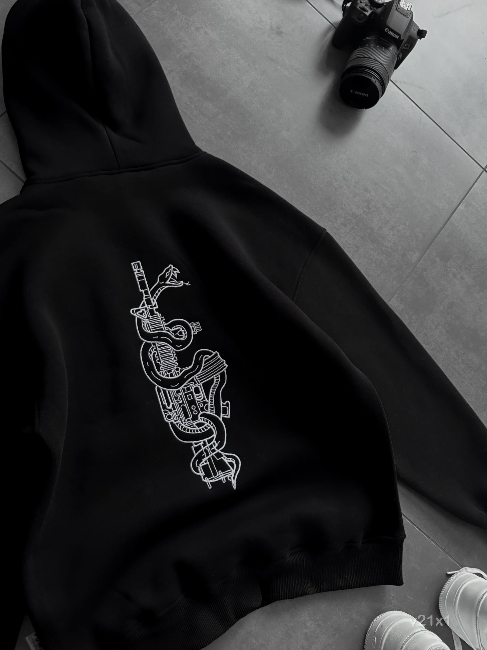 Чоловіче Тепле Чорне Худі Оверсайз на Флісі з Вишивкою