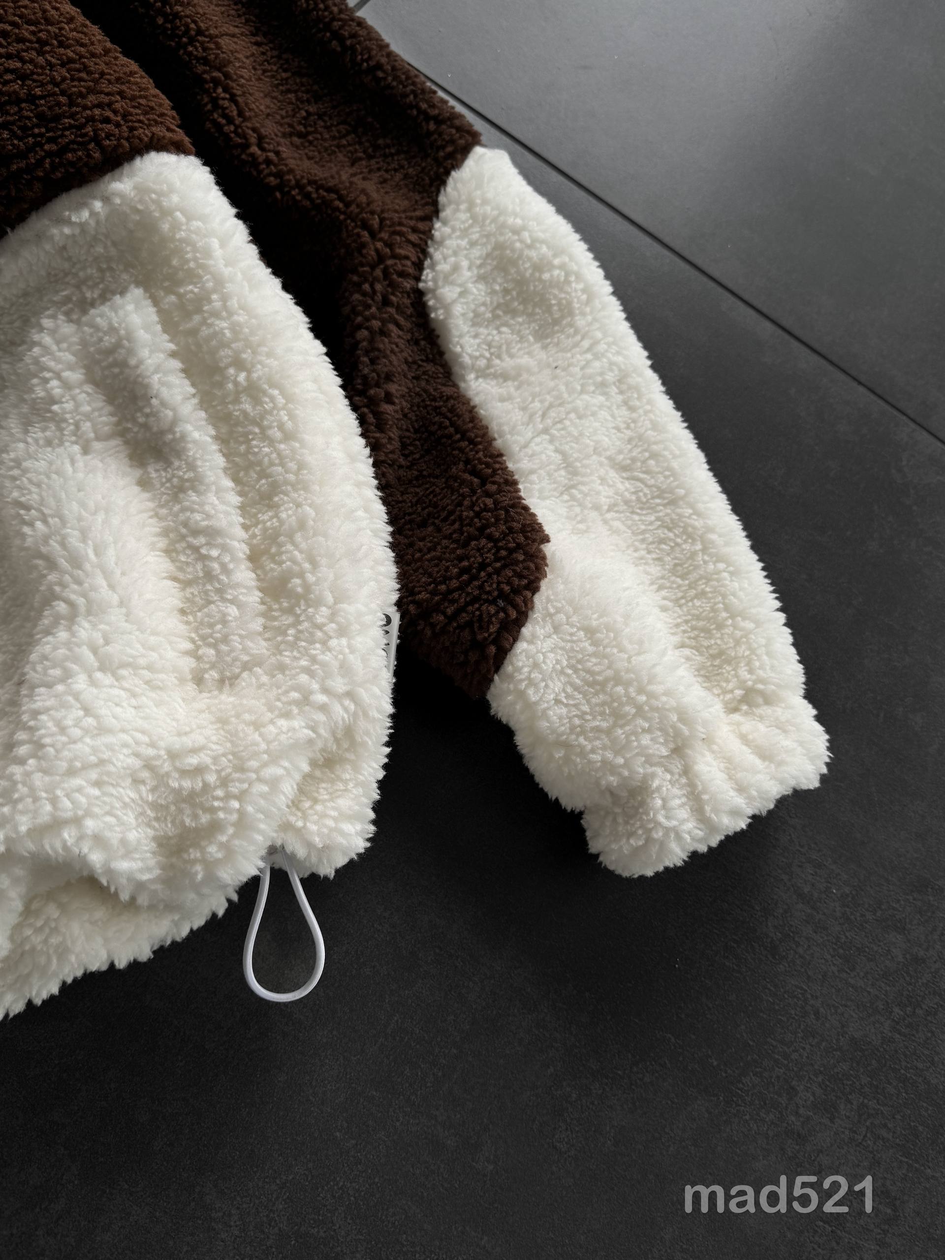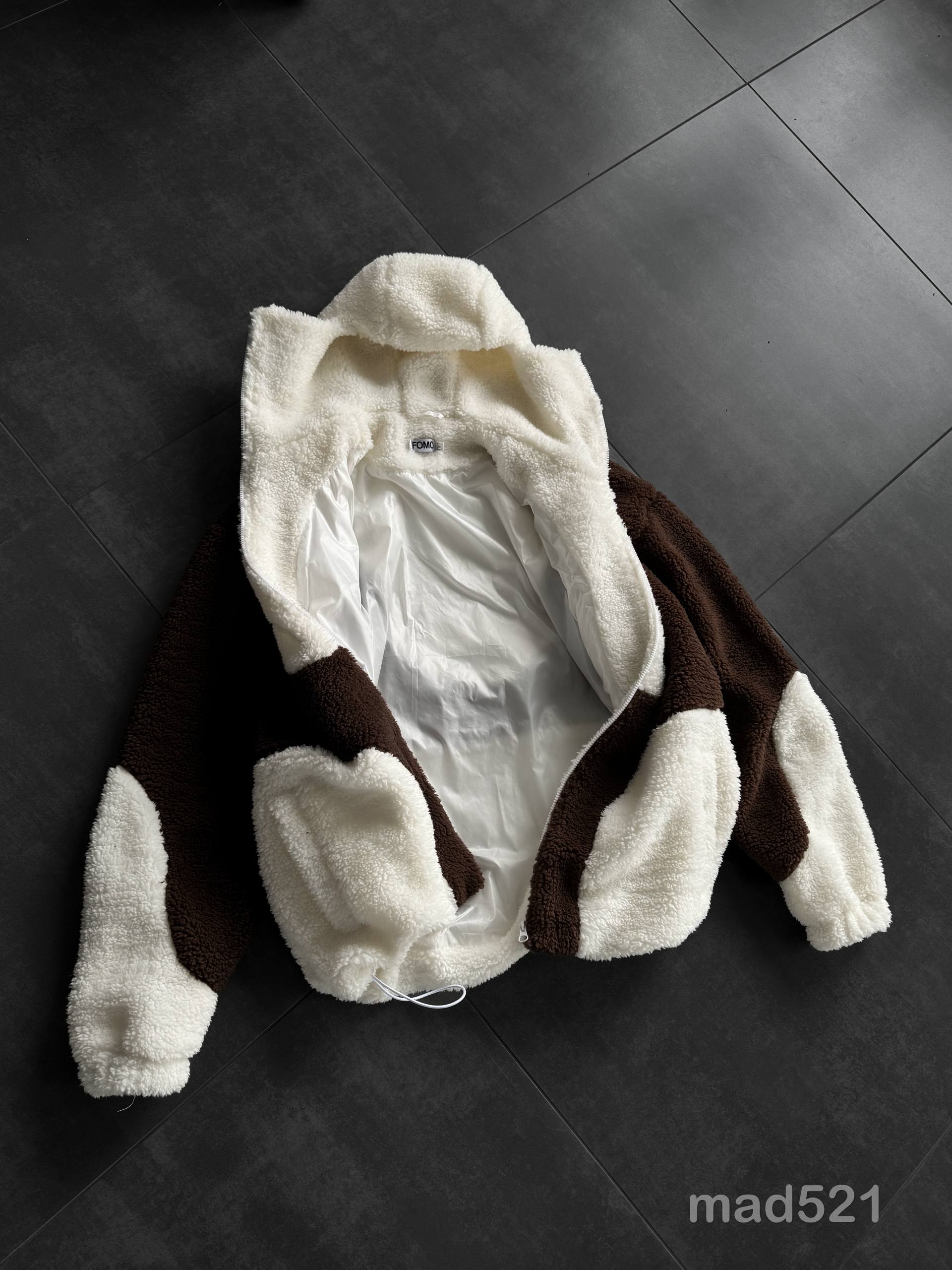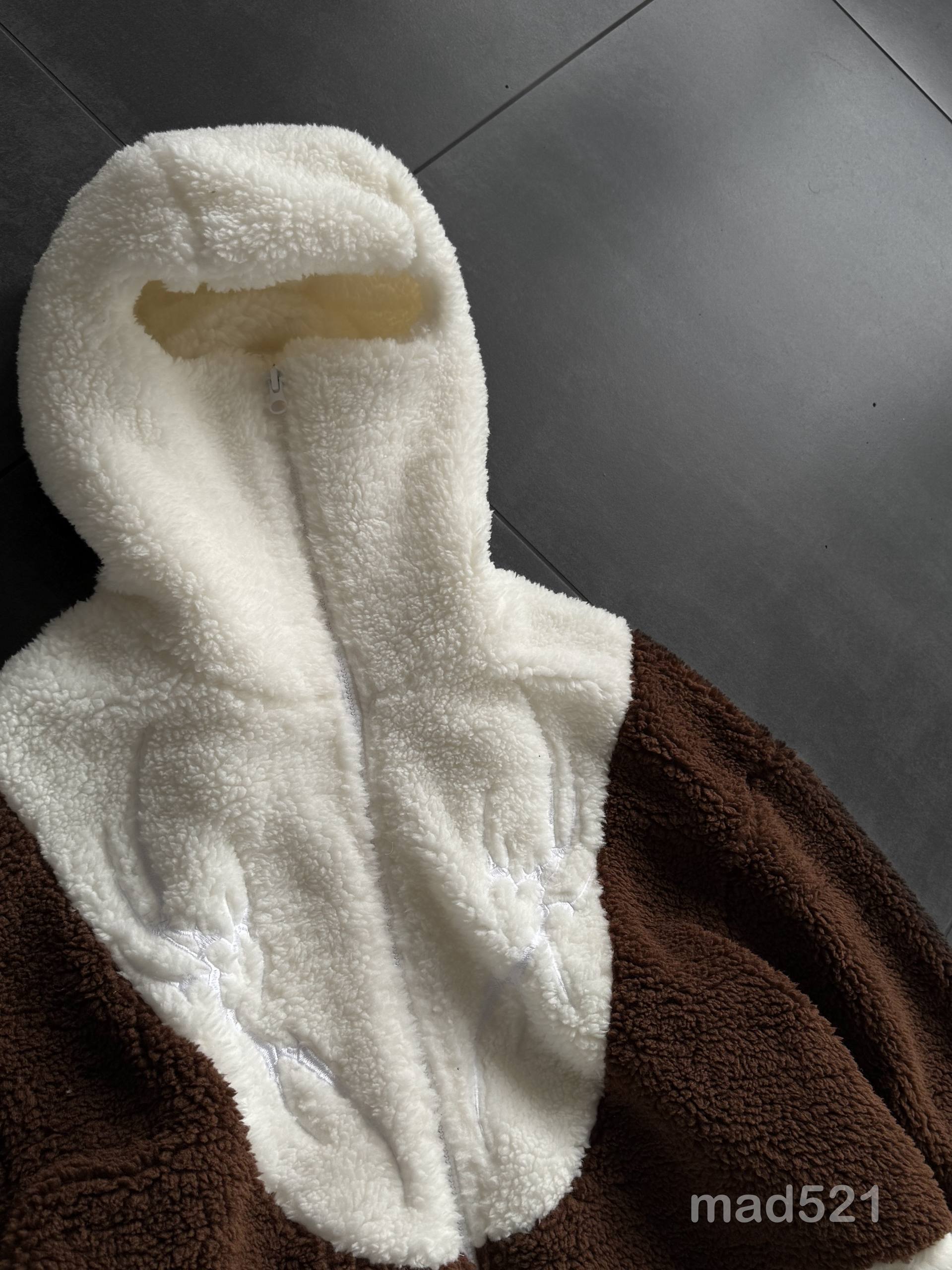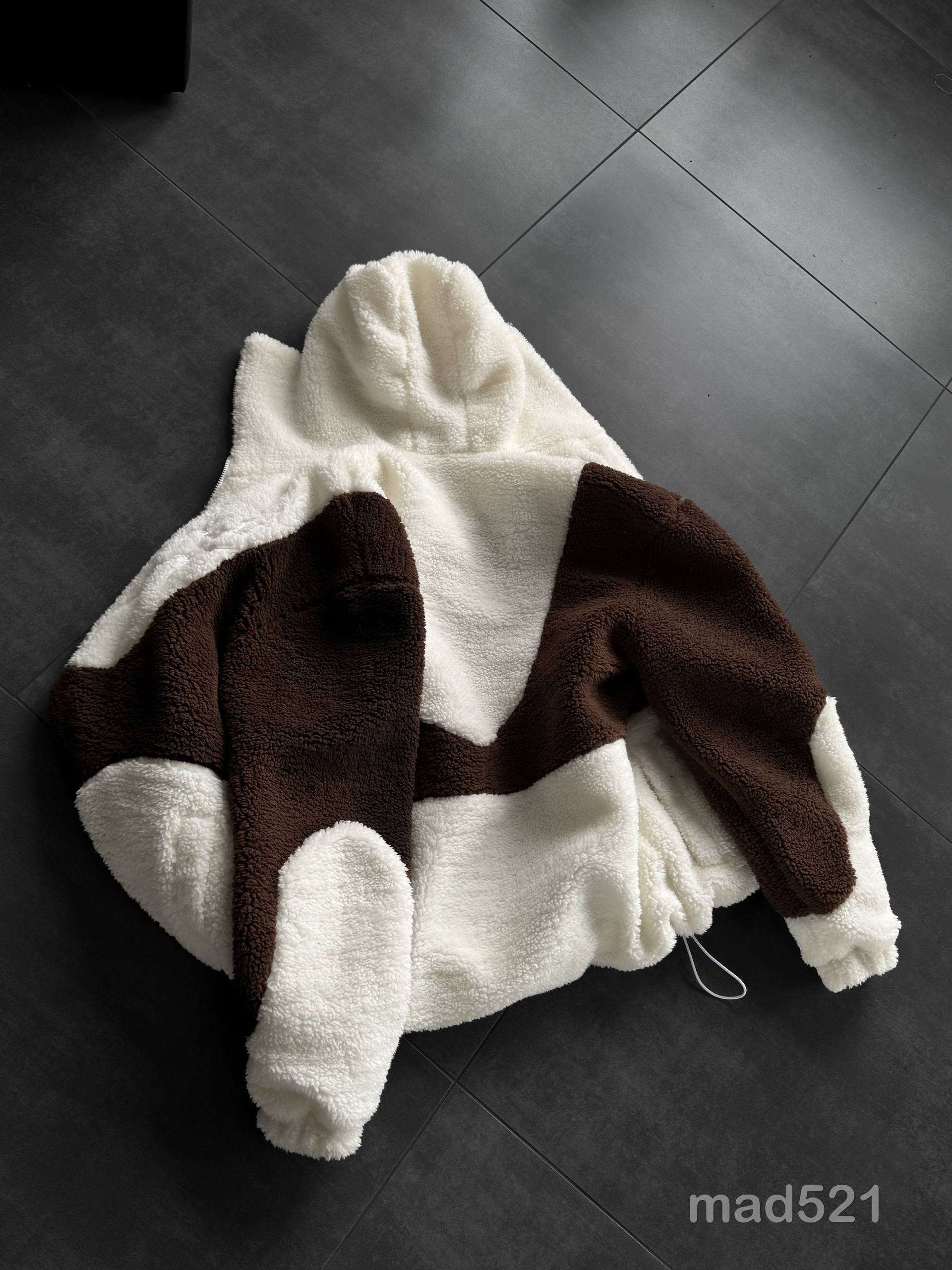 Чоловіче Тепле Коричнево-Біле Зіп Худі Оверсайз з Балаклавою – Плюшеве на Блискавці з Вишивкою