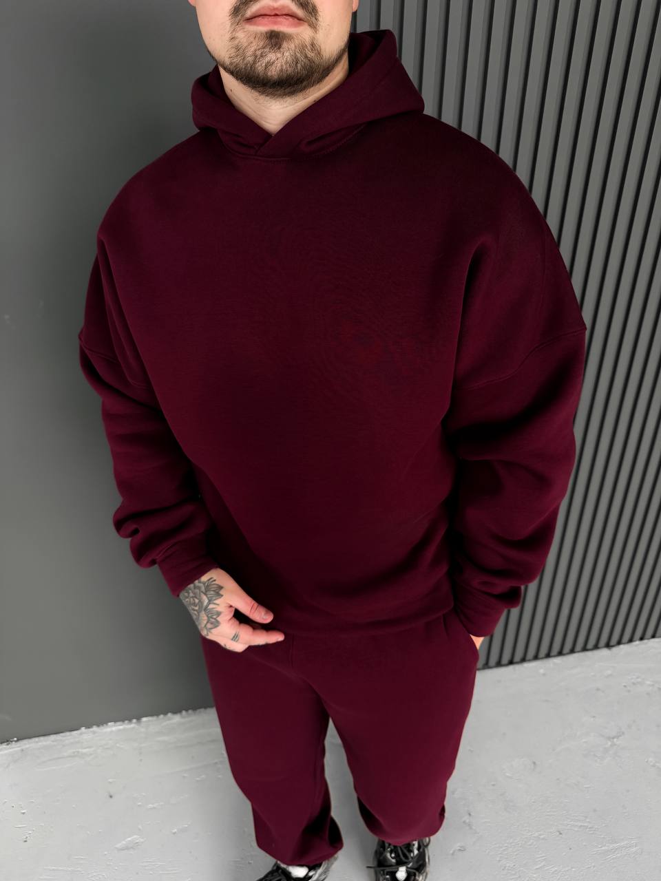Чоловіче Утеплене Базове Бордове Худі – Толстовка з Начосом