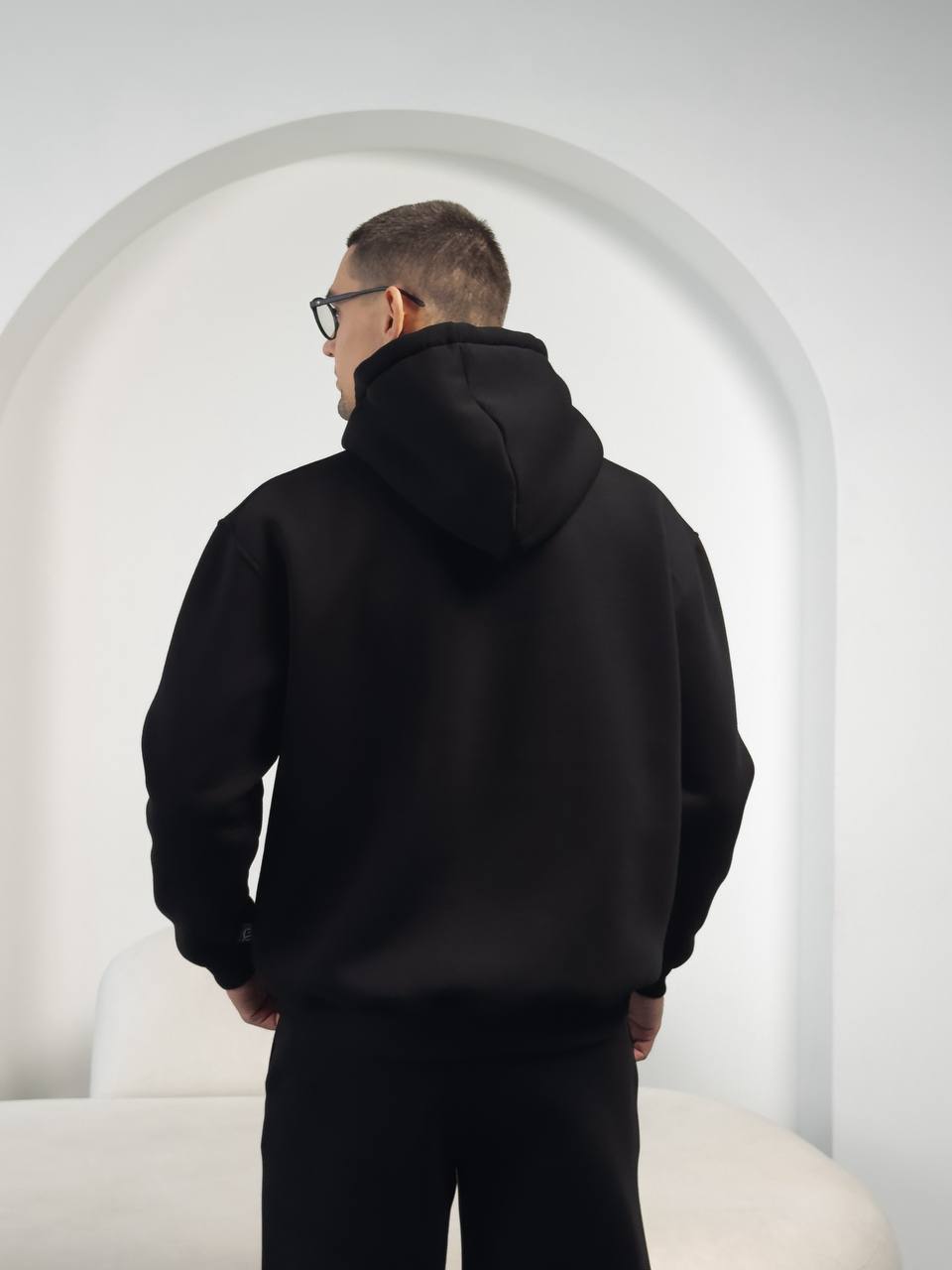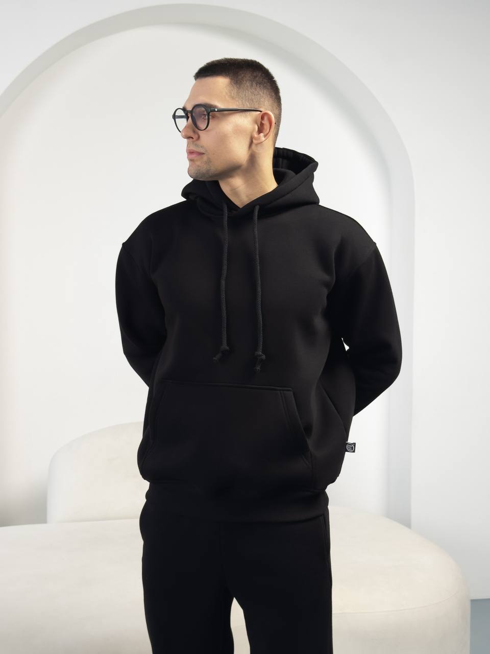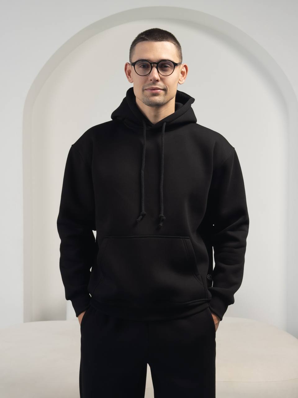 Чоловіче Утеплене Чорне Худі на Флісі – Базове Оверсайз