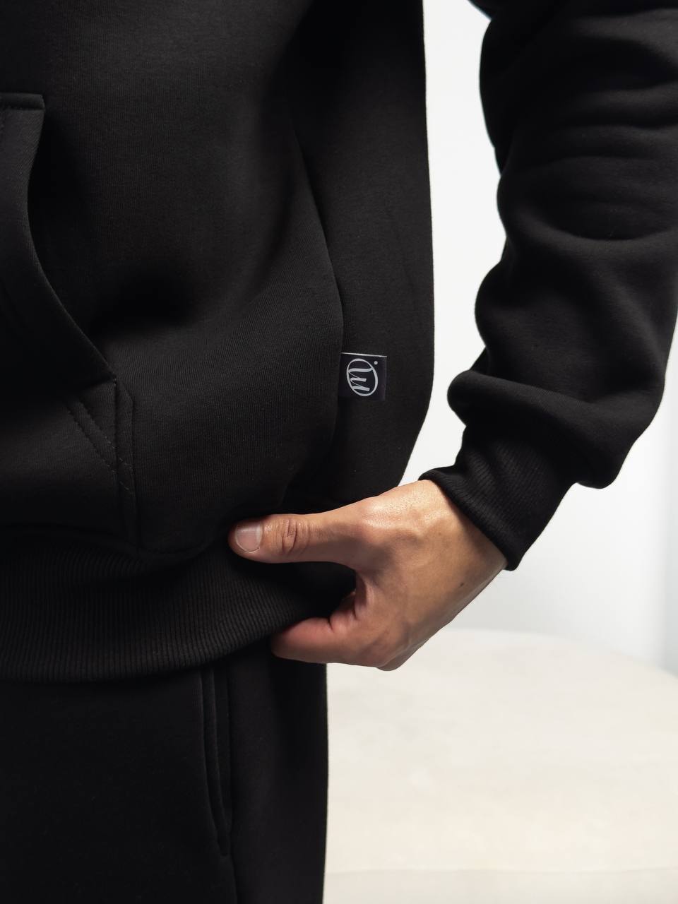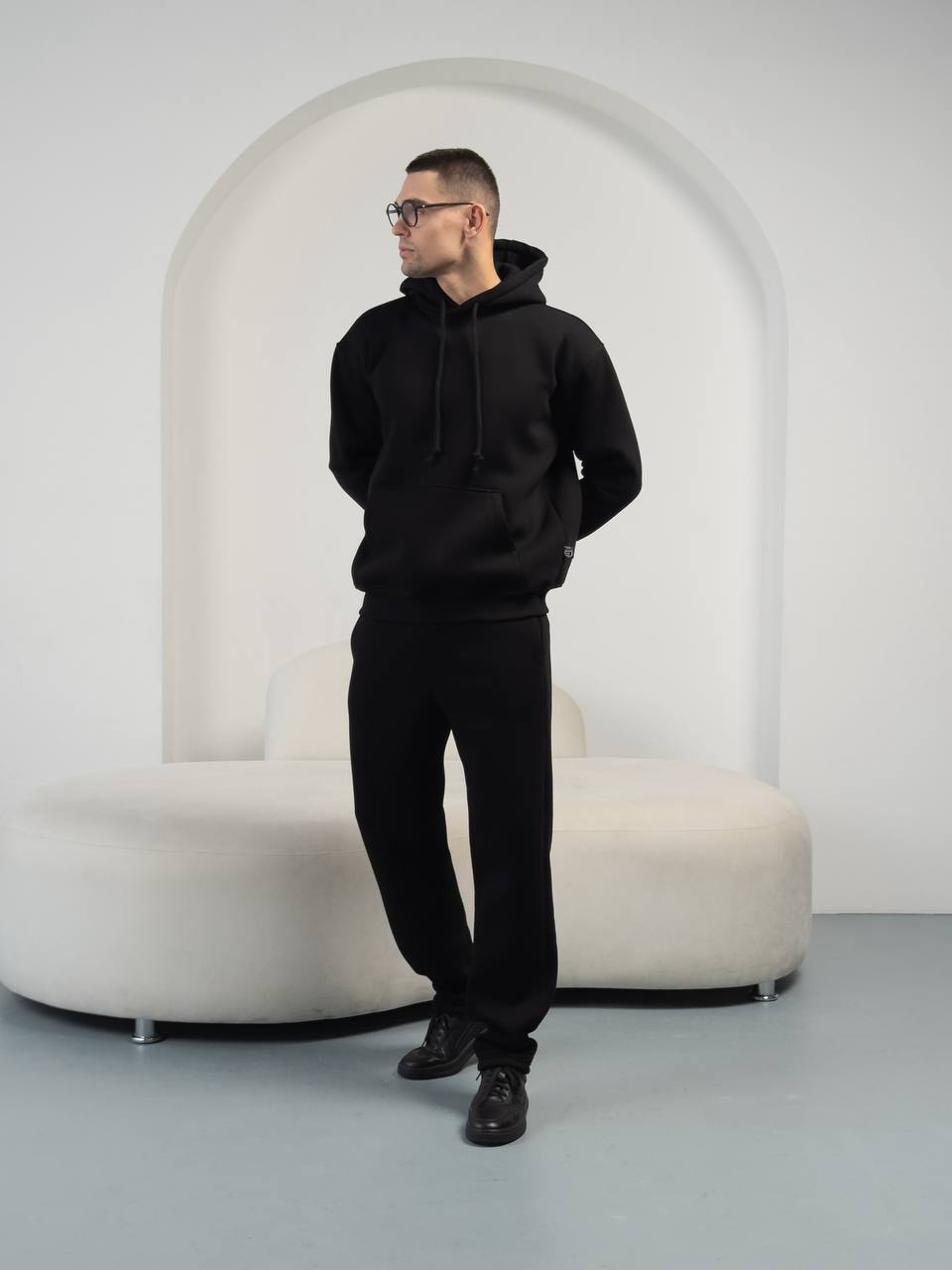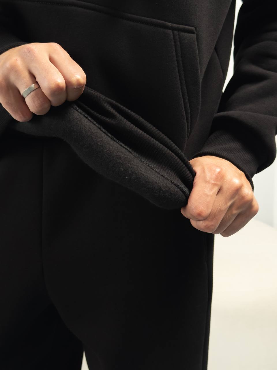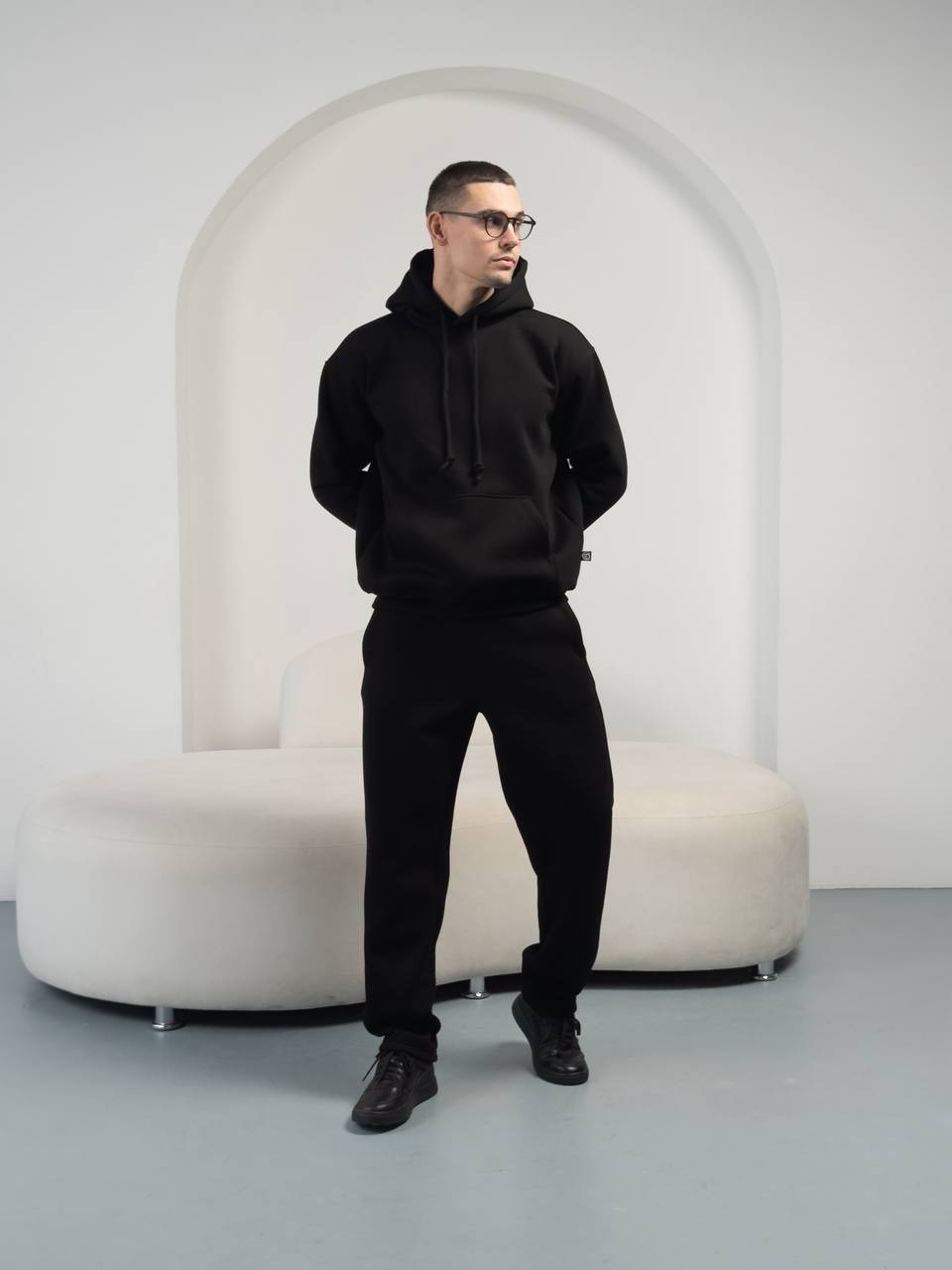Чоловіче Утеплене Чорне Худі на Флісі – Базове Оверсайз