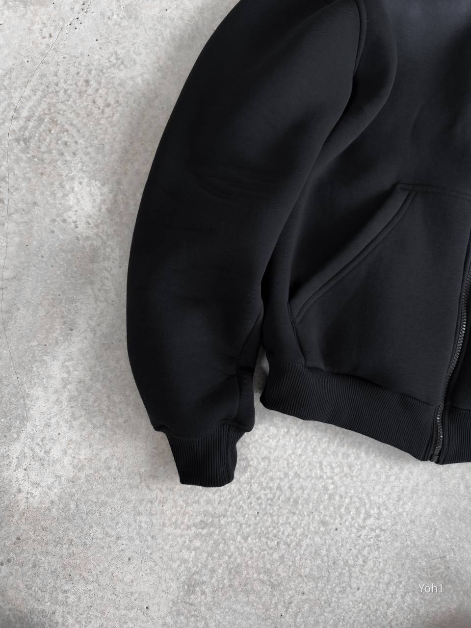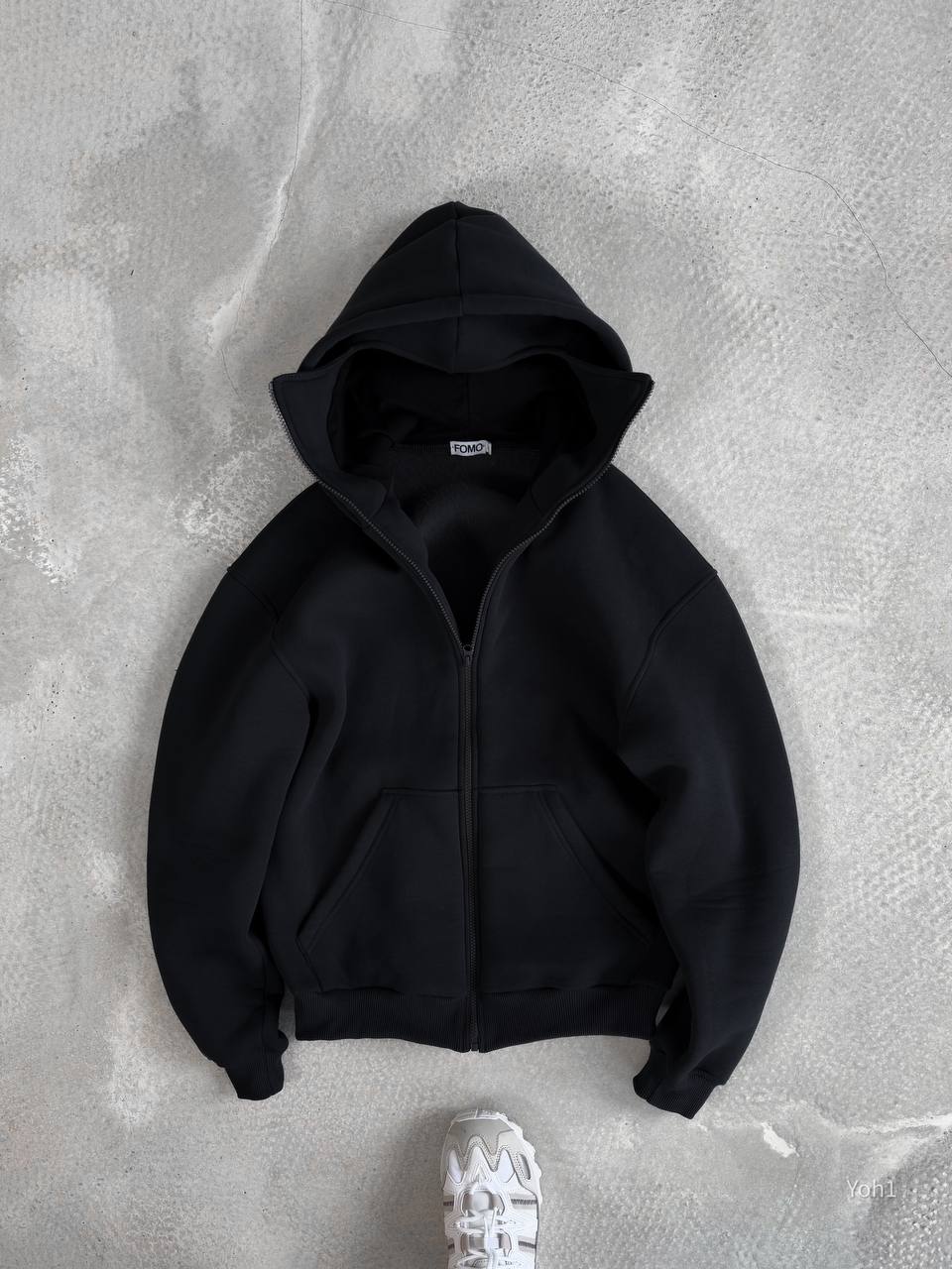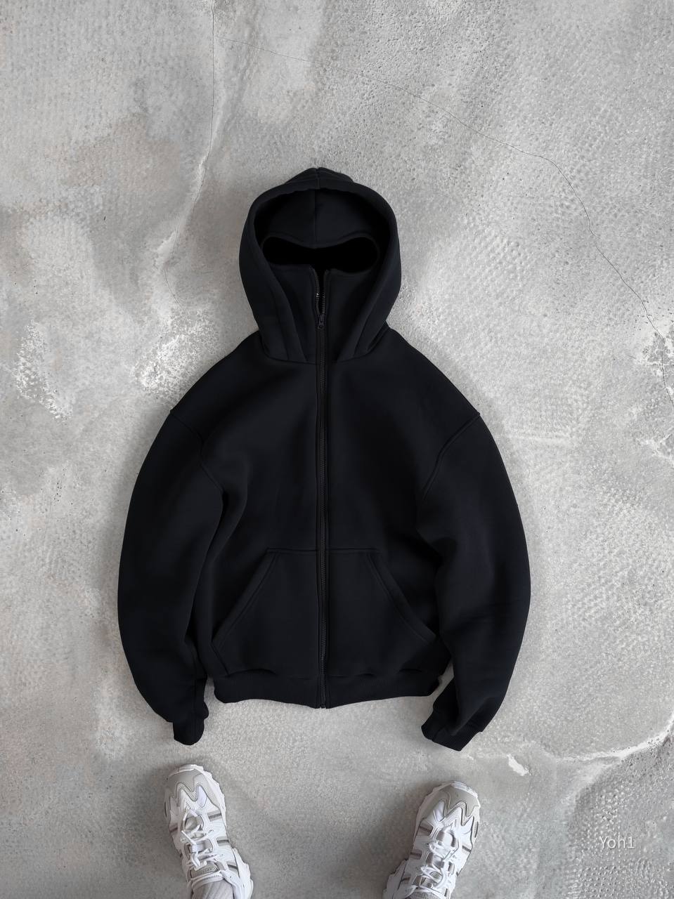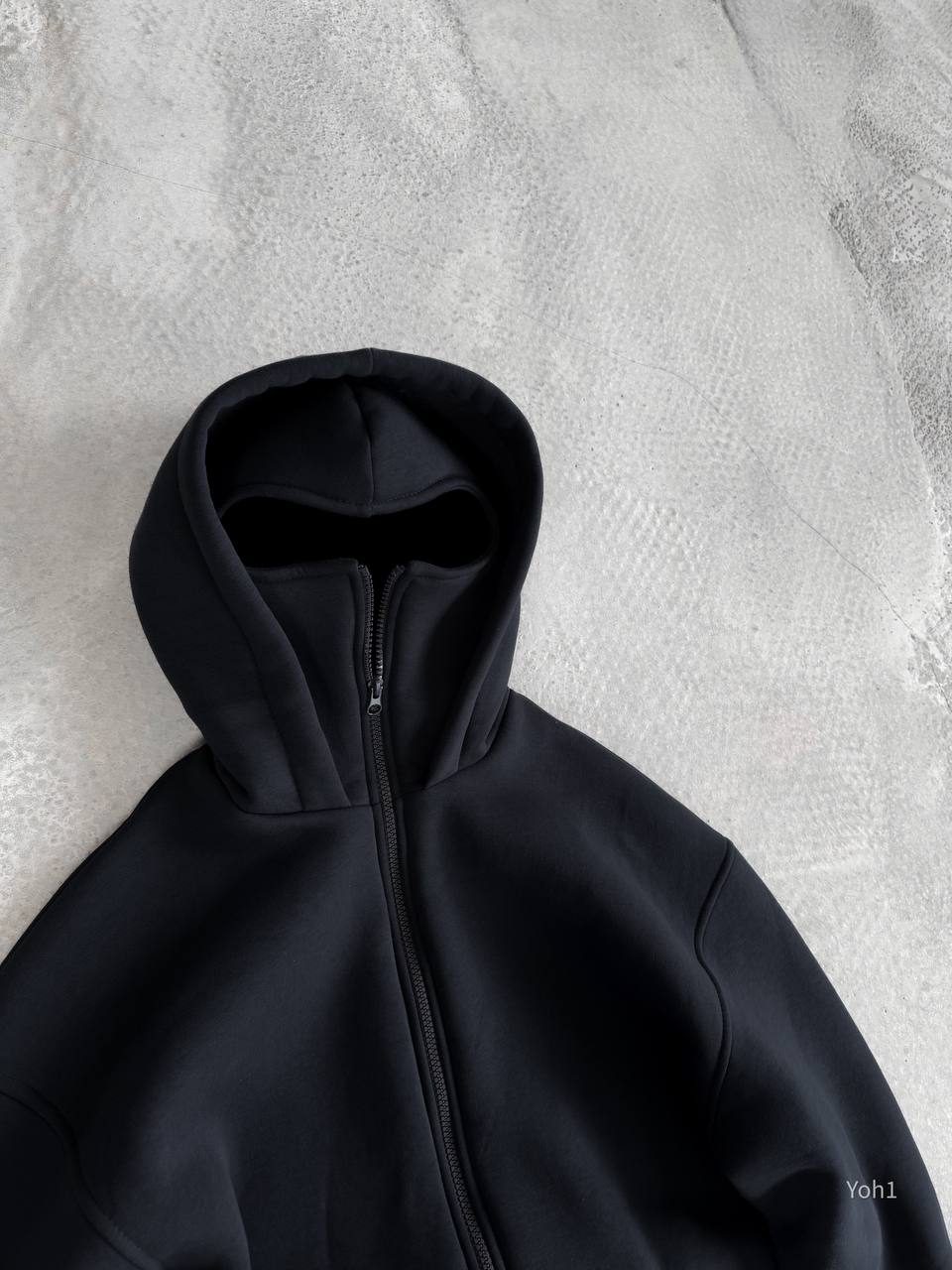 Чоловіче Утеплене Чорне Зіп Худі Оверсайз на Флісі з Балаклавою