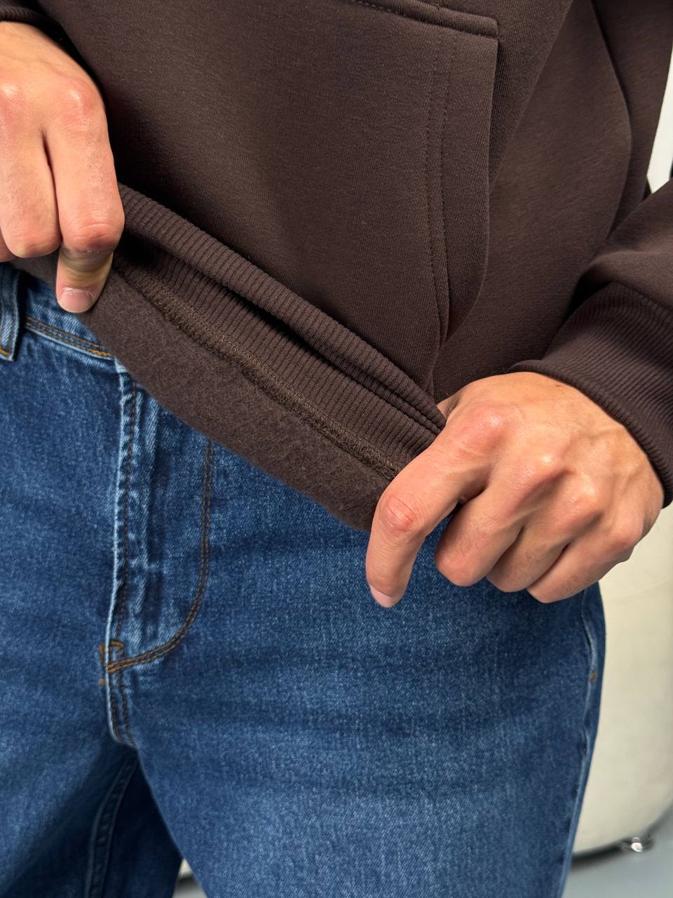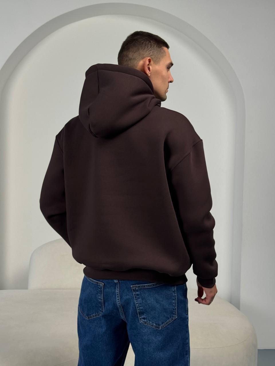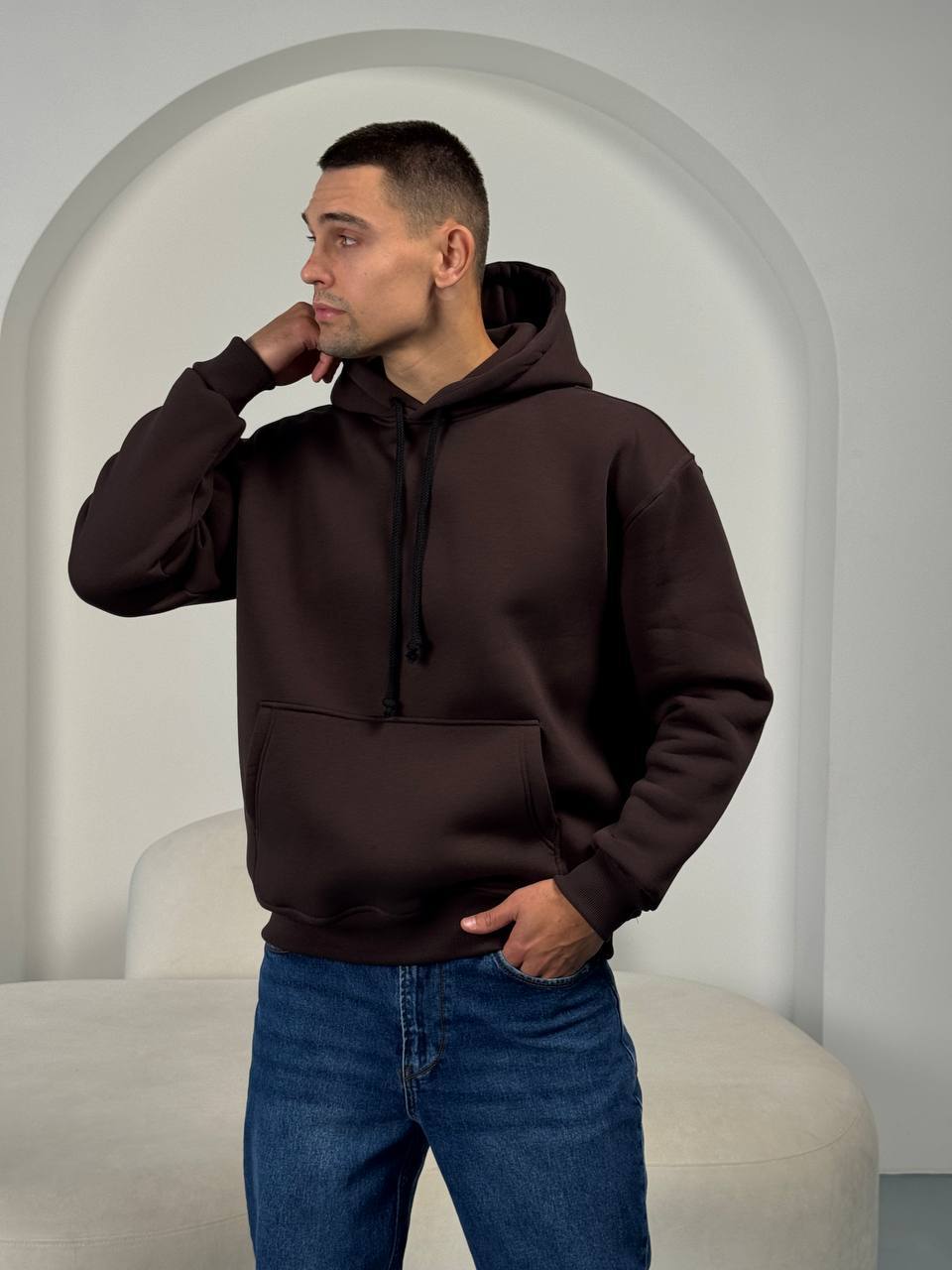 Чоловіче Утеплене Коричневе Худі на Флісі – Базове Оверсайз