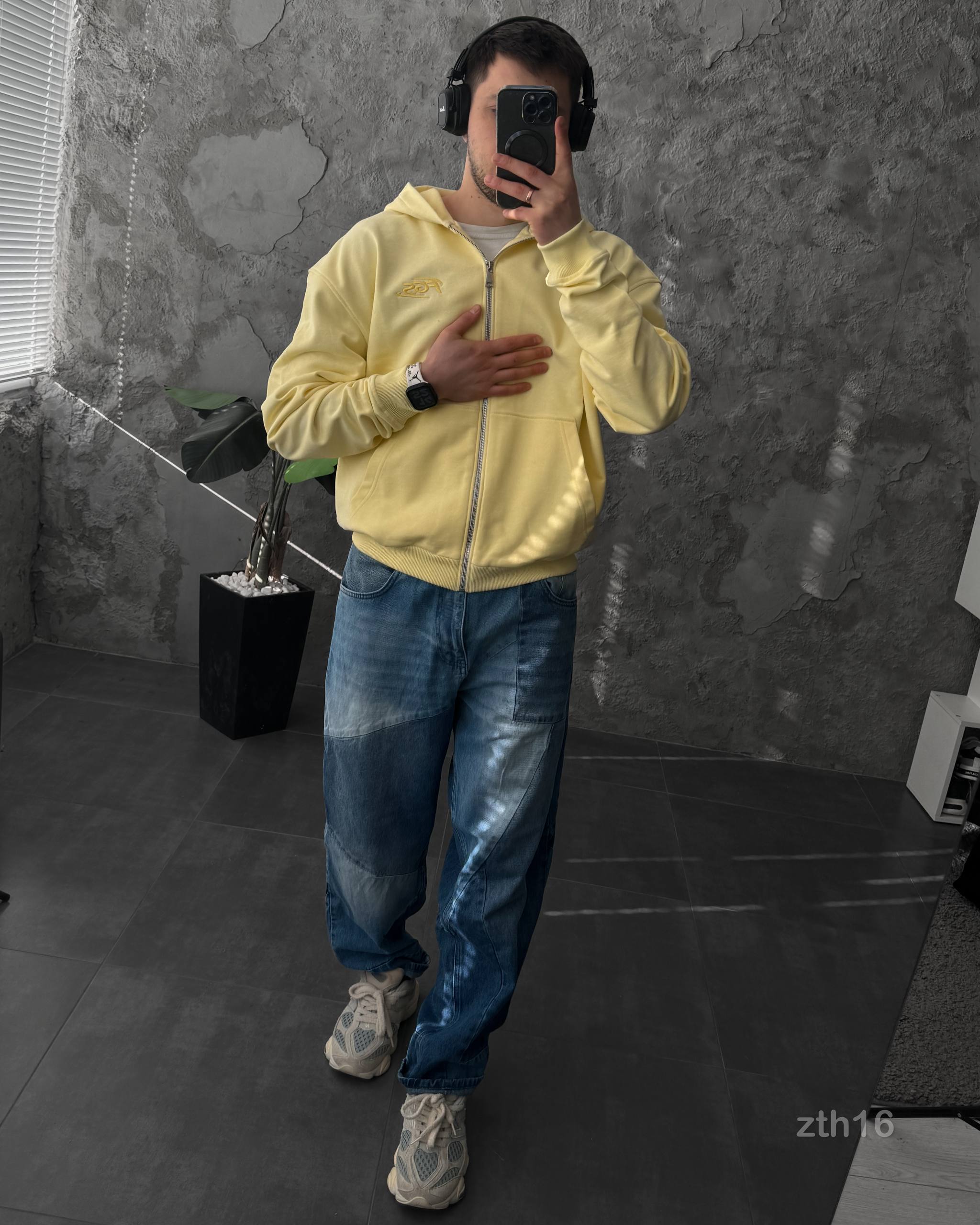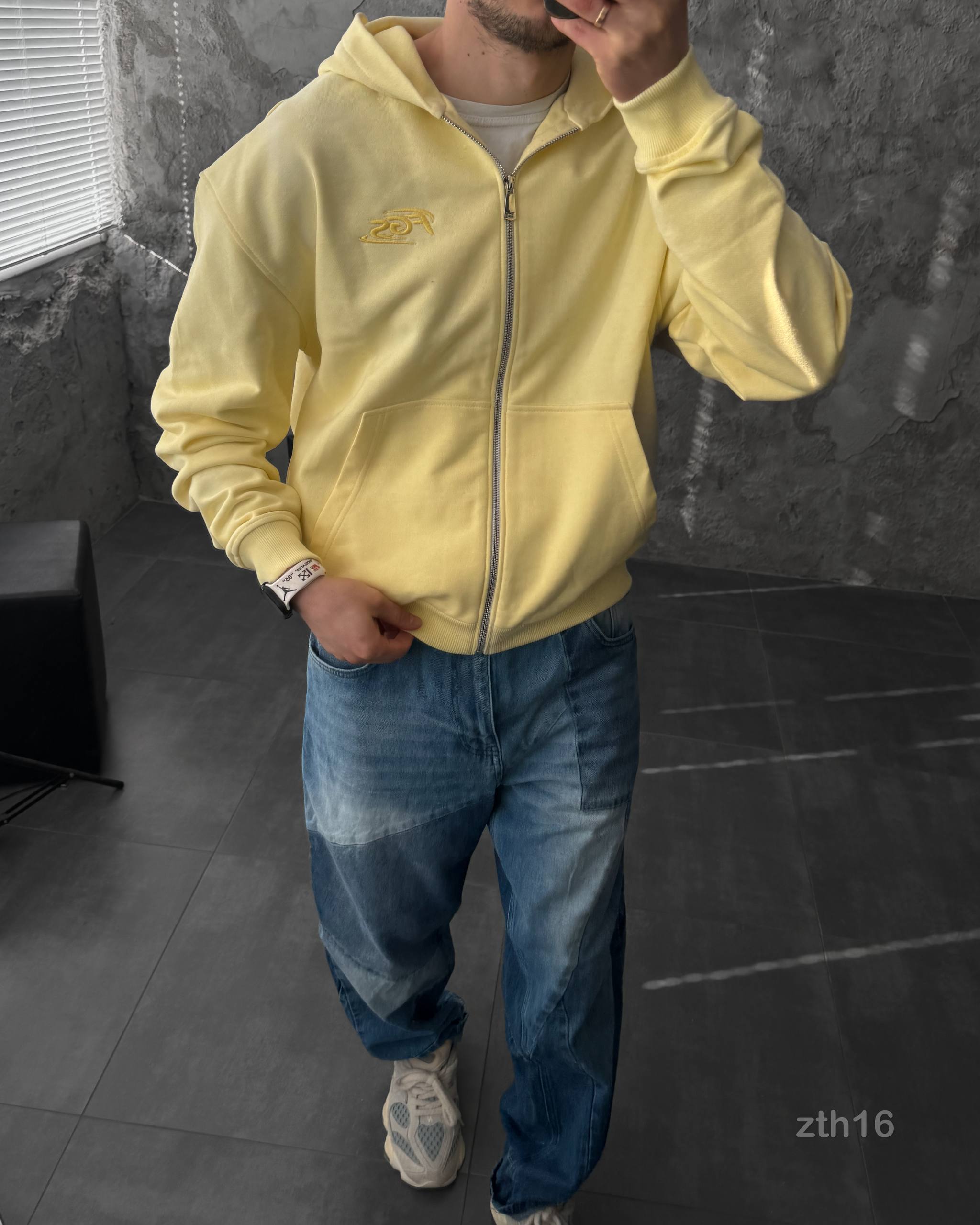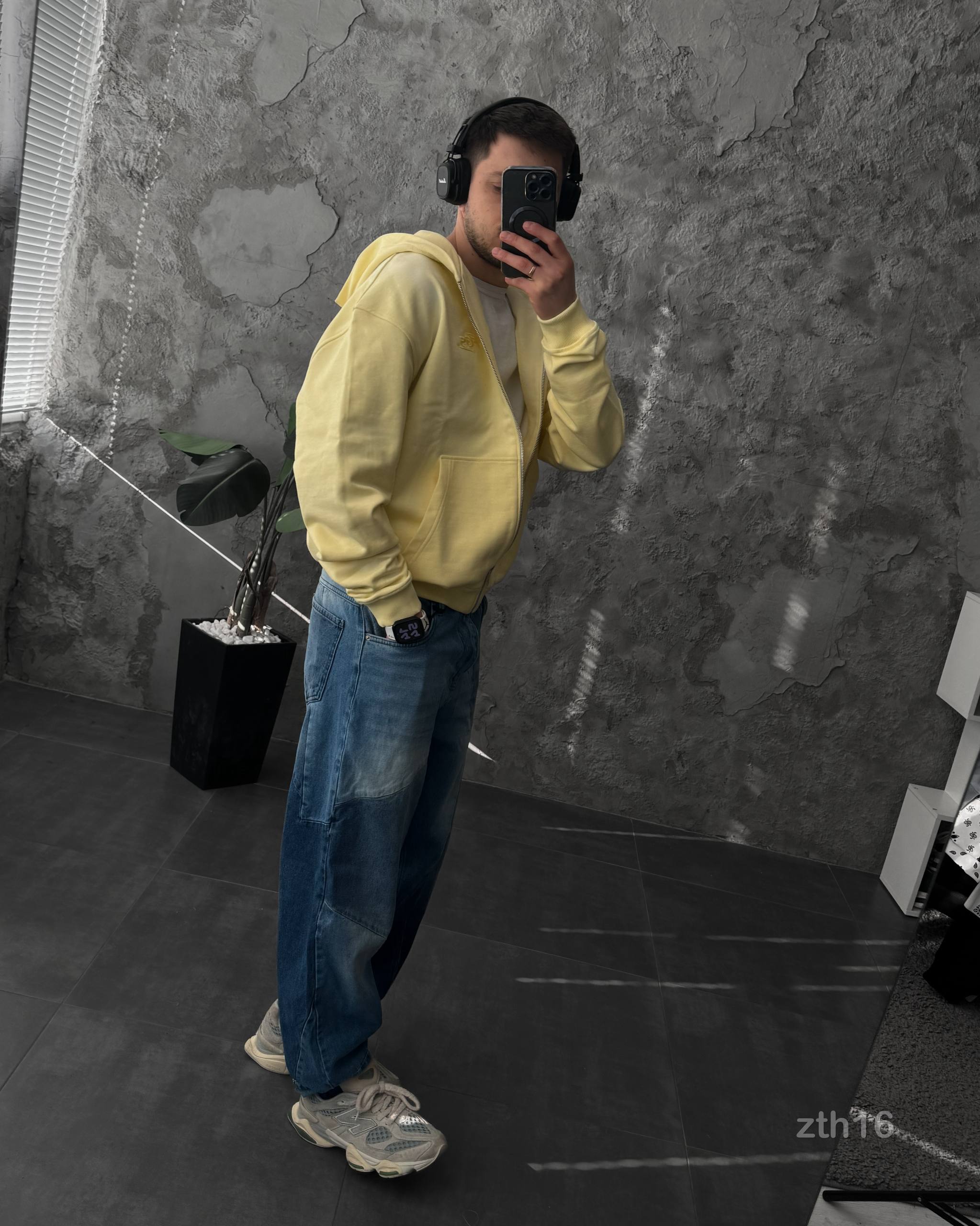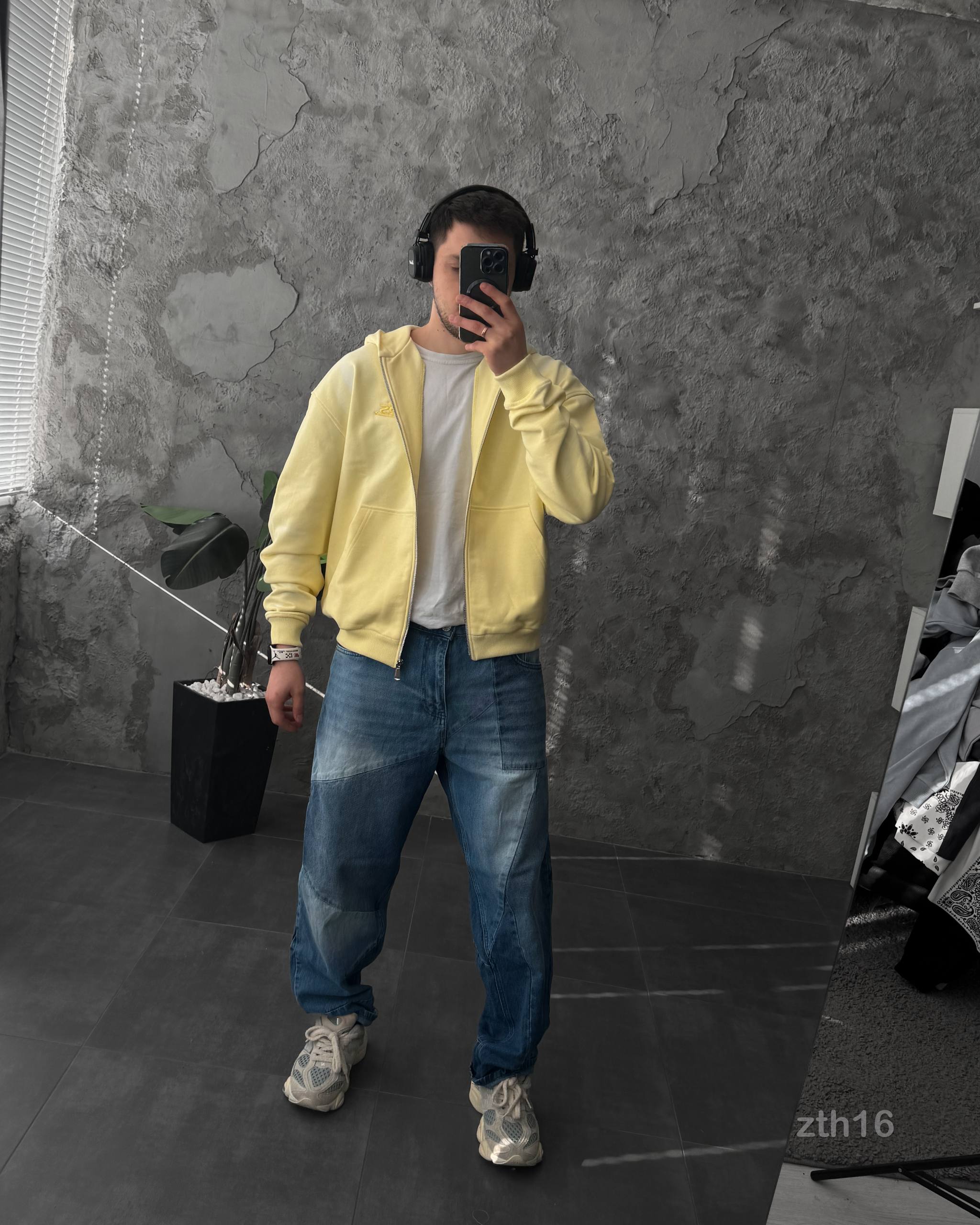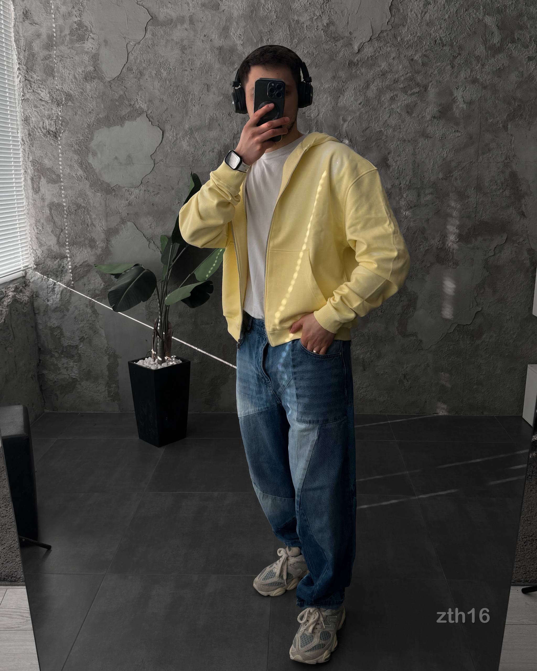 Чоловіче Жовте Худі Зіпка на Блискавці Оверсайз – Тринитка ТЕРМОХРОМ