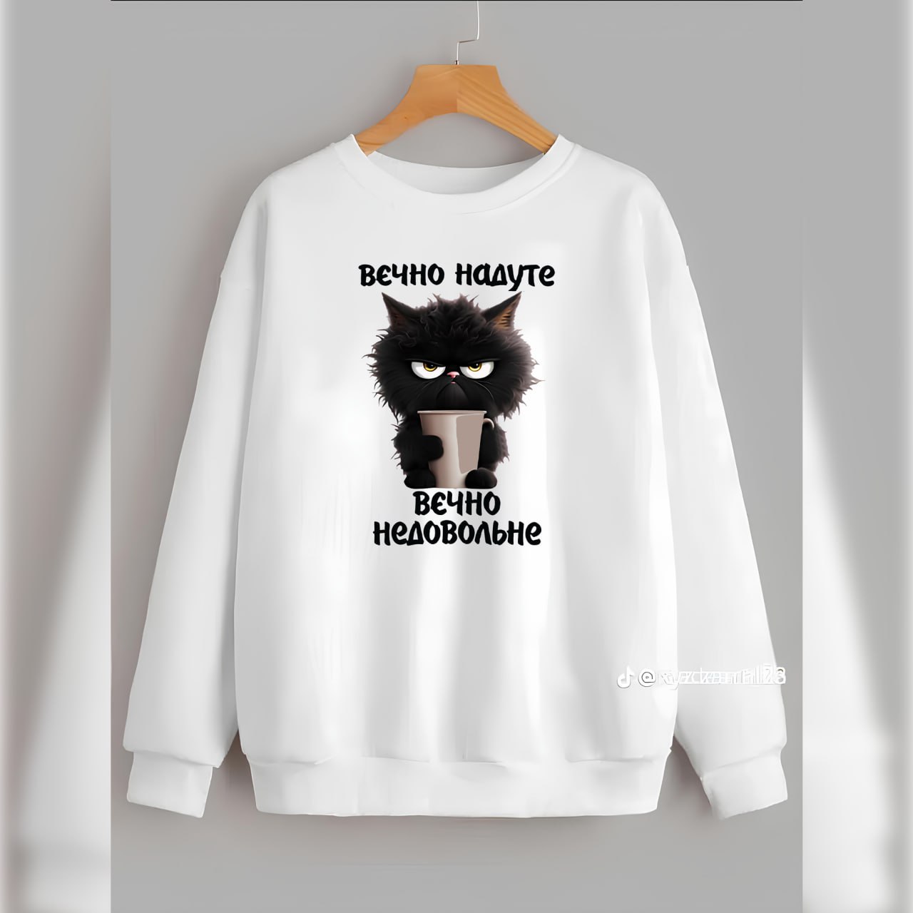 Чоловічий Об’ємний Білий Світшот із Принтом “Вєчно Надуте, Вєчно Недовольне”