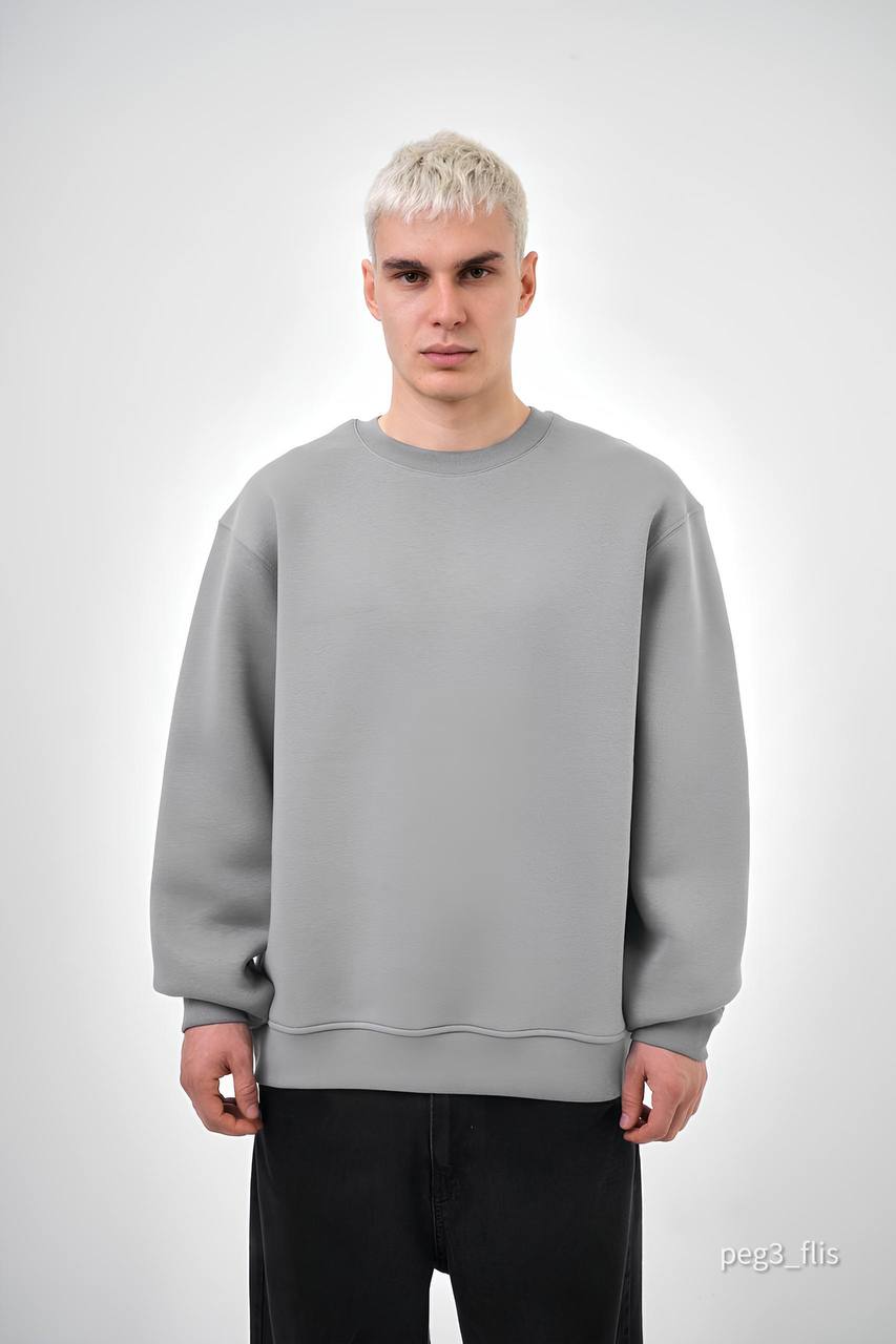 Чоловічий Утеплений Сірий Світшот Оверсайз на Флісі