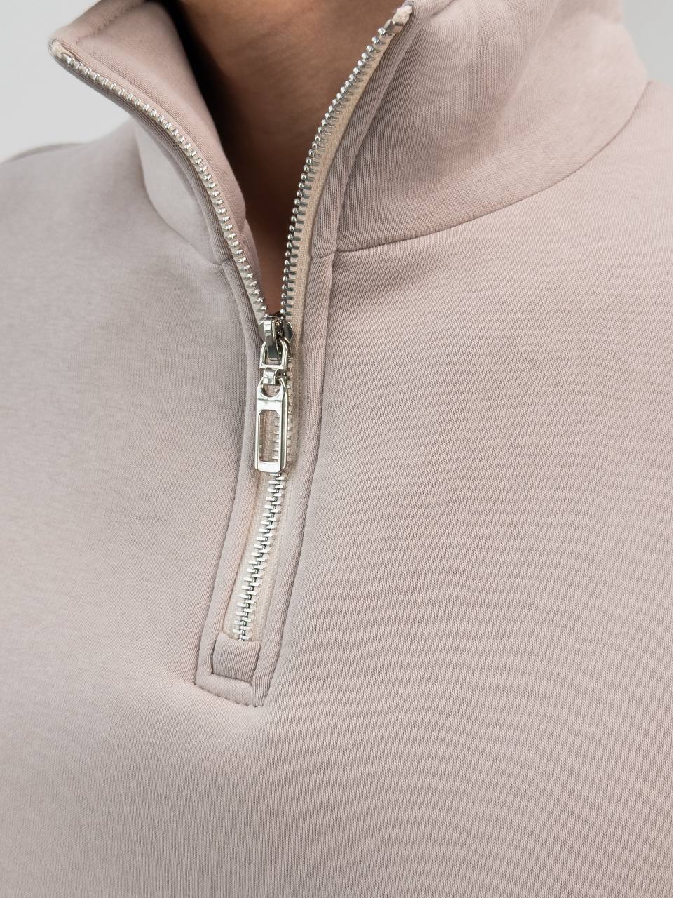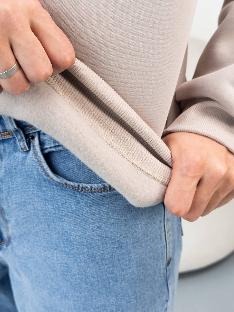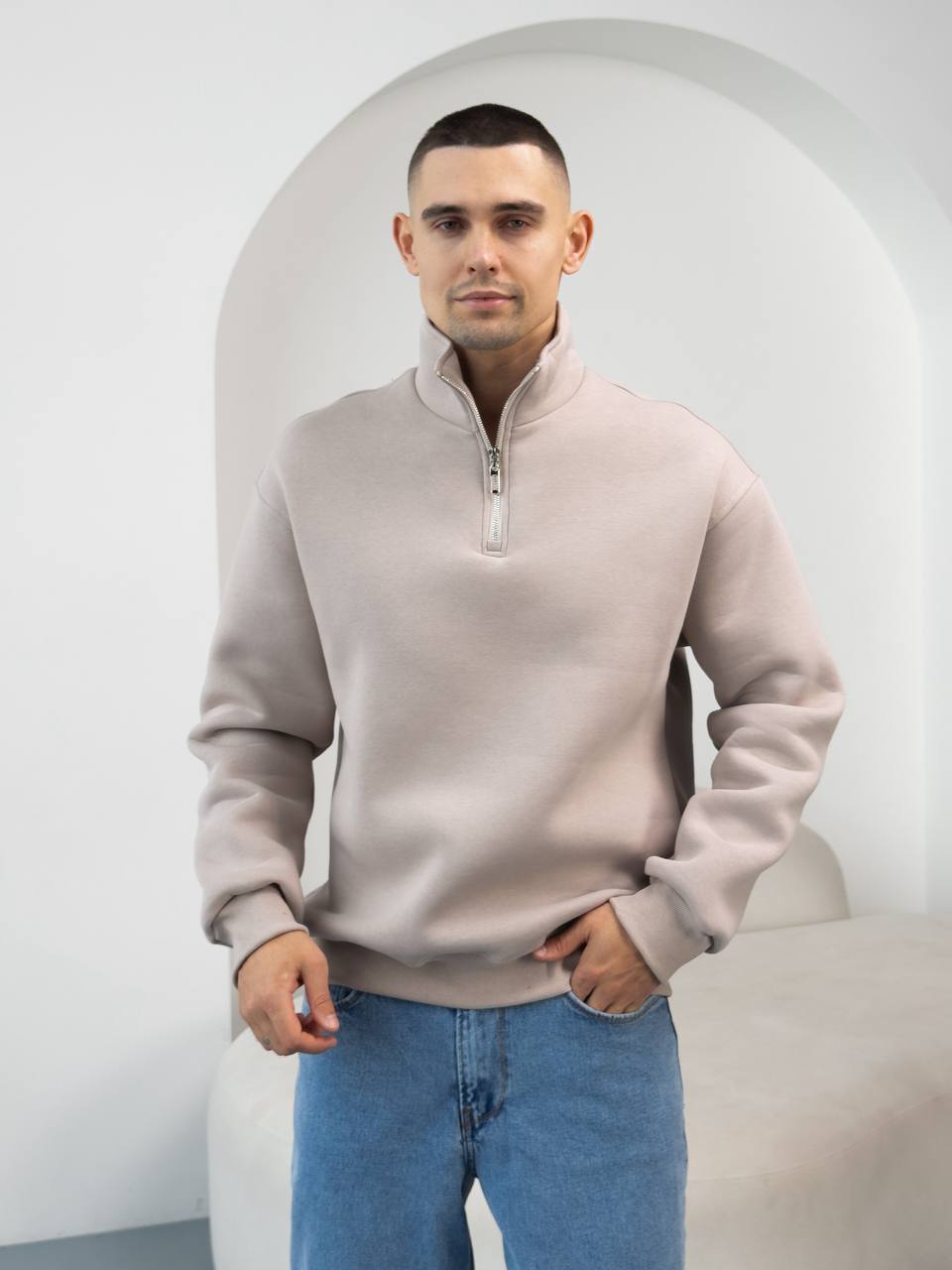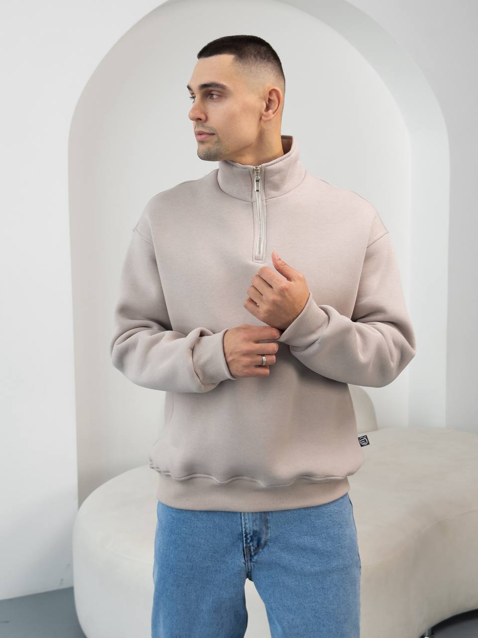 Чоловіча Бавовняна Бежева Кофта під Горло на Флісі із Замком на Комірі
