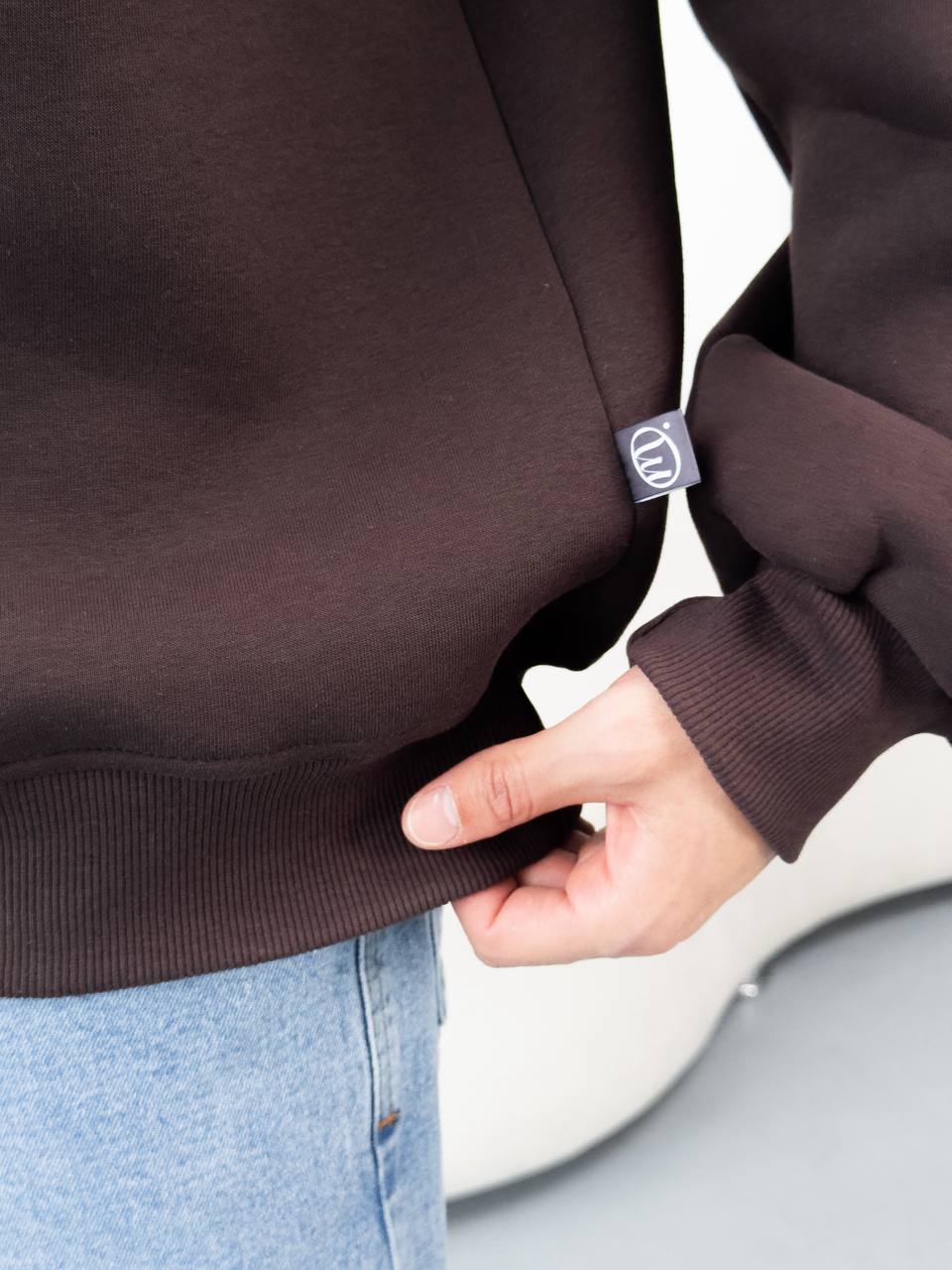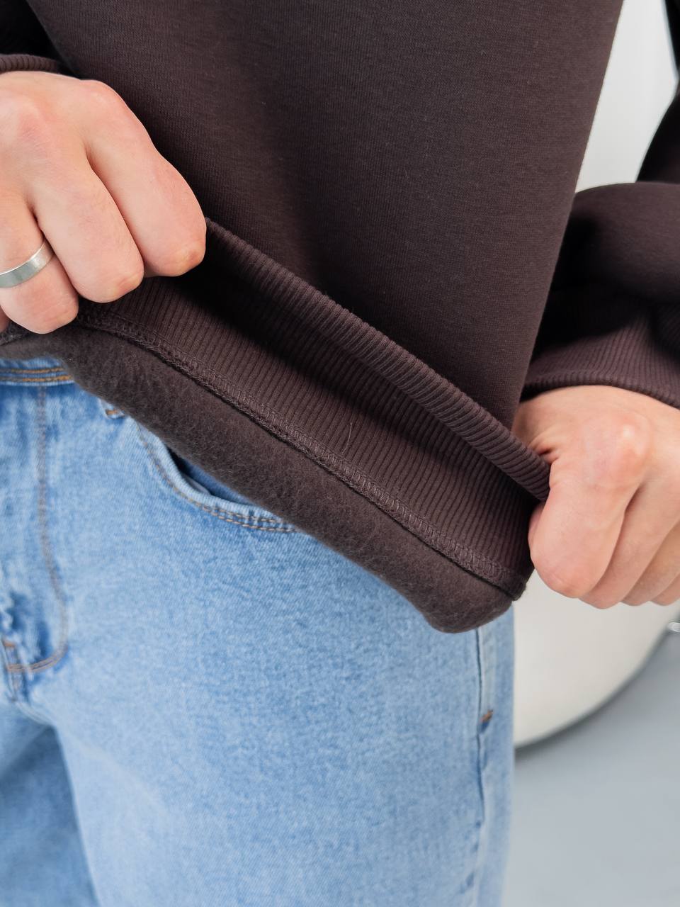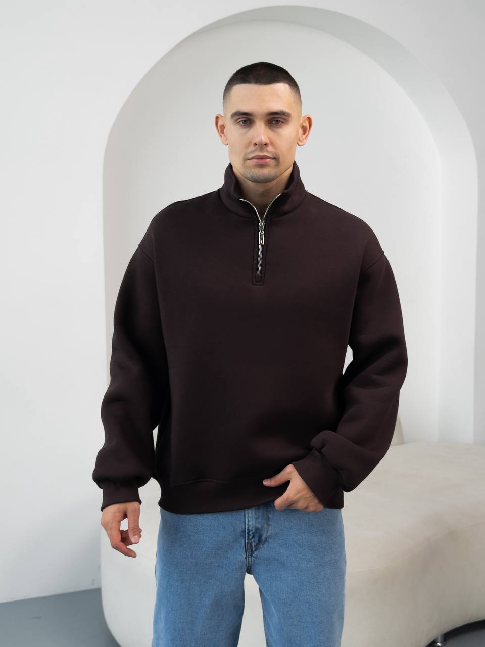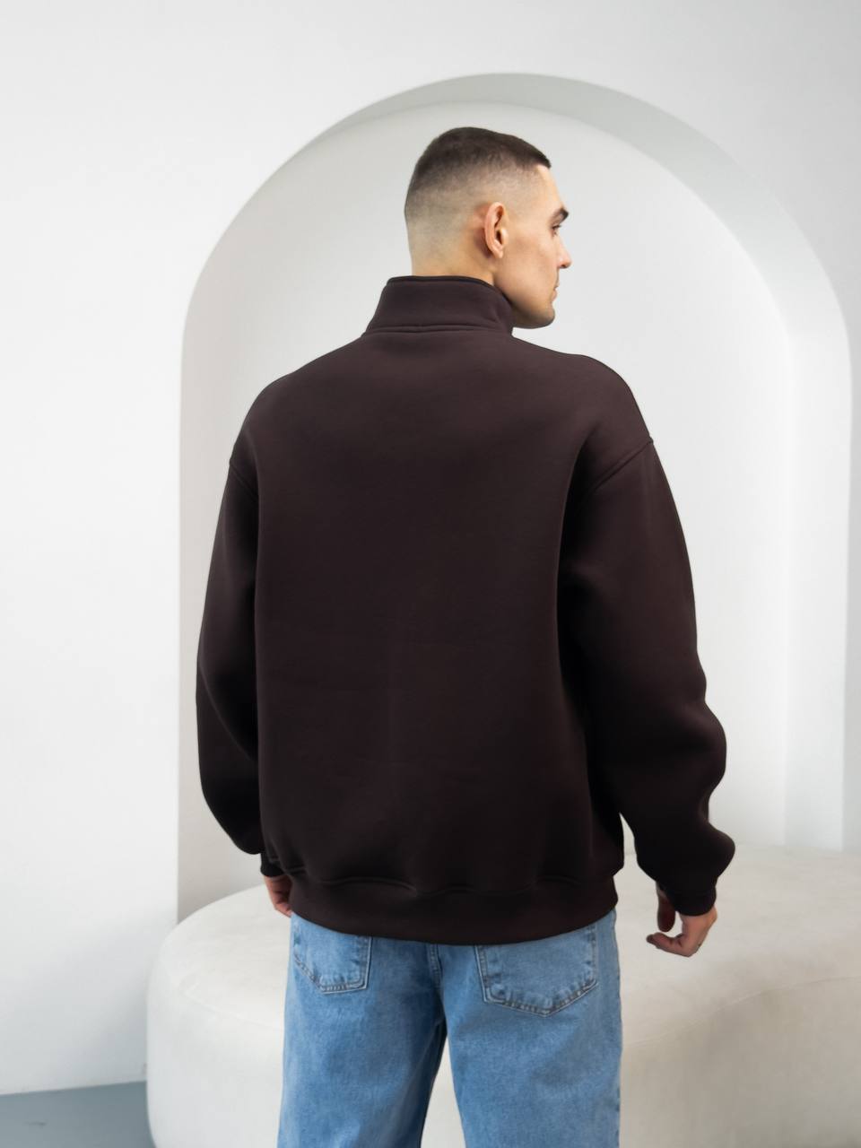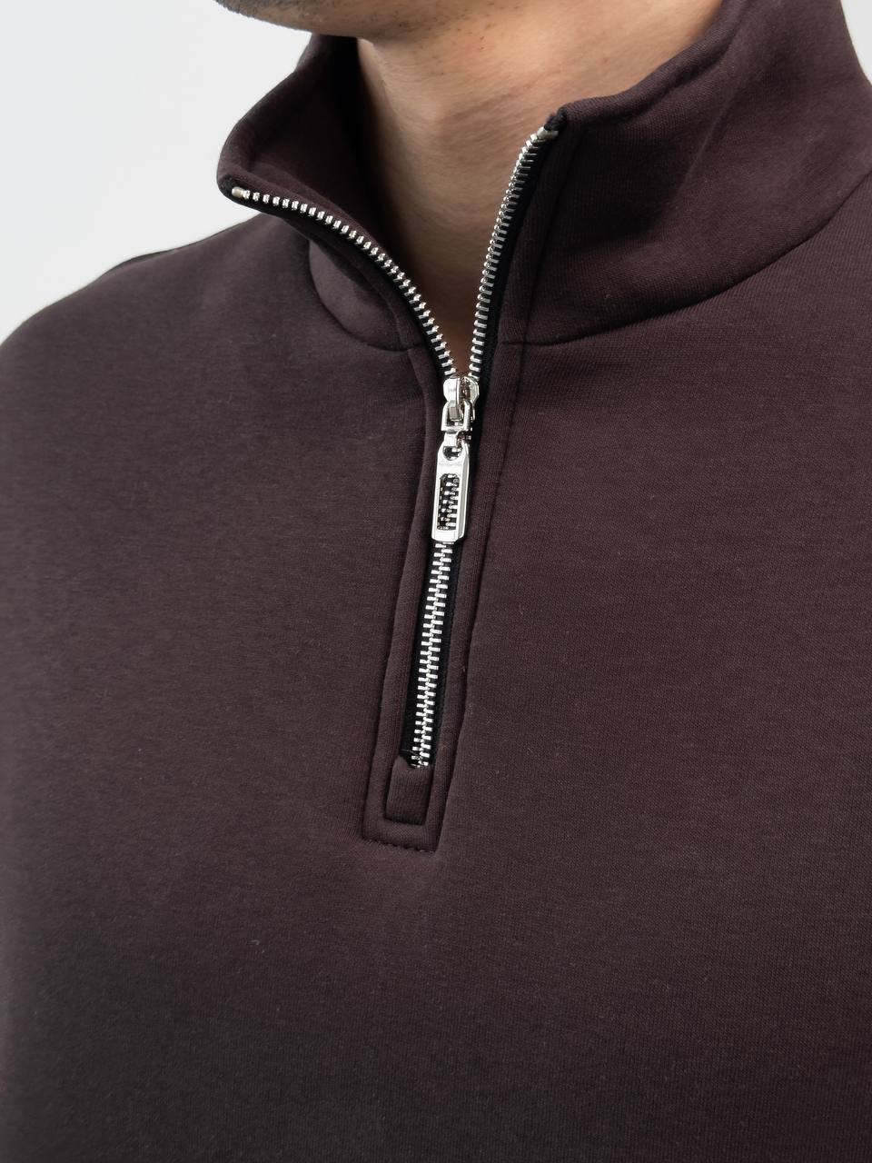 Чоловіча Бавовняна Коричнева Кофта під Горло на Флісі із Замком на Комірі