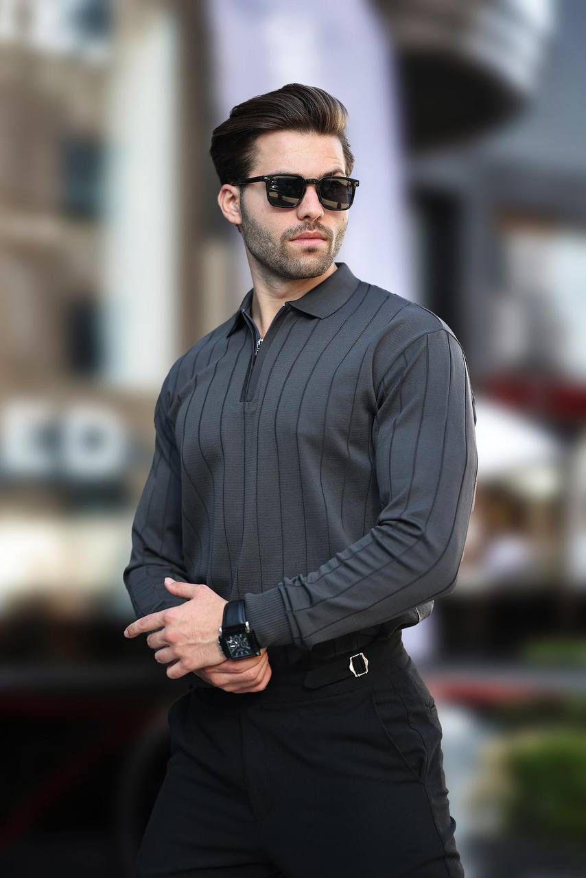 Чоловіча Базова Графітова Кофта з Коміром Поло – Класична у Cтилі Old Money