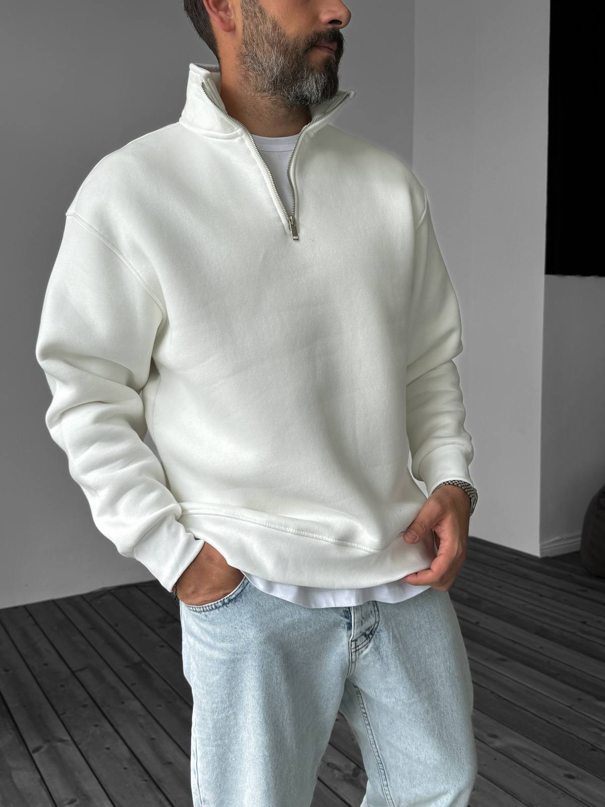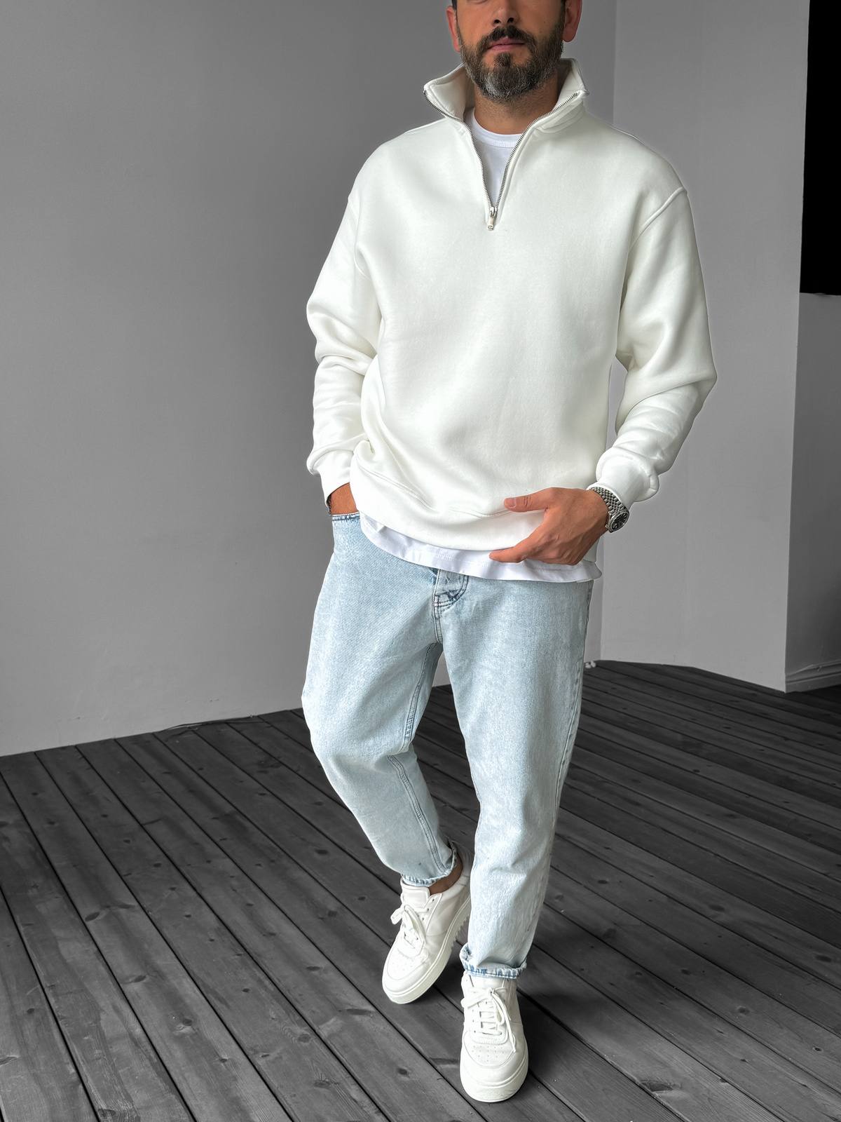 Чоловіча Біла Кофта Оверсайз під Горло – Утеплена з Начосом