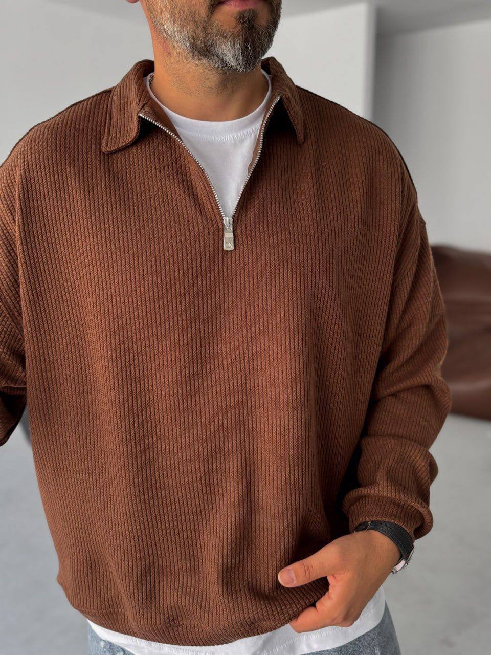 Чоловіча Коричнева Кофта Оверсайз Рубчик з Коміром на Замку
