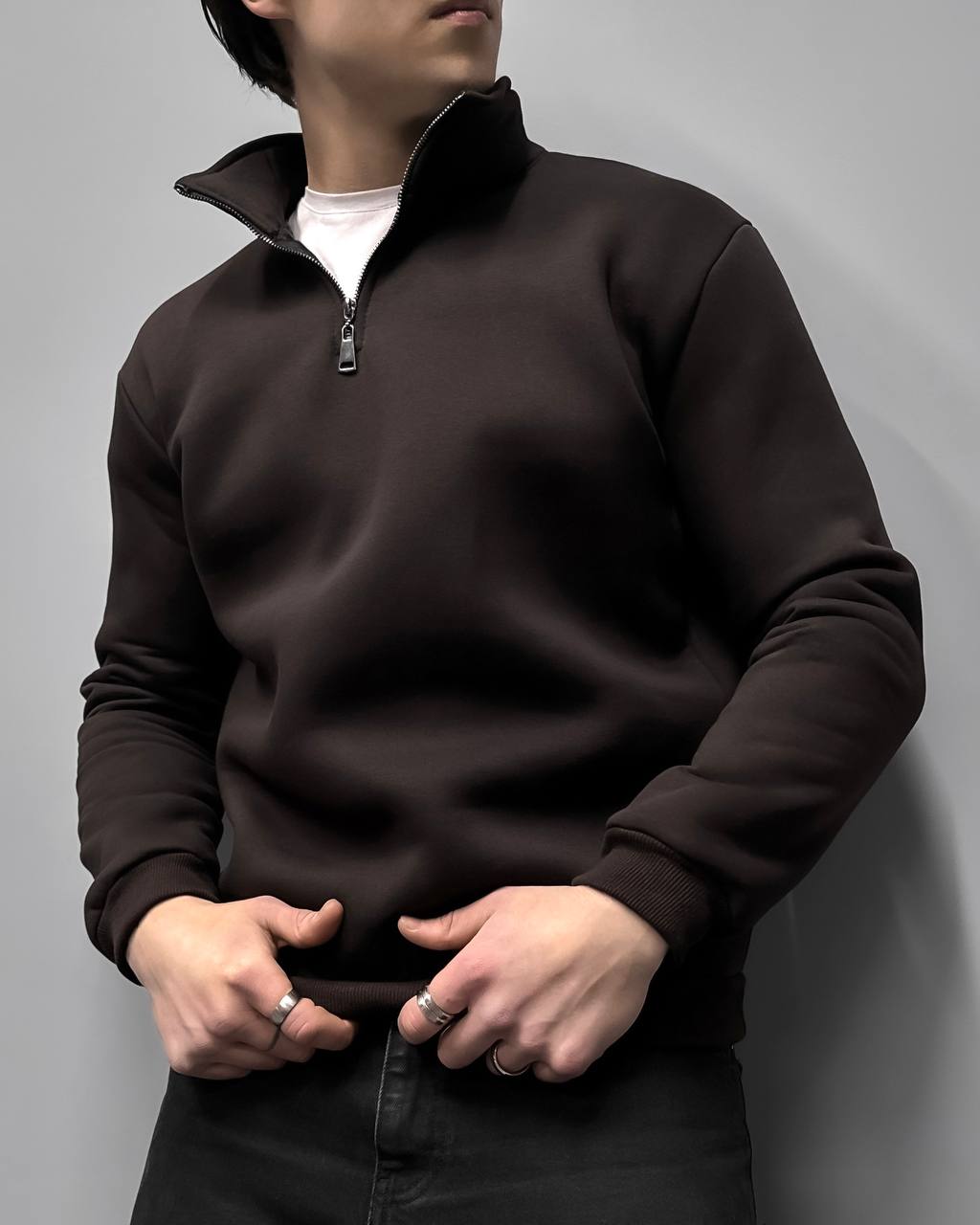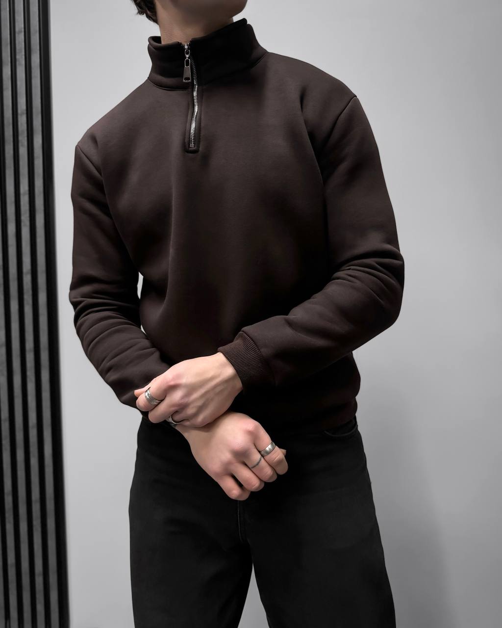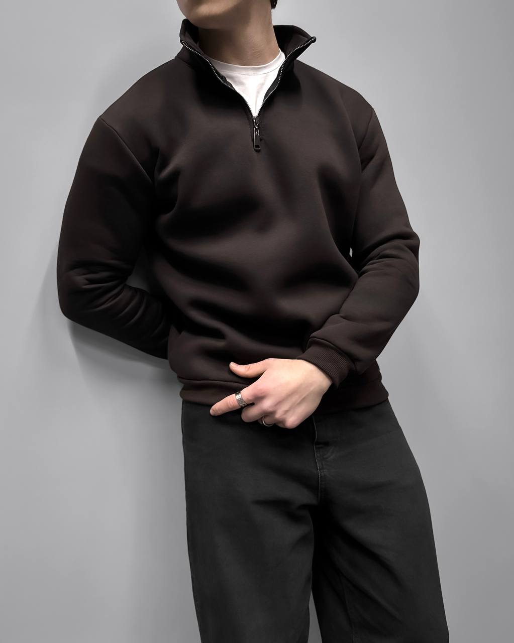 Чоловіча Коричнева Оверсайз Кофта під Горло – Вільного Крою Тепла з Начосом