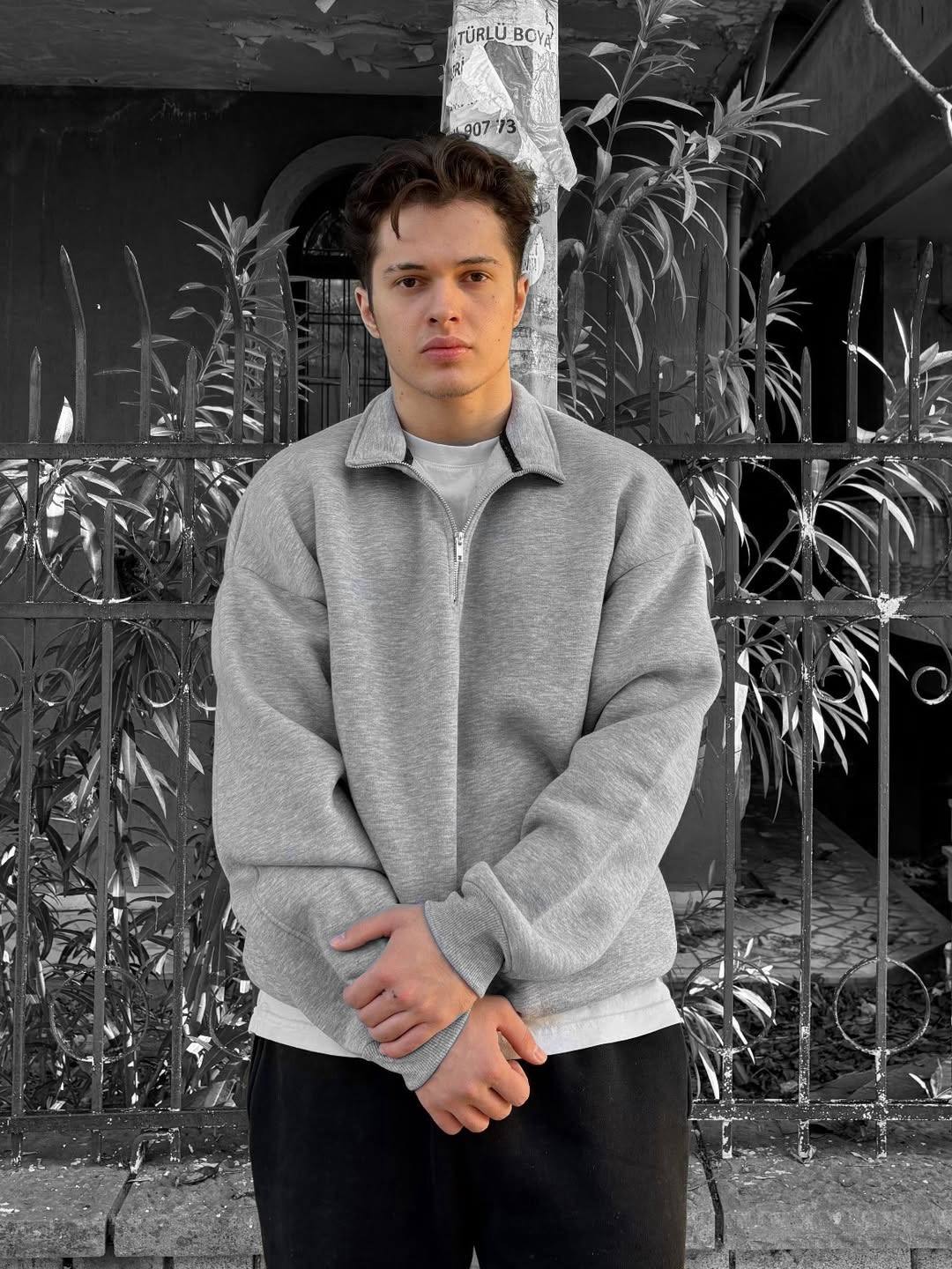 Чоловіча Сіра Кофта Оверсайз з Високою Горловиною на Змійці – Тепла на Флісі