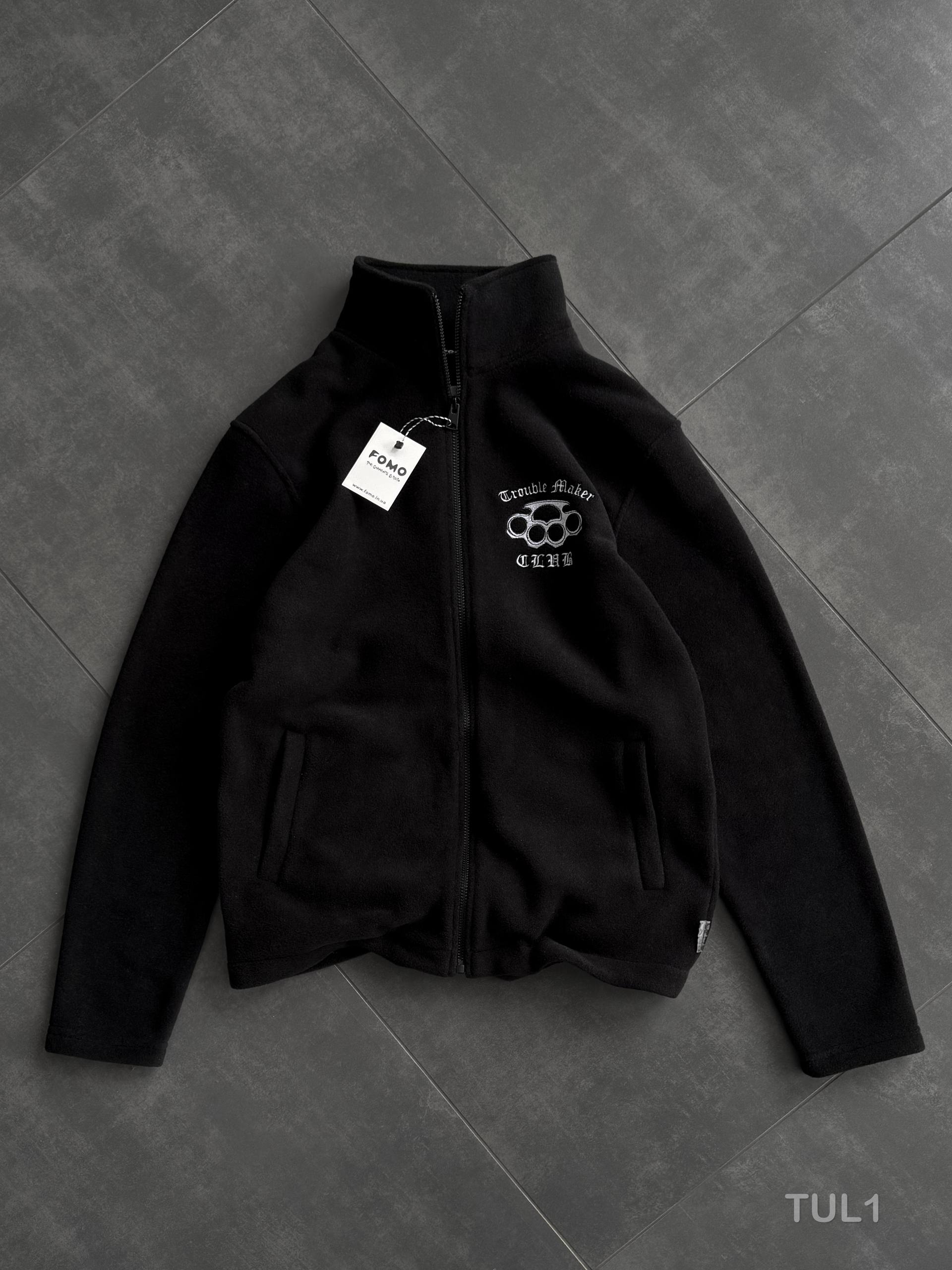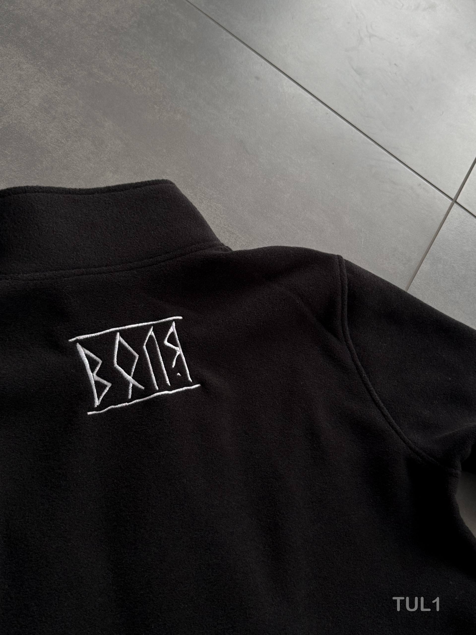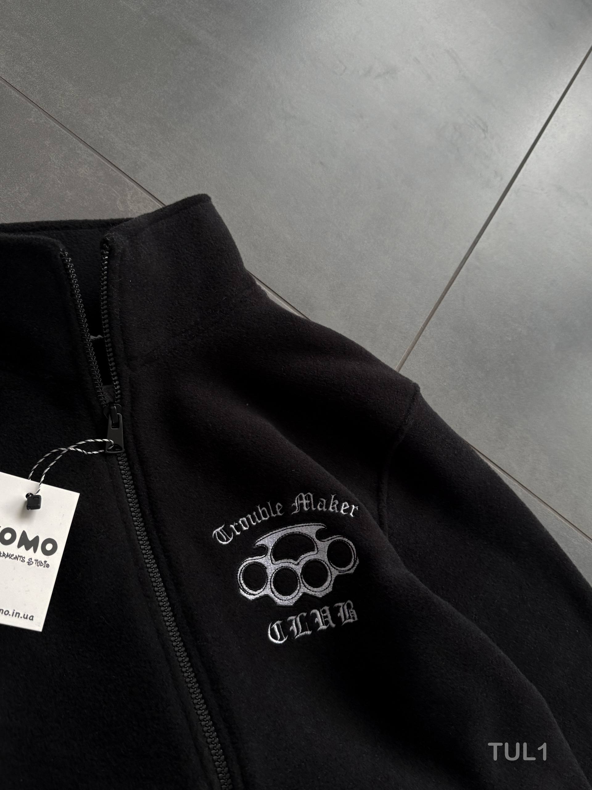 Чоловіча Тепла Флісова Чорна Кофта з Вишивкою – Фліска на Блискавці з Високою Горловиною