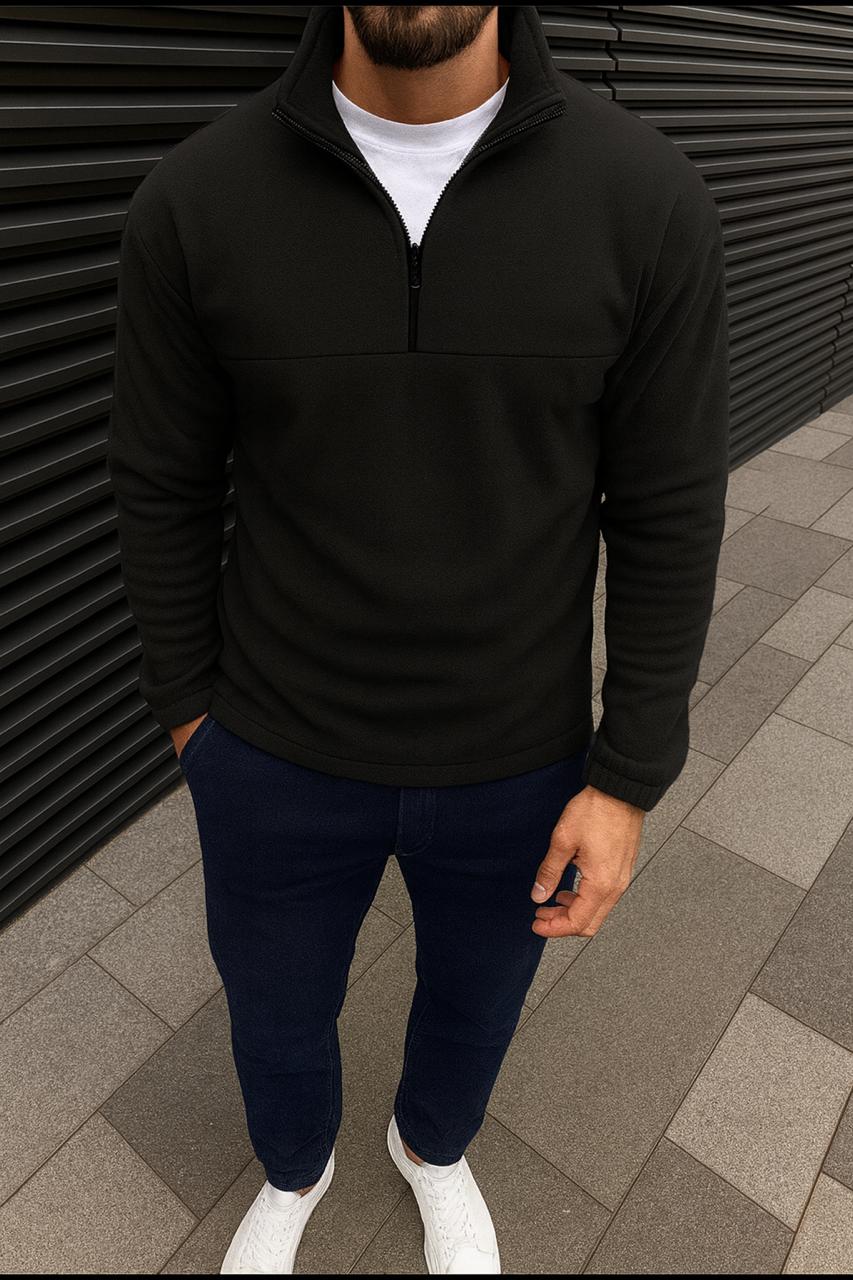 Чоловіча Тепла Флісова Чорна Кофта з Високим Горлом на Замку