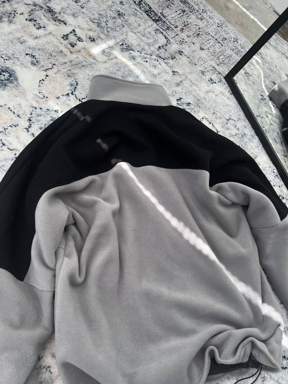 Чоловіча Тепла Флісова Графітова Кофта з Чорними Вставками – Вільного Крою під Горло на Блискавці