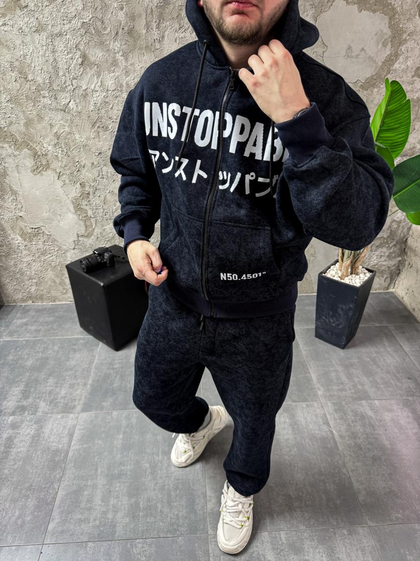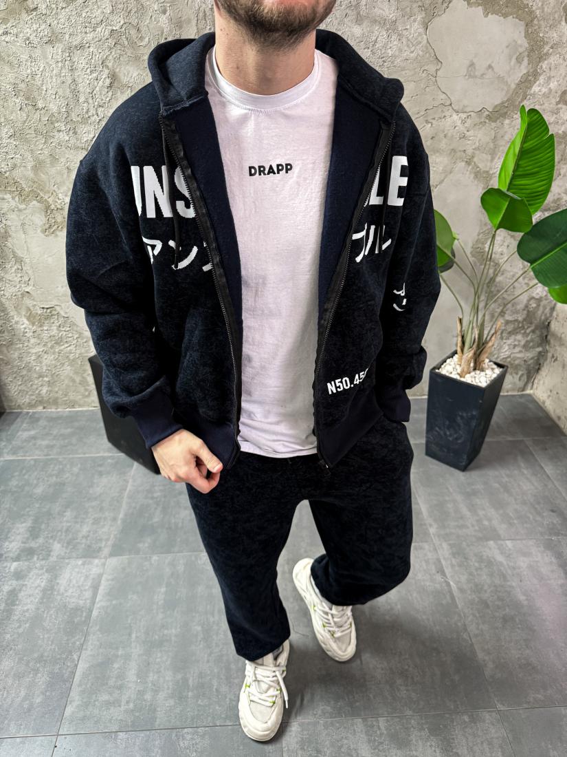 Чоловічий Чорний Спортивний Костюм Худі Джогери з Принтами – Утеплений на Флісі (Копировать) (Копировать)