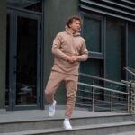 Чоловічий Базовий Костюм Бежевий Теплий на Флісі – Худі Подовжене Ззаду + Штани Джоггери