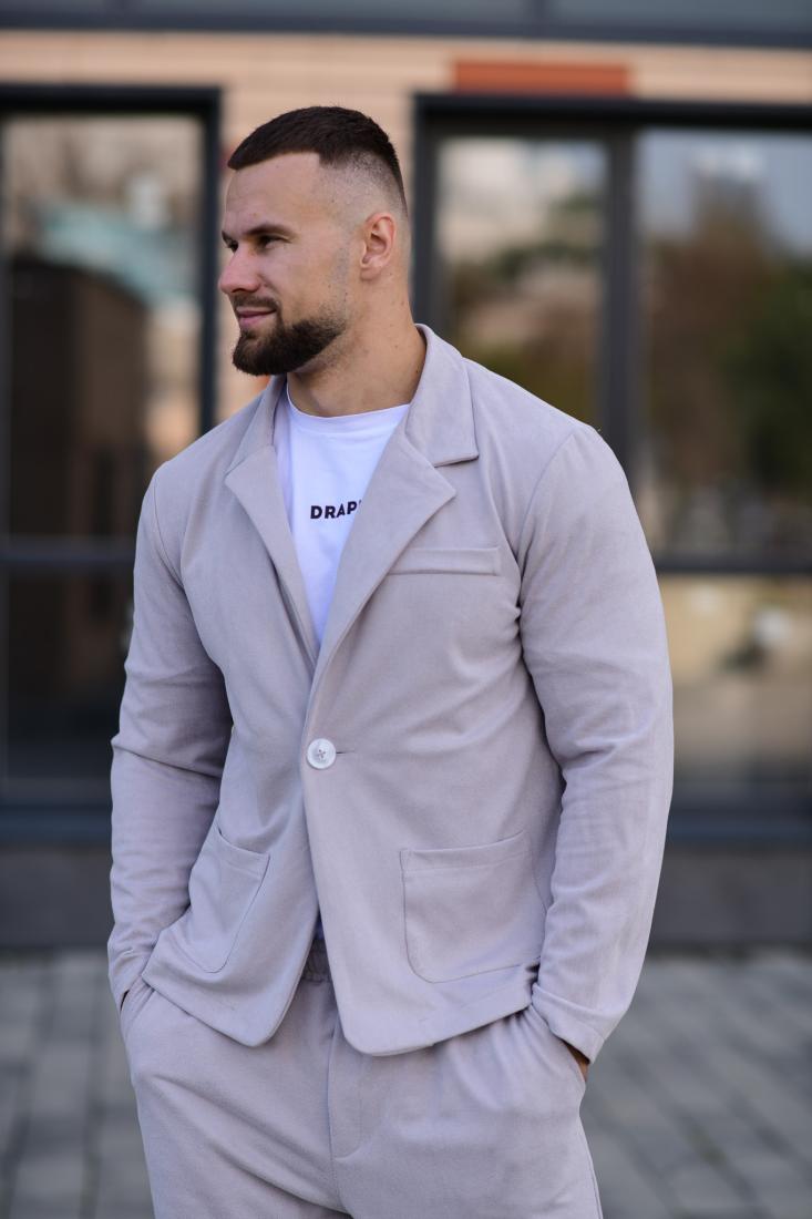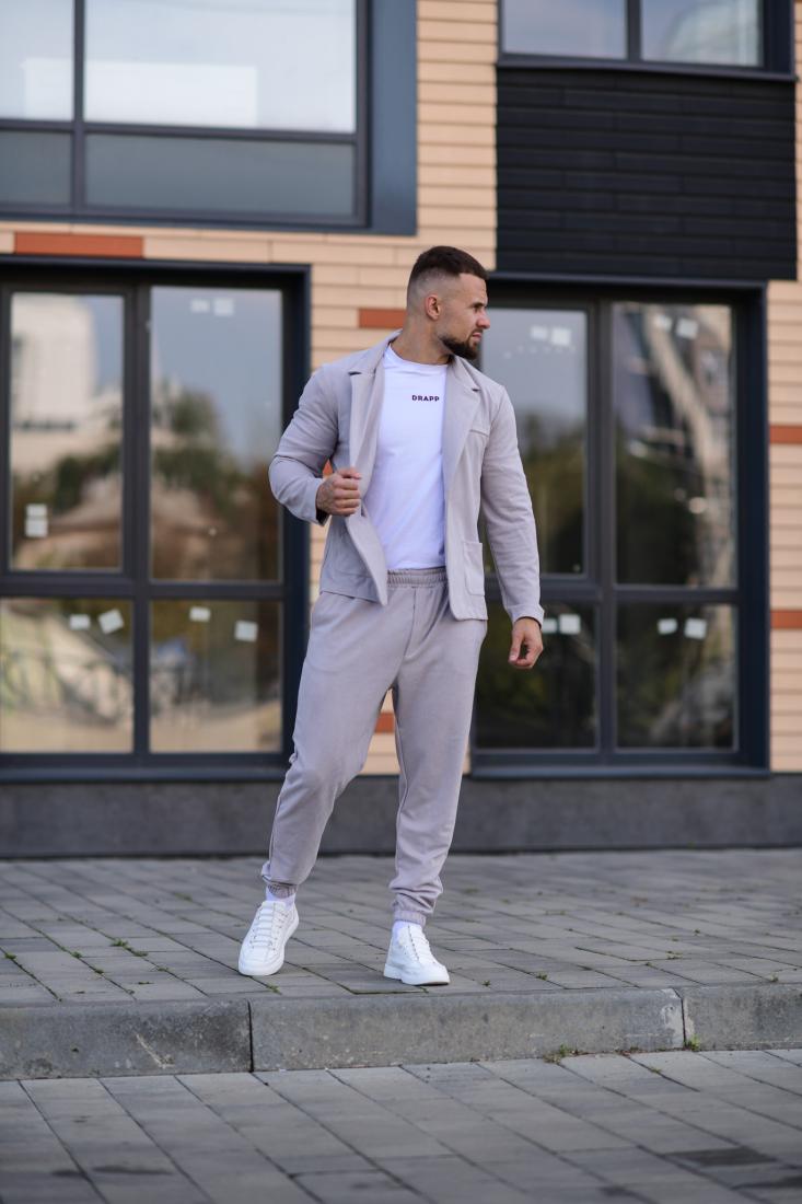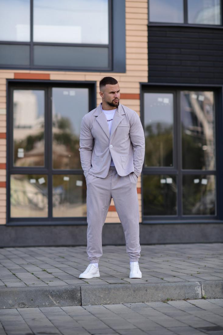 Чоловічий Базовий Сірий Костюм – Жакет з Кишенями + Штани з Манжетами