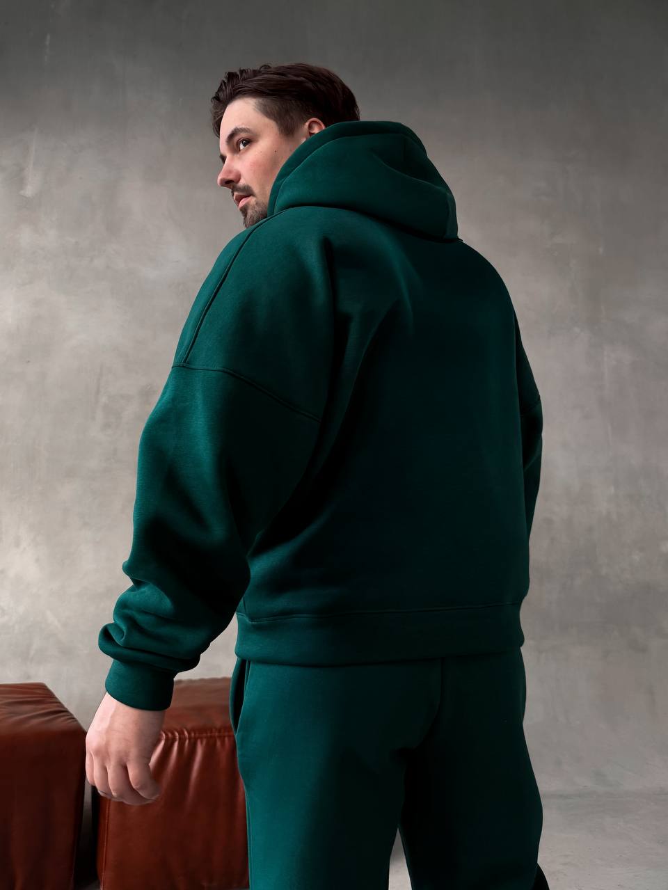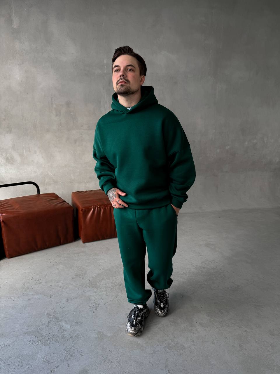 Чоловічий Базовий Теплий Зелений Спортивний Костюм з Начосом (Толстовка + Штани)