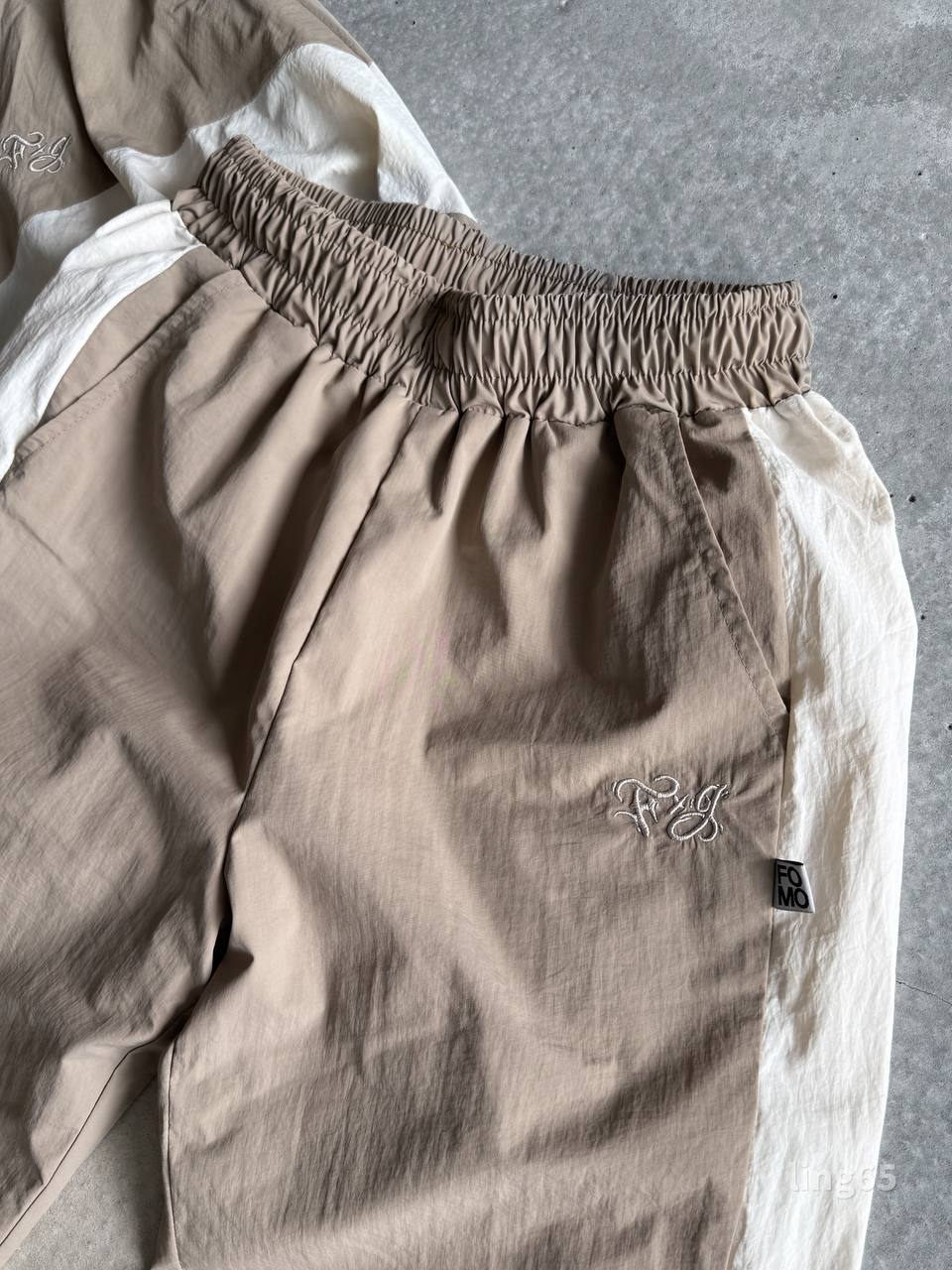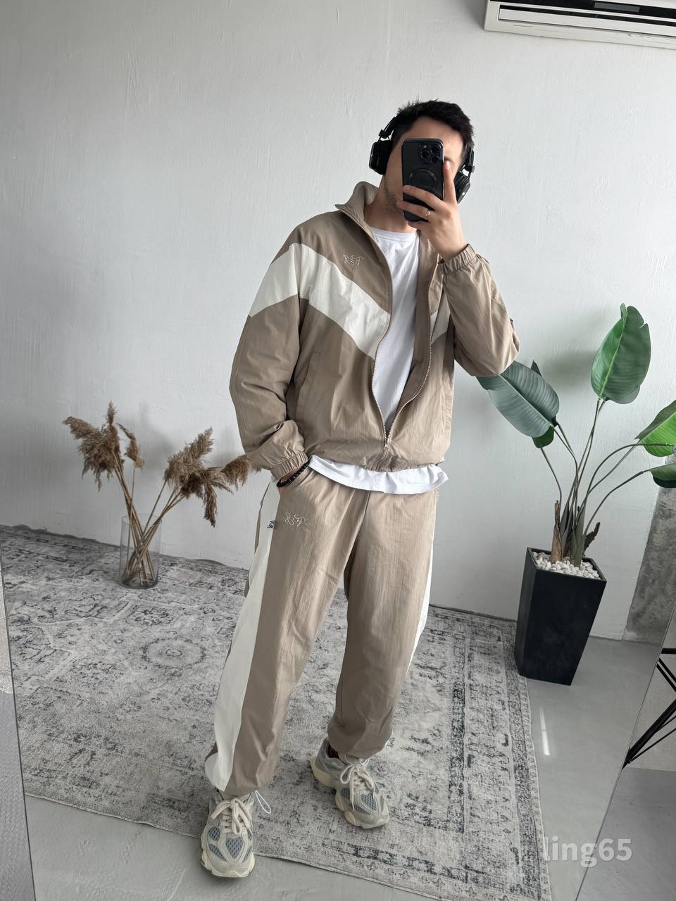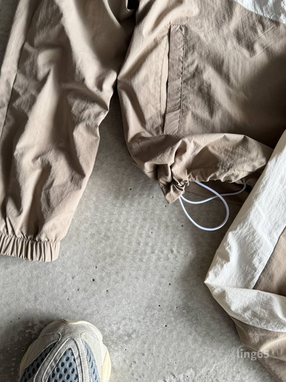 Чоловічий Бежевий Спортивний Костюм Плащівка на Блискавці та Затяжках – Вільного Крою з Білими Лампасами