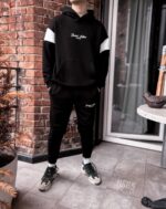 Чоловічий Чорний Костюм з Білими Вставками – Худі Оверсайз Штани Джоггери
