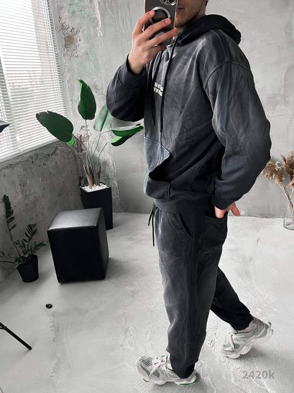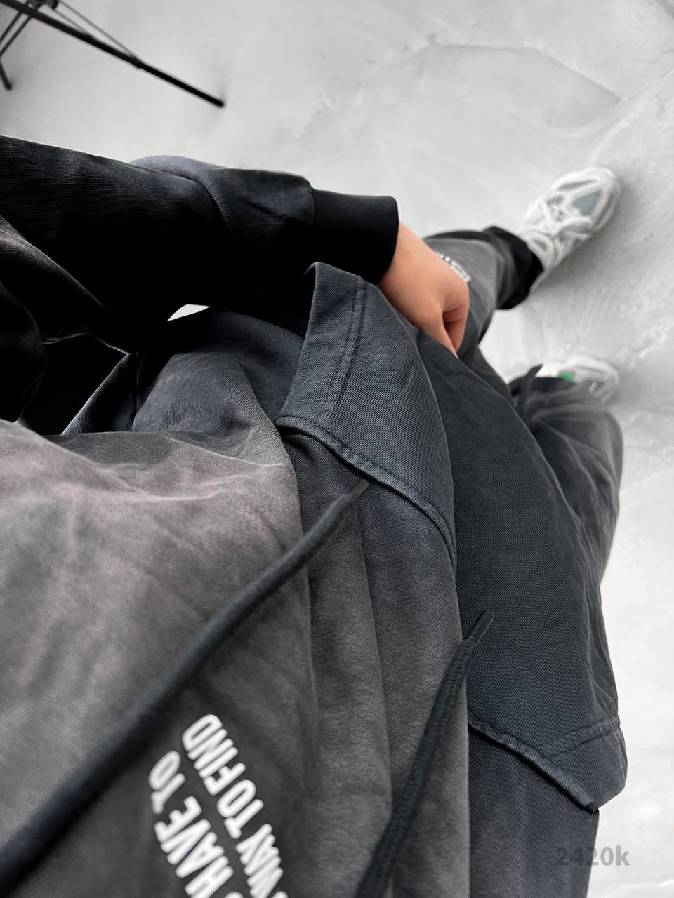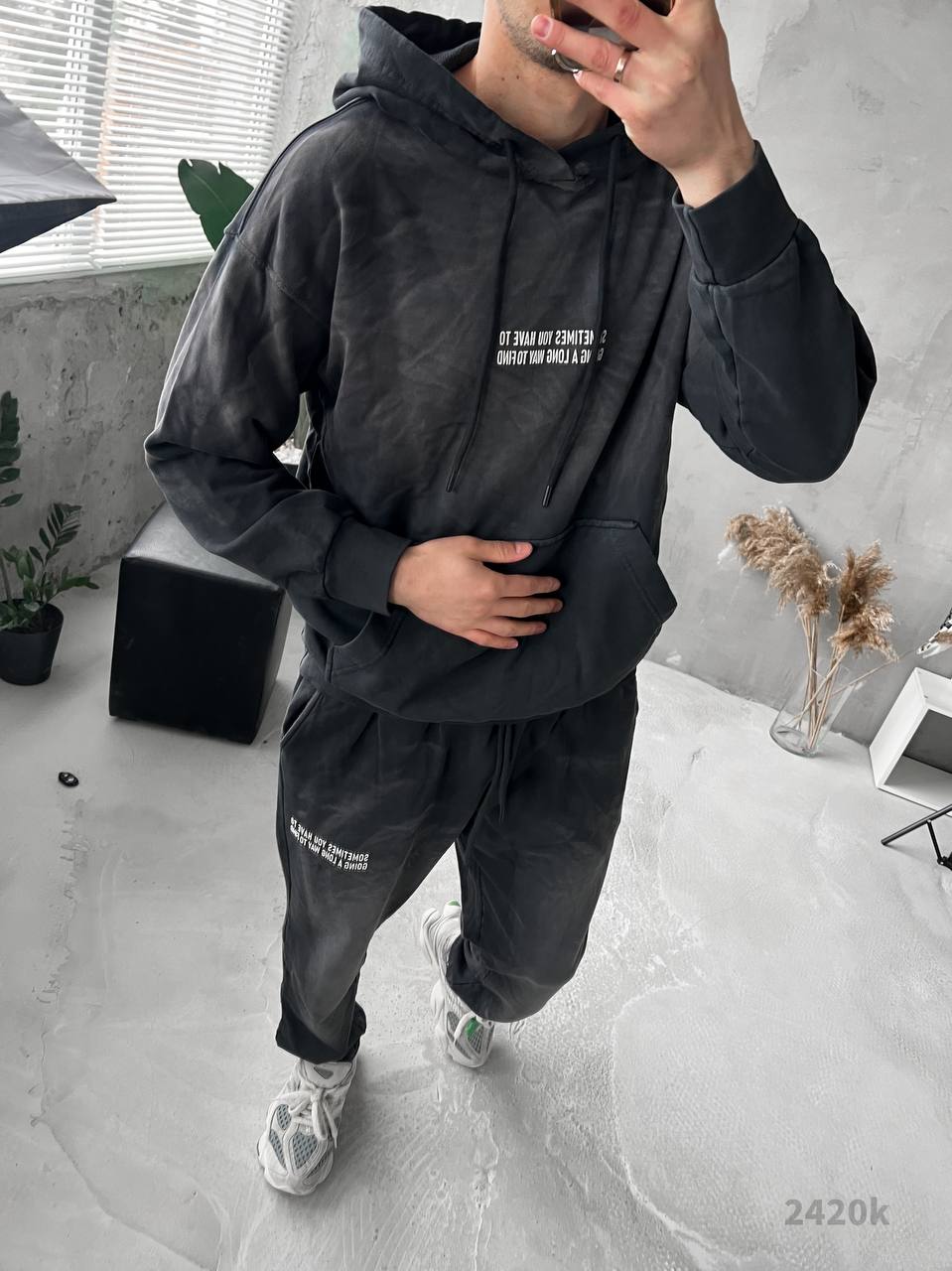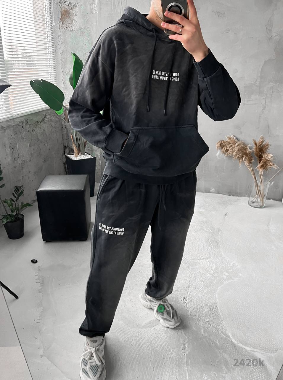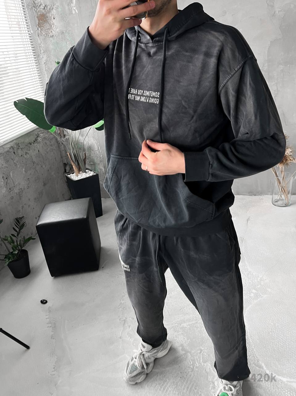 Чоловічий Чорний Спортивний Костюм Варьонка під Вінтаж з Написом (Худі + Штани)