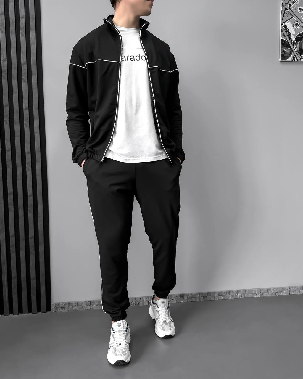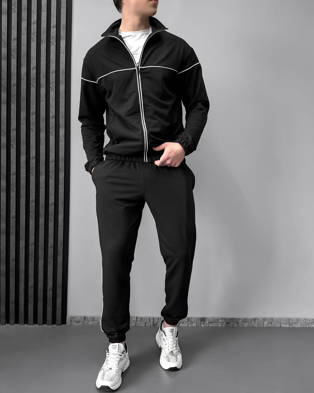 Чоловічий Чорний Спортивний Костюм з Кантом – Кофта на Блискавці + Штани Джогери