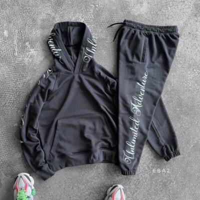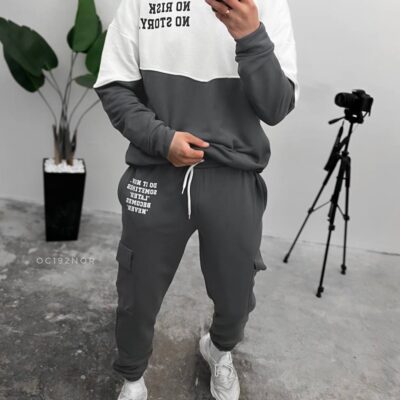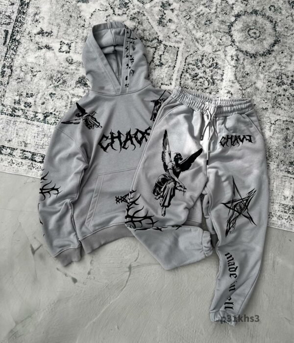 Чоловічий Демісезонний Сірий Спортивний Костюм Худі Джогери в Принтах