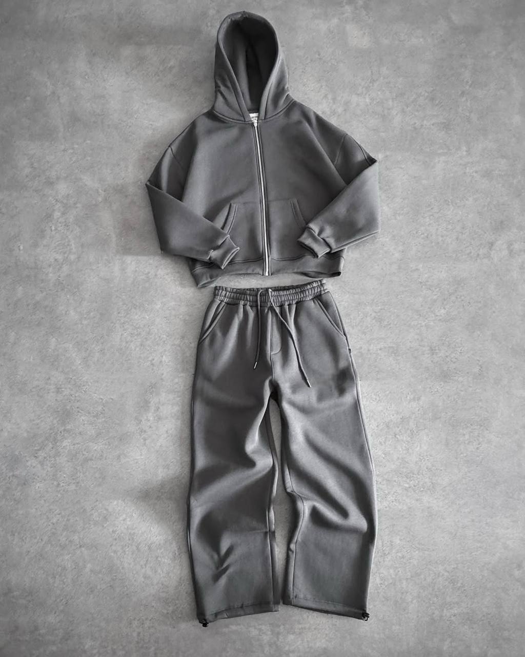Чоловічий Графітовий Спортивний Костюм Об’ємний Оверсайз – Зіп Худі + Широкі Штани