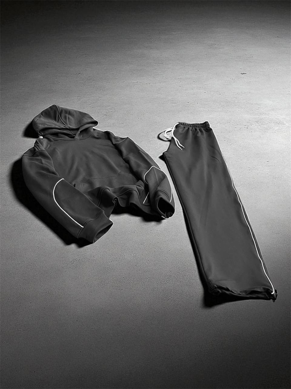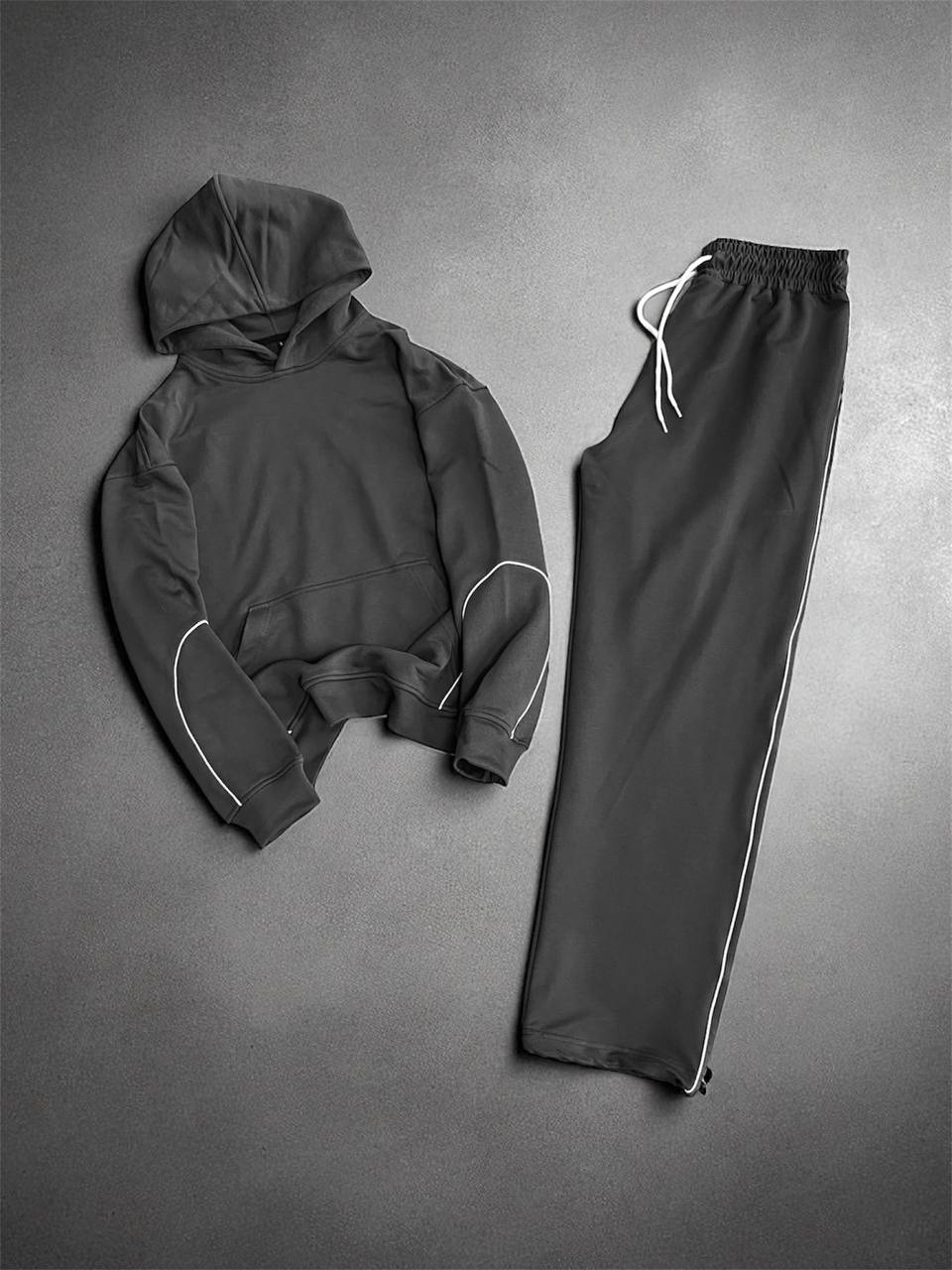 Чоловічий Графітовий Спортивний Костюм Оверсайз з Кантом – Худі + Широкі Штани