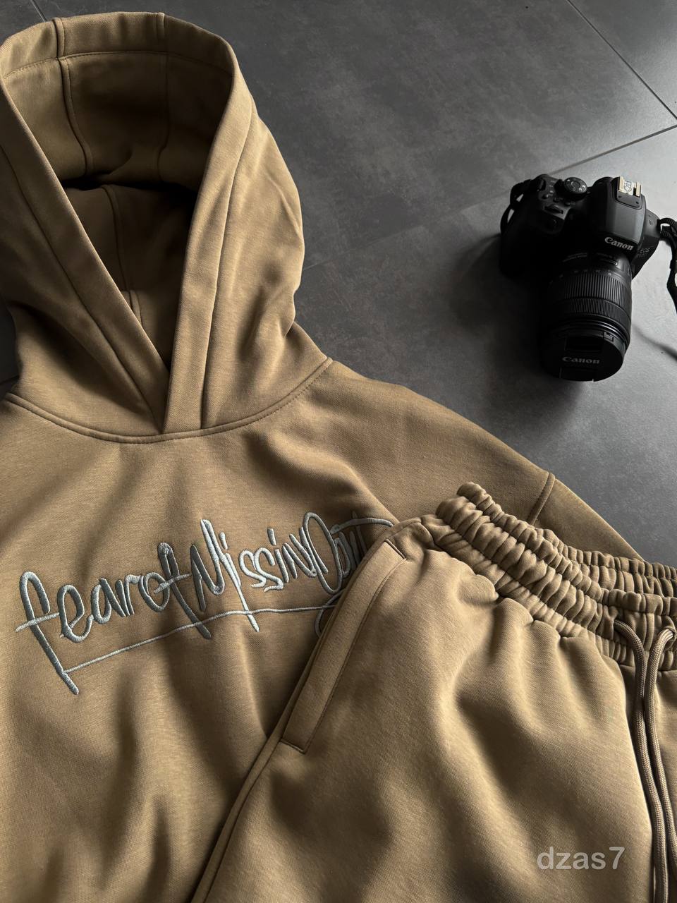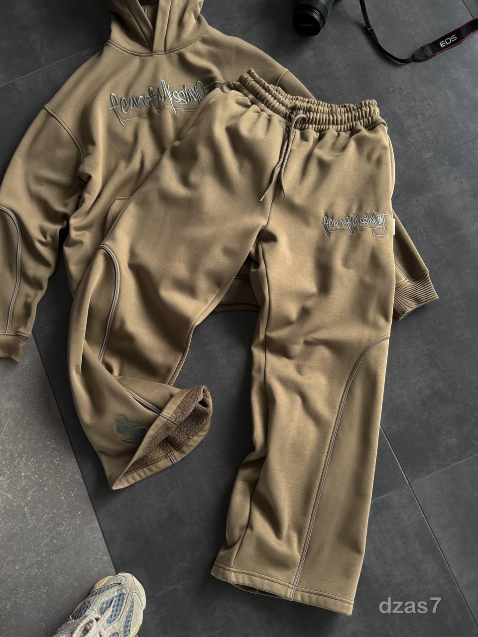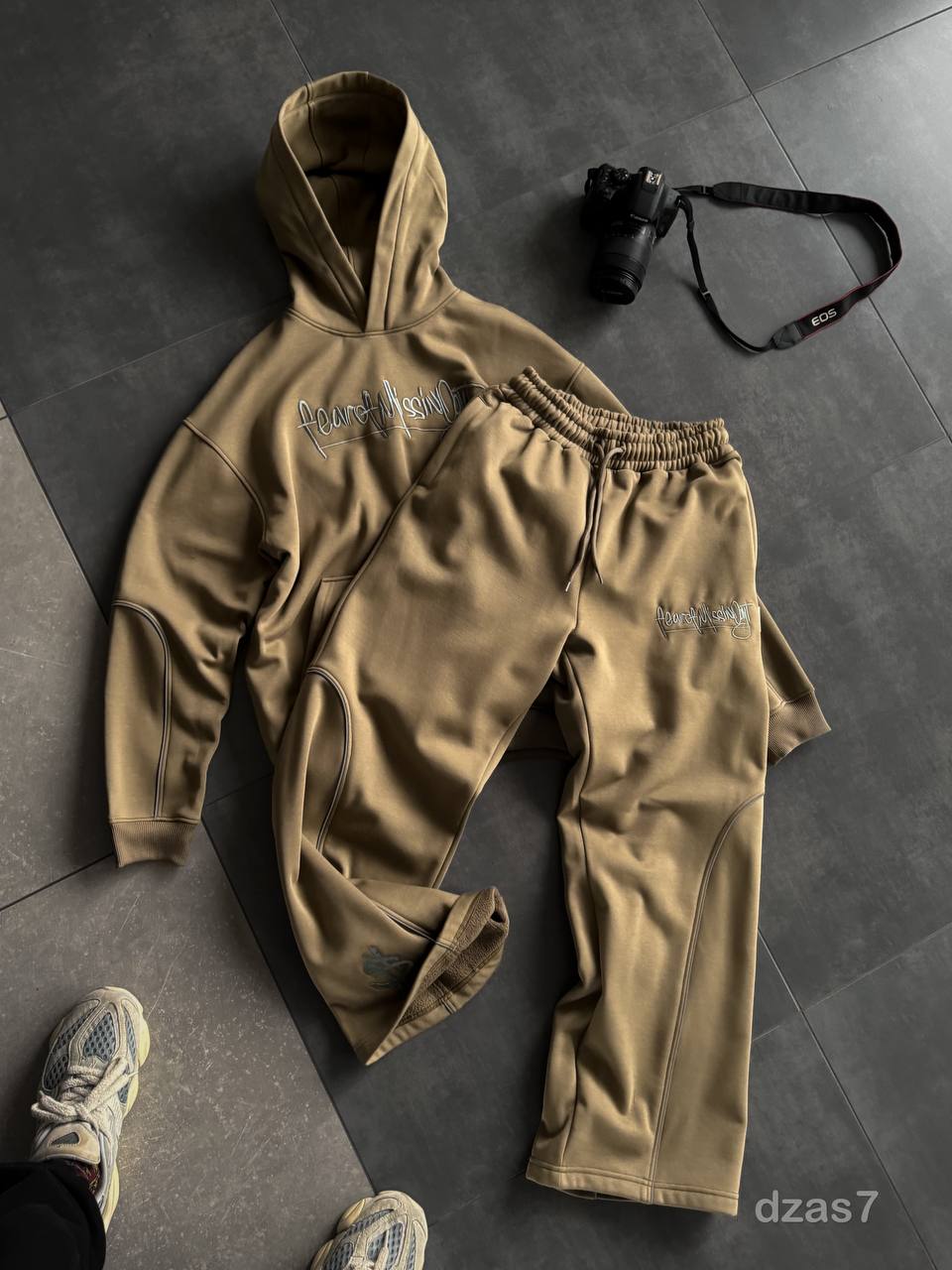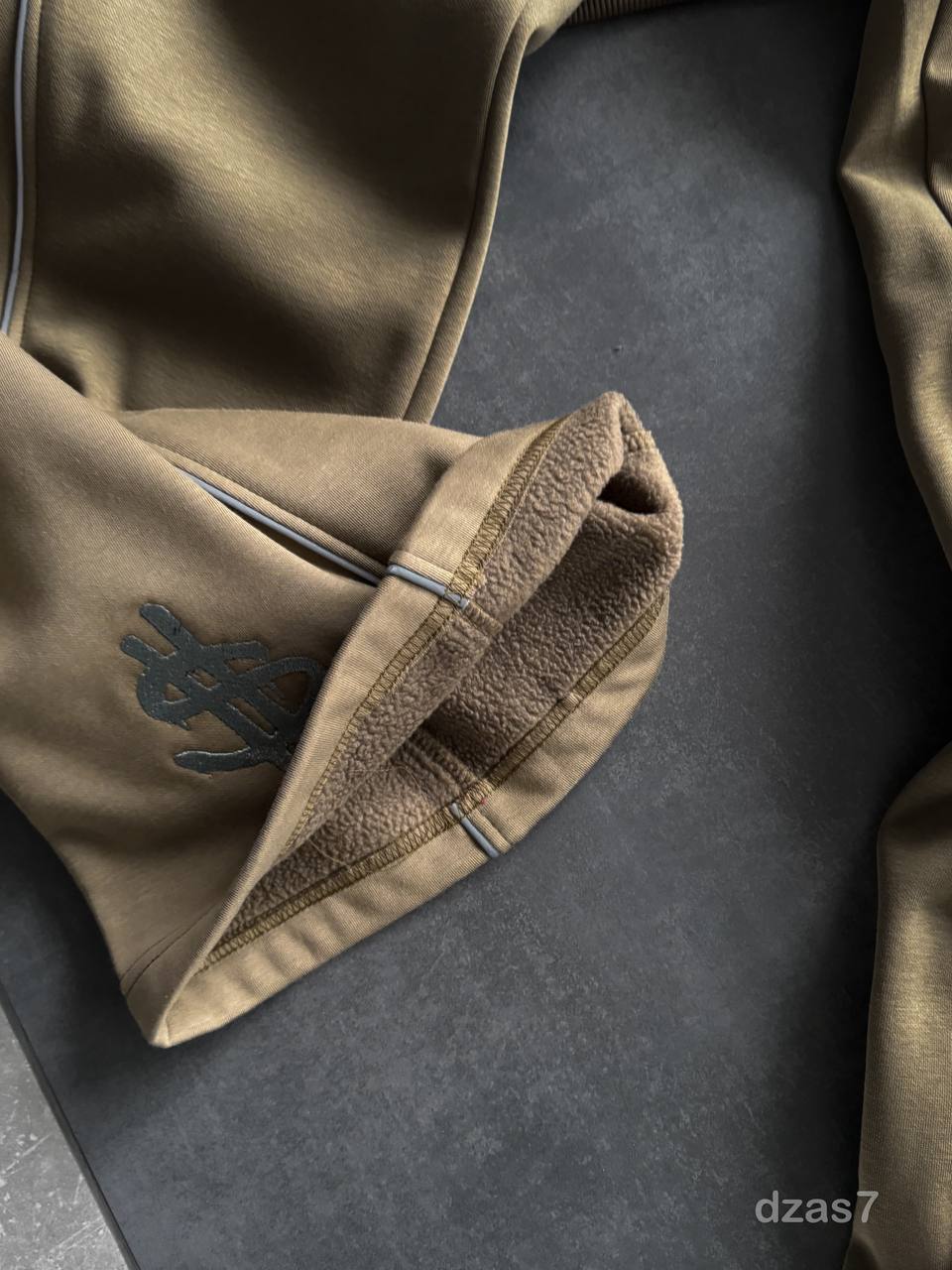 Чоловічий Хакі Костюм Худі Штани Оверсайз з Вишивкою та Кантом – Утеплений на Флісі