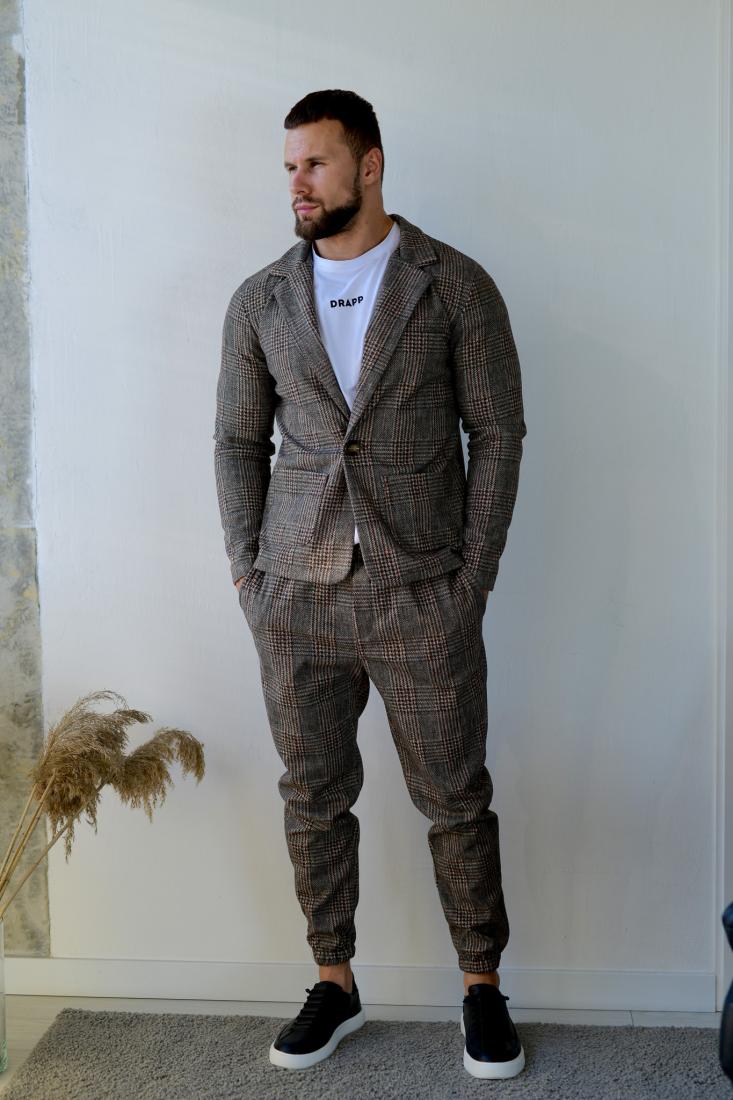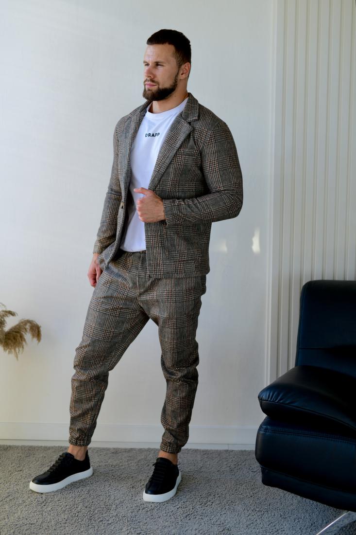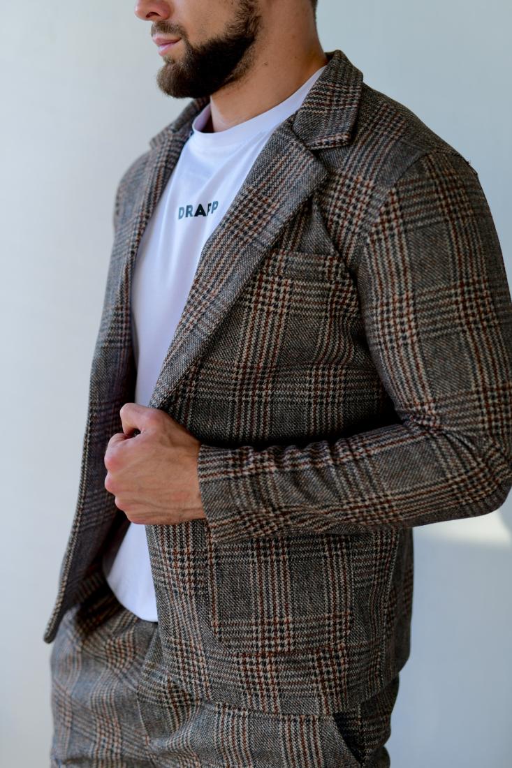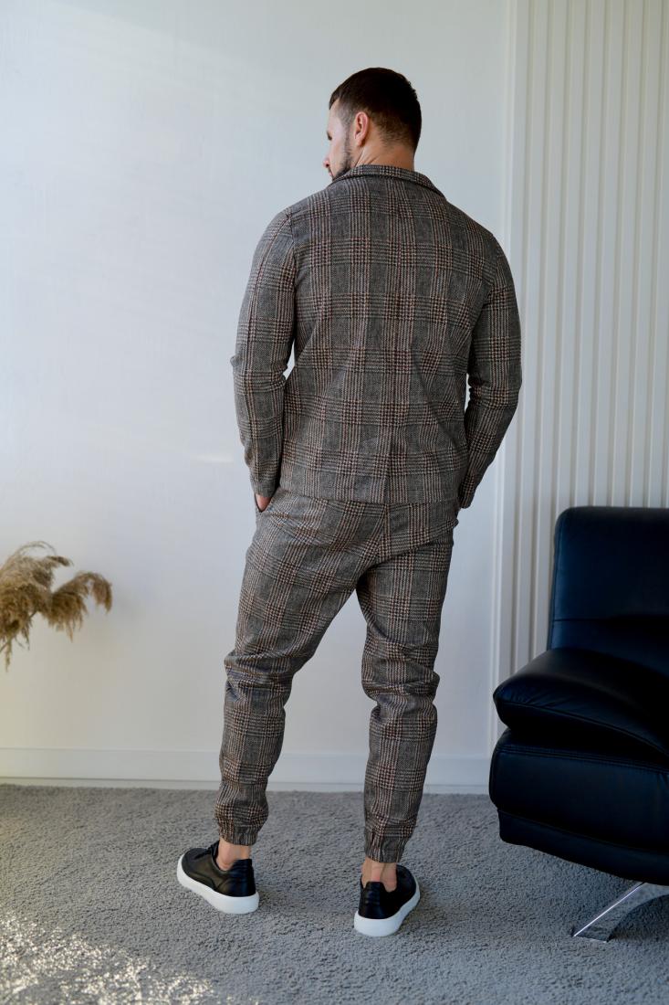 Чоловічий Класичний Темно-Сірий Костюм в Клітинку (Жакет + Штани)