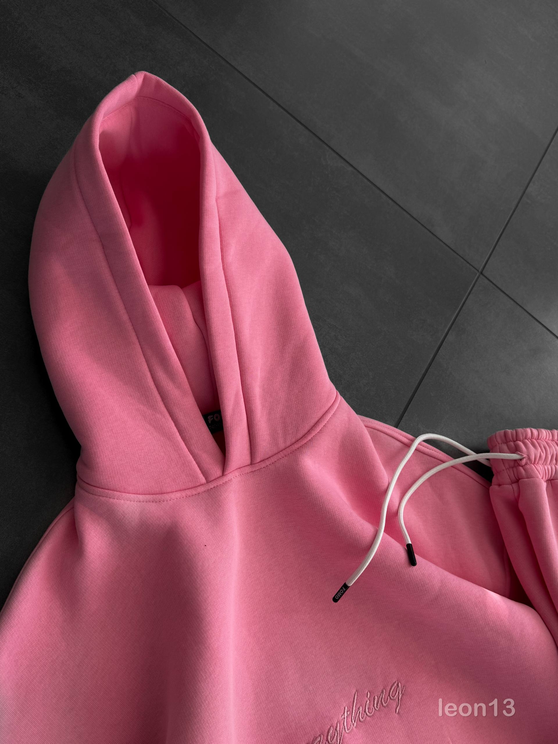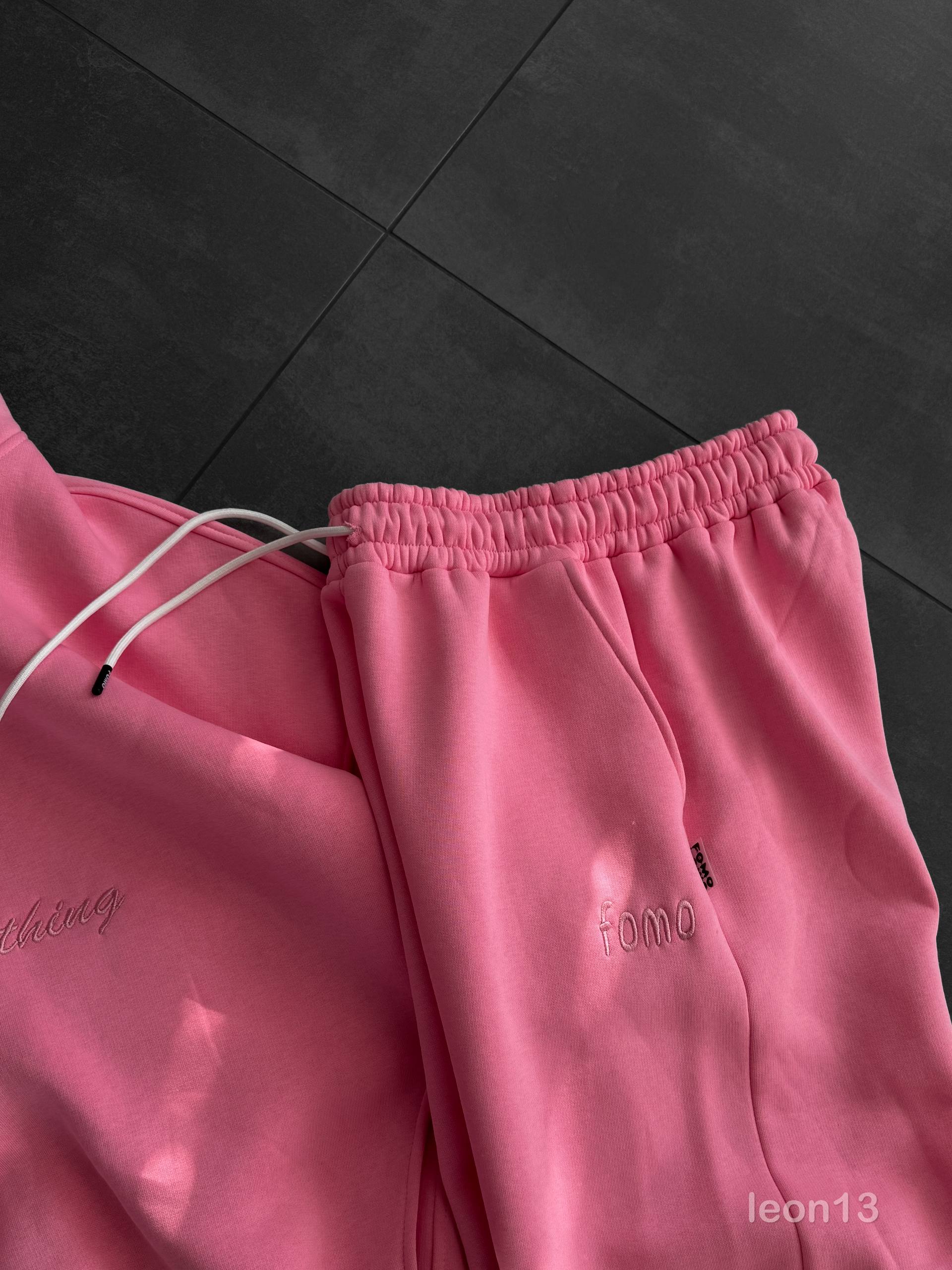 Чоловічий Рожевий Спортивний Костюм Худі Штани з Вишитим Написом – Утеплений на Флісі
