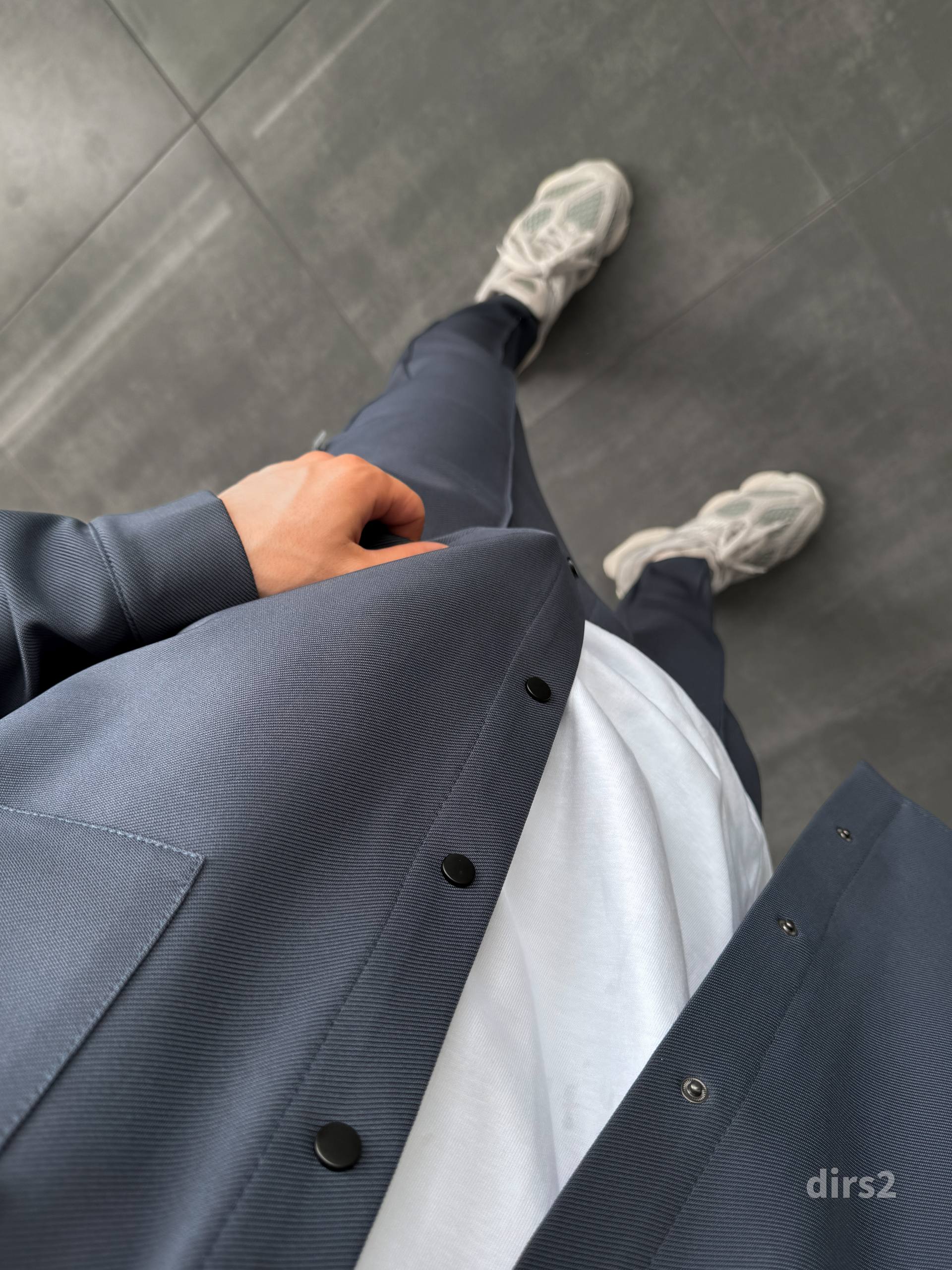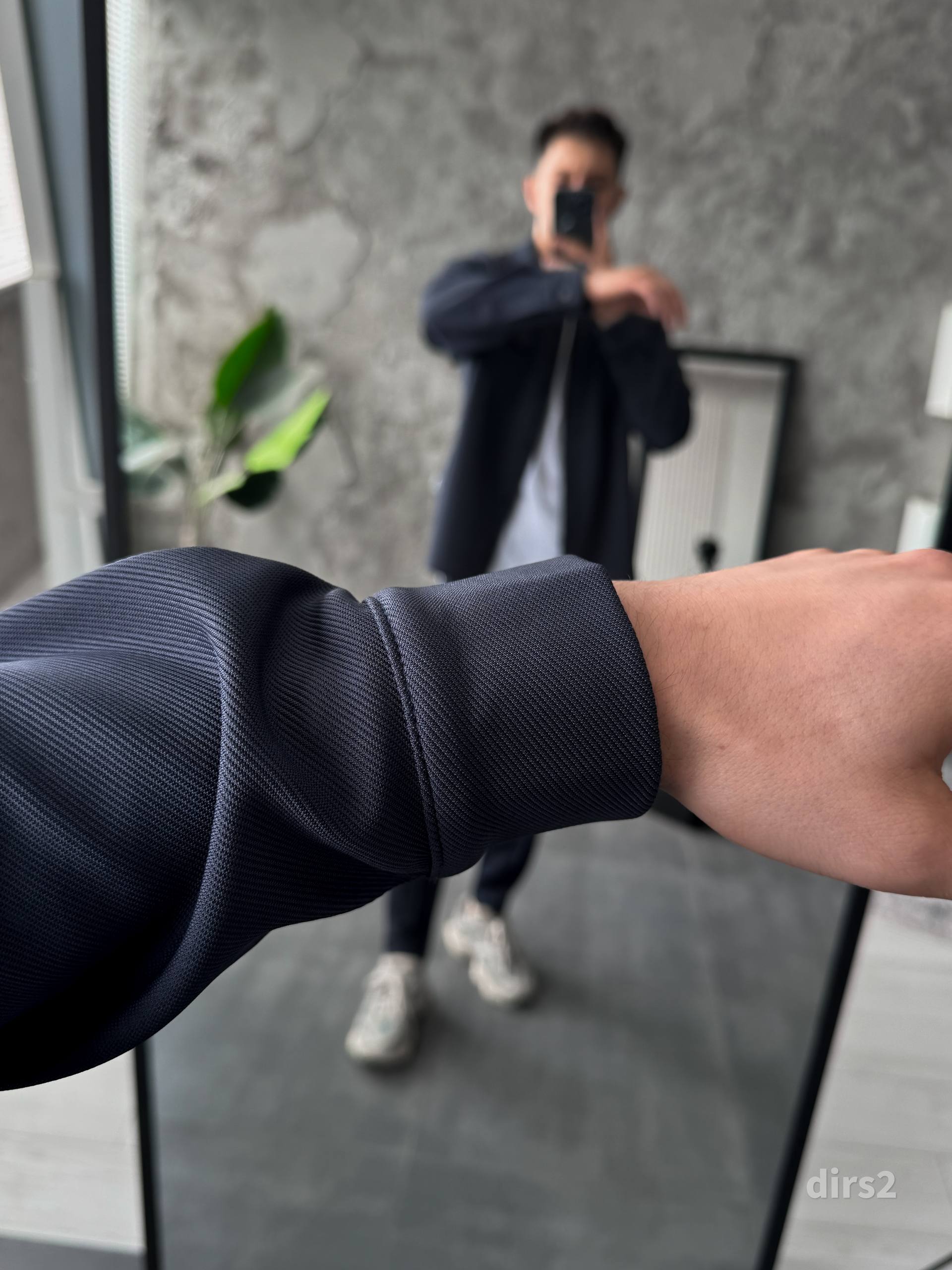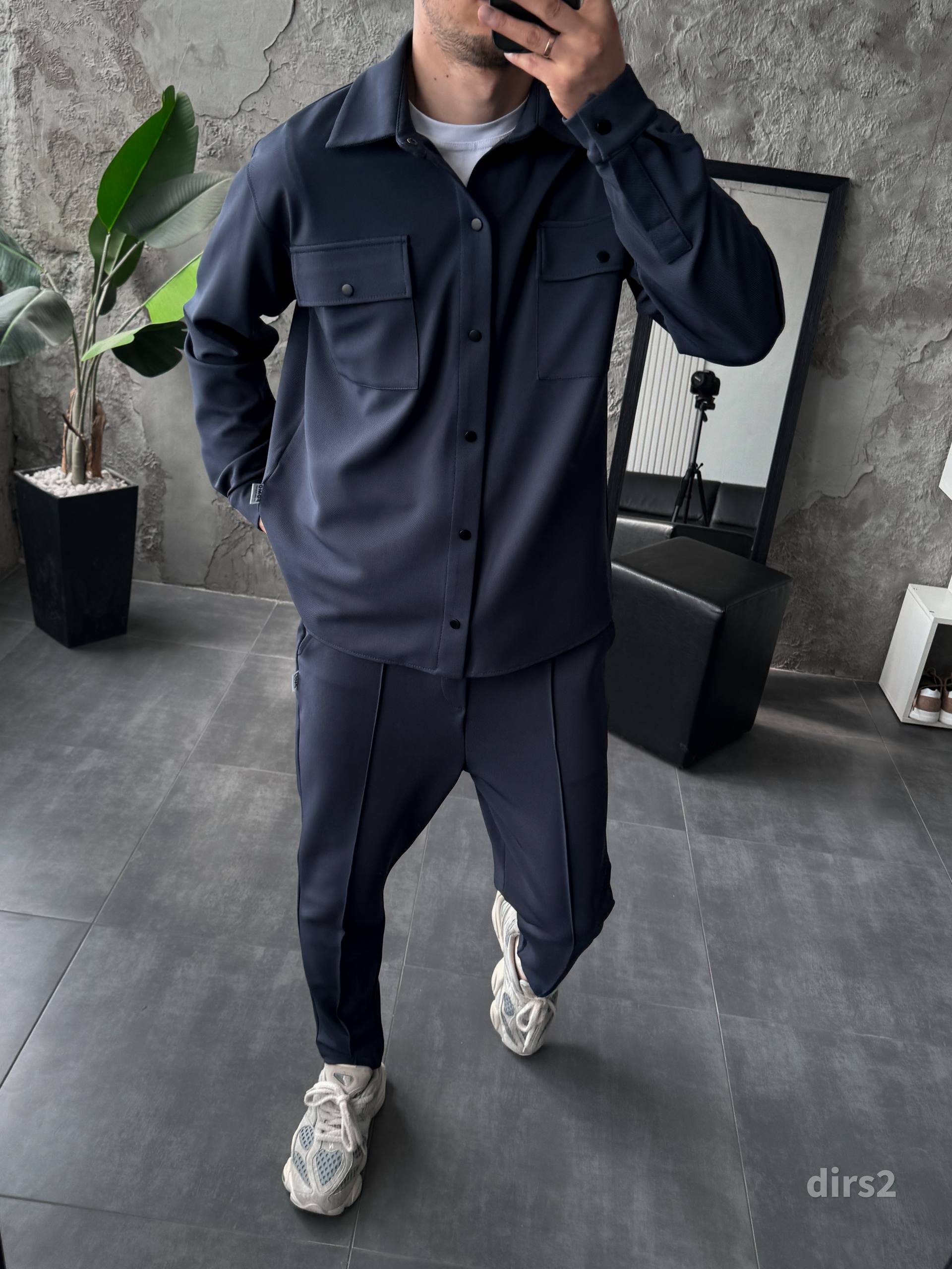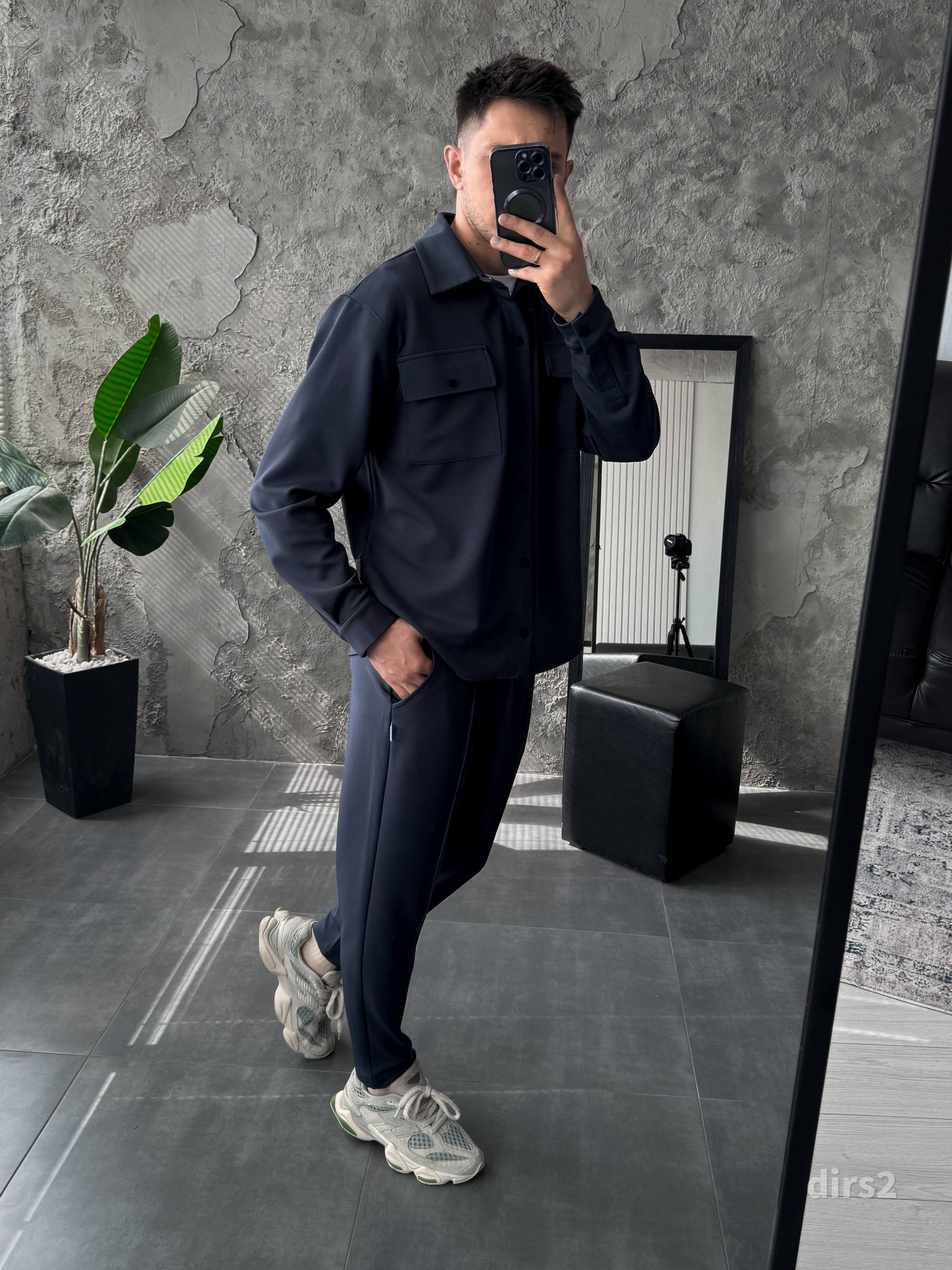 Чоловічий Щільний Вільний Графітовий Костюм з Накладними Кишенями – Сорочка на Кнопках + Штани зі Стрілками